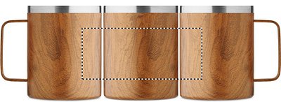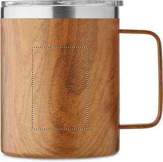 Doppelwandiger Becher aus recyceltem Edelstahl (90 % recycelter Edelstahl und 10 % Edelstahl) in Holzoptik und Schiebedeckel mit Trinköffnung. Füllmenge: 300 ml.
