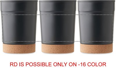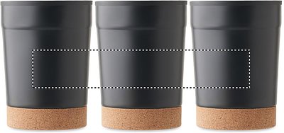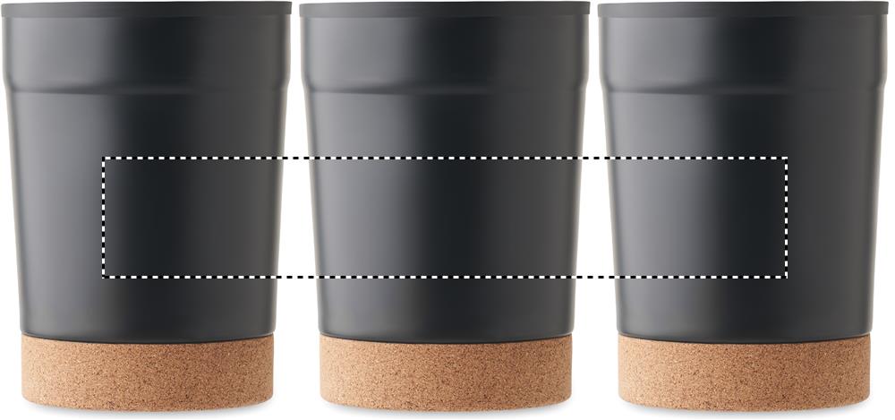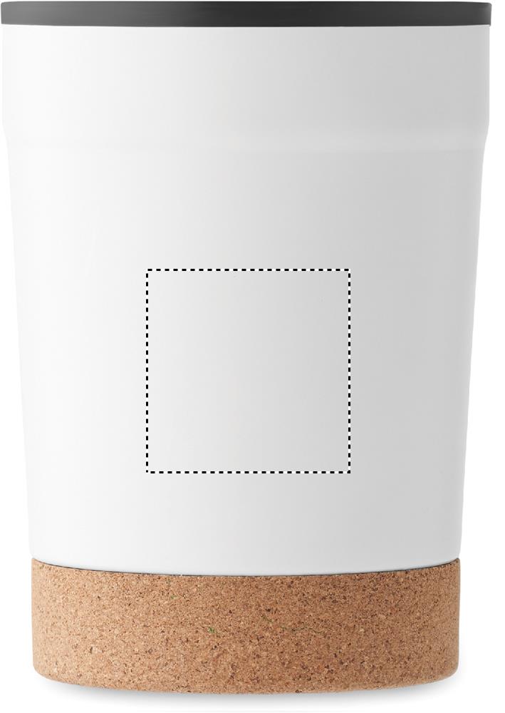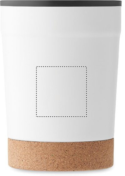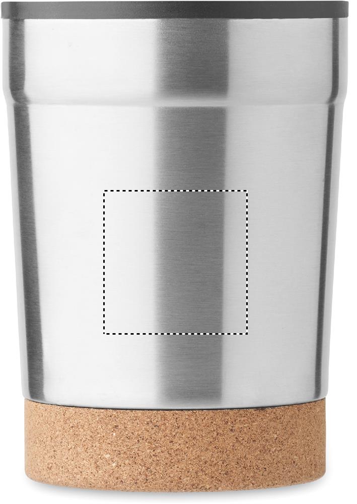 Doppelwandiger Becher aus Edelstahl mit PP-Innenseite. Der Boden ist mit Kork abgesetzt. Schiebedeckel mit Trinköffnung. Auslaufsicher. Füllmenge: 300 ml.
