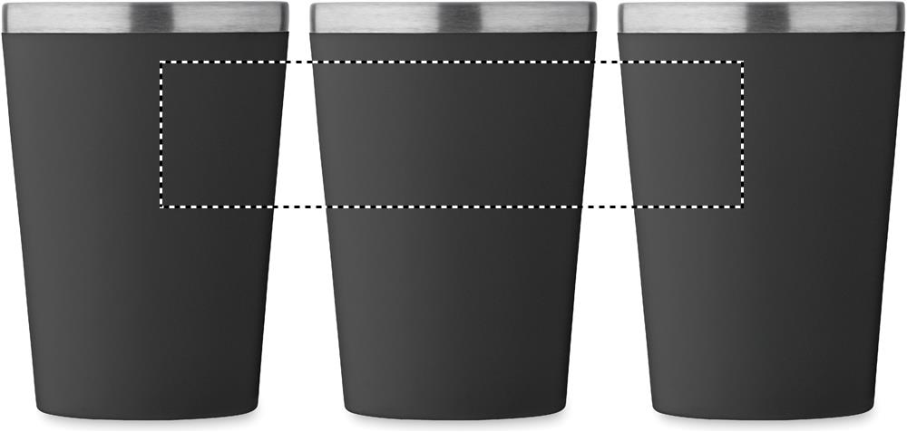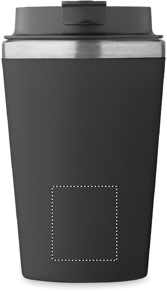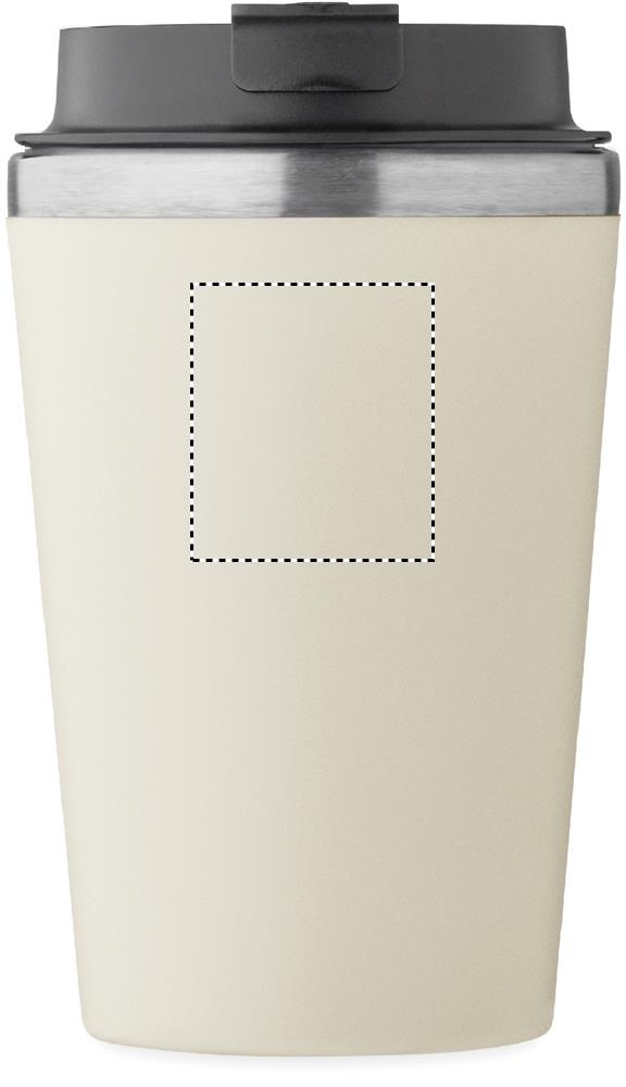 Doppelwandiger Trinkbecher. Äussere Schicht aus PP, Innenwand aus recyceltem Edelstahl (90 % recycelter Edelstahl und 10 % Edelstahl) mit keramischer Innenauskleidung. Auslaufsicher. Füllmenge: 350 ml.