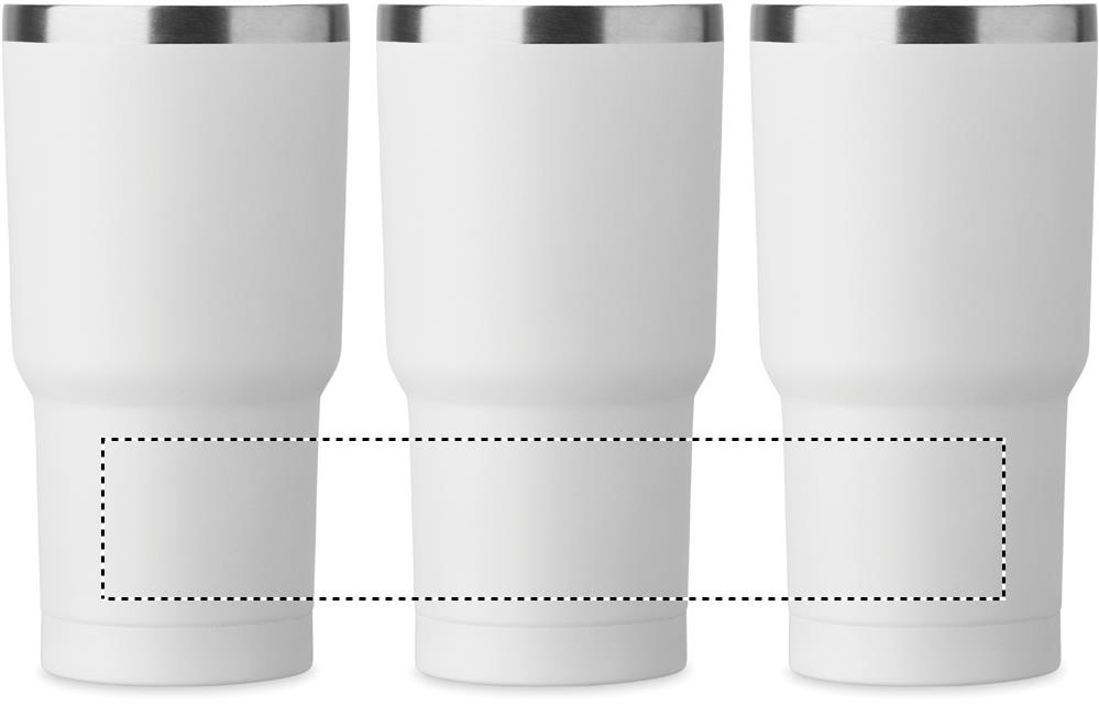 Doppelwandiger Trinkbecher aus recyceltem Edelstahl (90% recycelter Edelstahl und 10% Edelstahl). Deckel mit Trinköffnung. Auslaufsicher. Füllmenge: 550 ml.