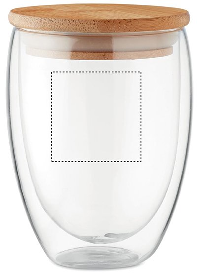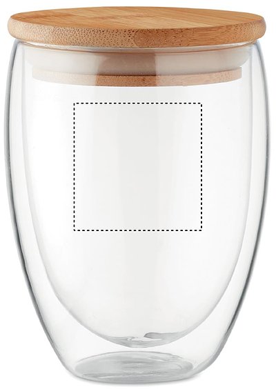 Doppelwandiges Borsilikat-Glas mit Deckel aus Bambus mit Silikonring. Inhalt 350 ml. Bambus ist ein natürliches Produkt, es kann daher zu leichten Abweichungen in Farbe, Dekor und Massen kommen.