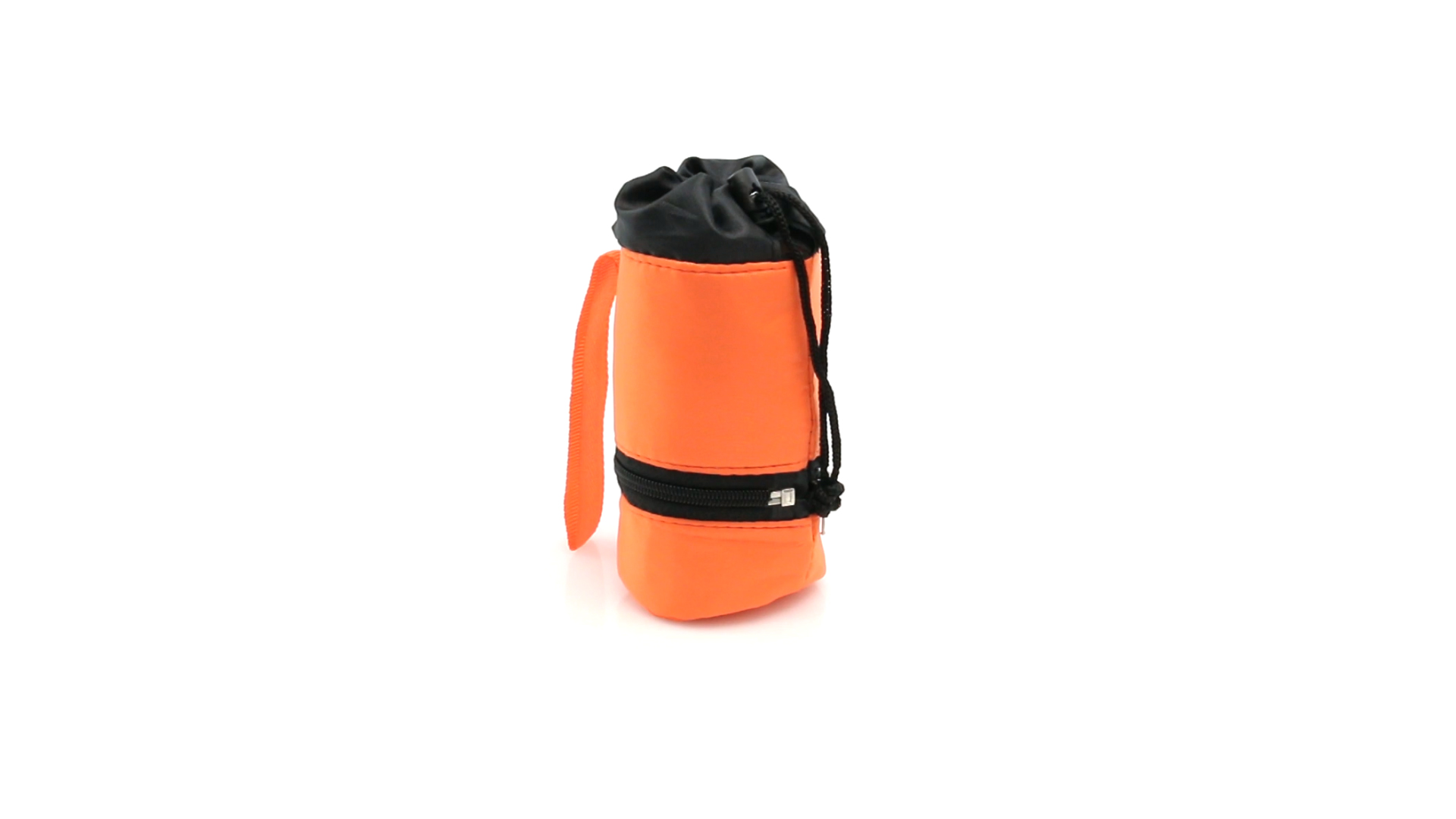 Erweiterbare Kühltasche für Dosen bis 330 ml und Flaschen bis 500 ml, hergestellt aus robustem Polyester in kräftigen Farben. Mit Reissverschluss zur Höhenverstellung, Kordelverschluss und bequemem, farblich passendem Tragegriff. Isotherm-Innenraum in Aluminium-Ausführung.