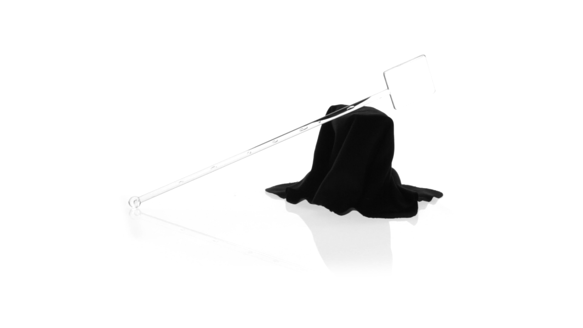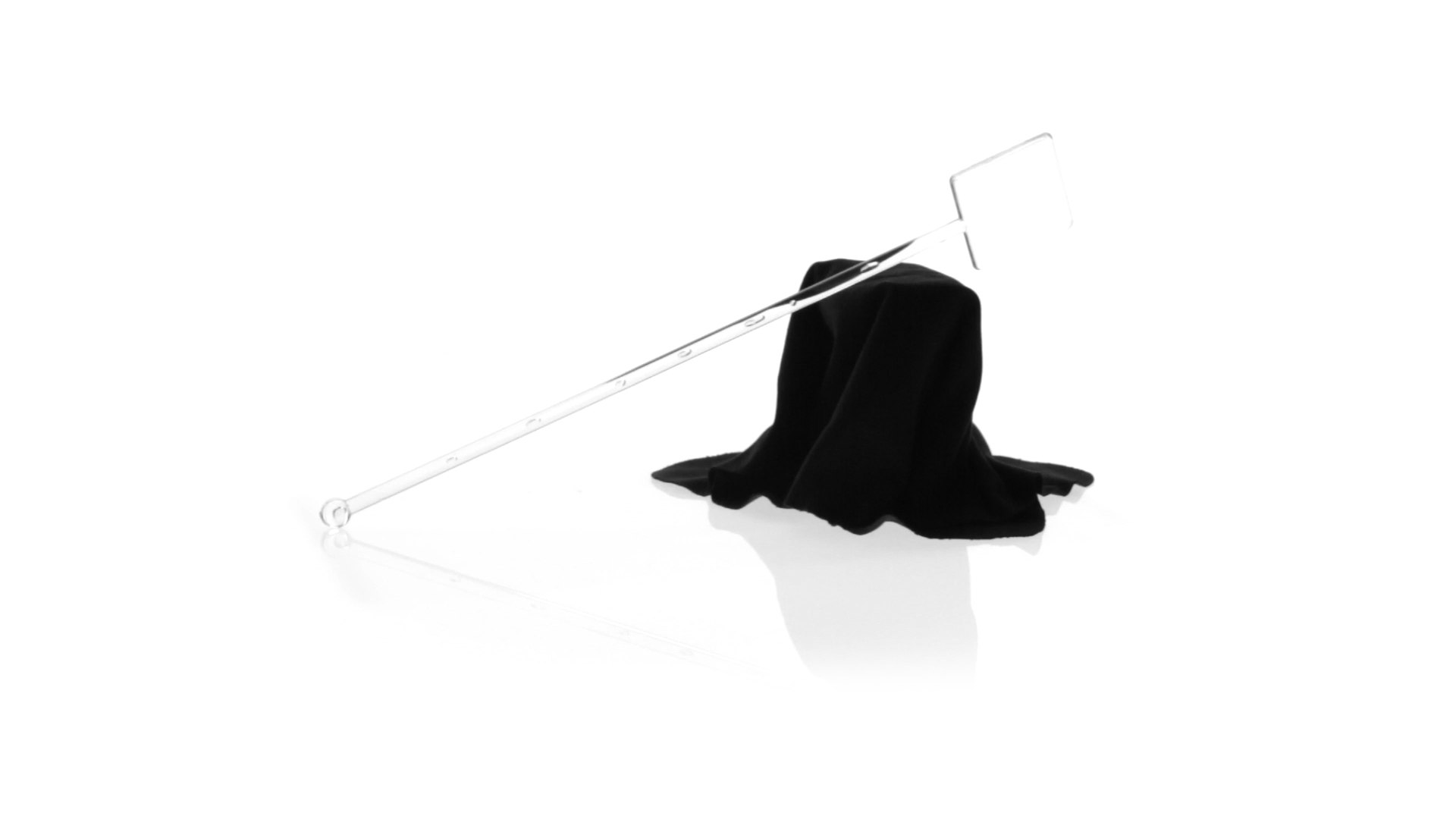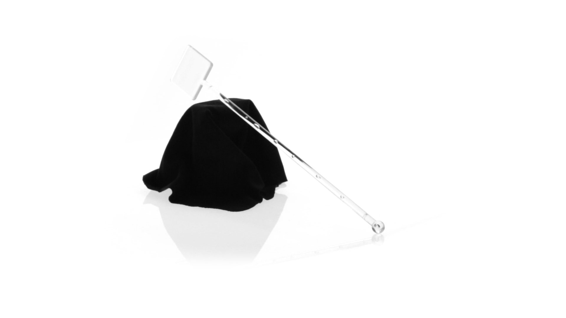 Cocktailstab für verschiedene Getränke. 21 cm lang und transparent. Mit Kugel am unteren Ende sowie rechteckigem Kopfteil für das Logo.