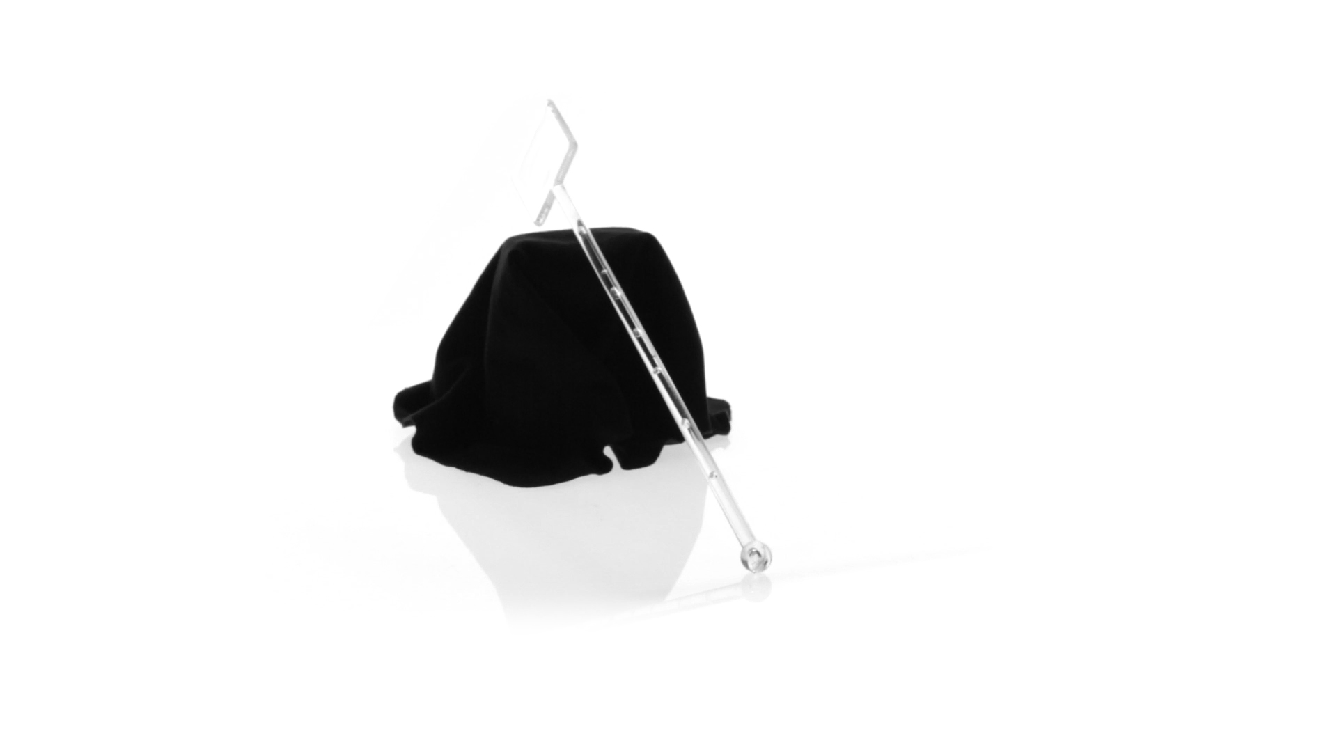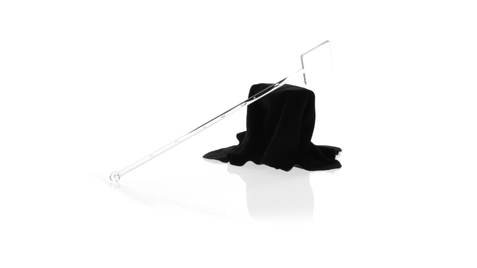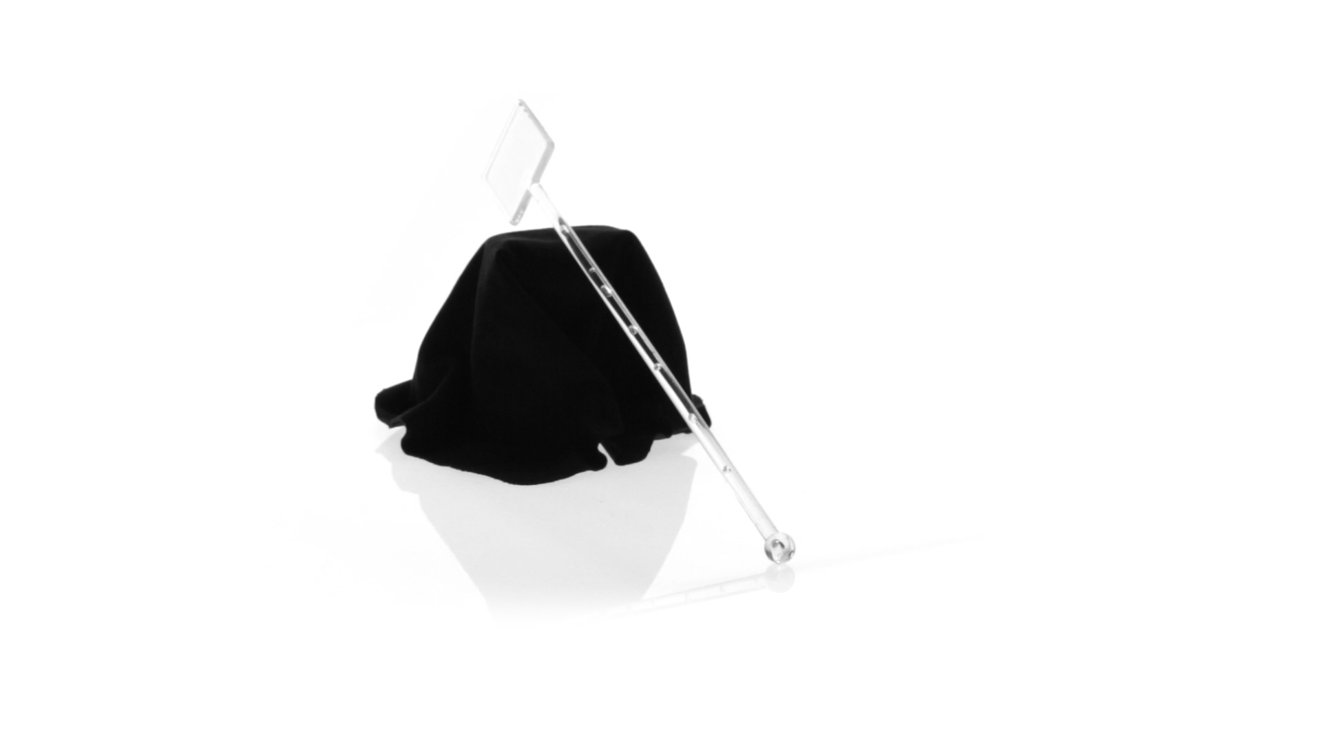 Cocktailstab für verschiedene Getränke. 21 cm lang und transparent. Mit Kugel am unteren Ende sowie rechteckigem Kopfteil für das Logo.