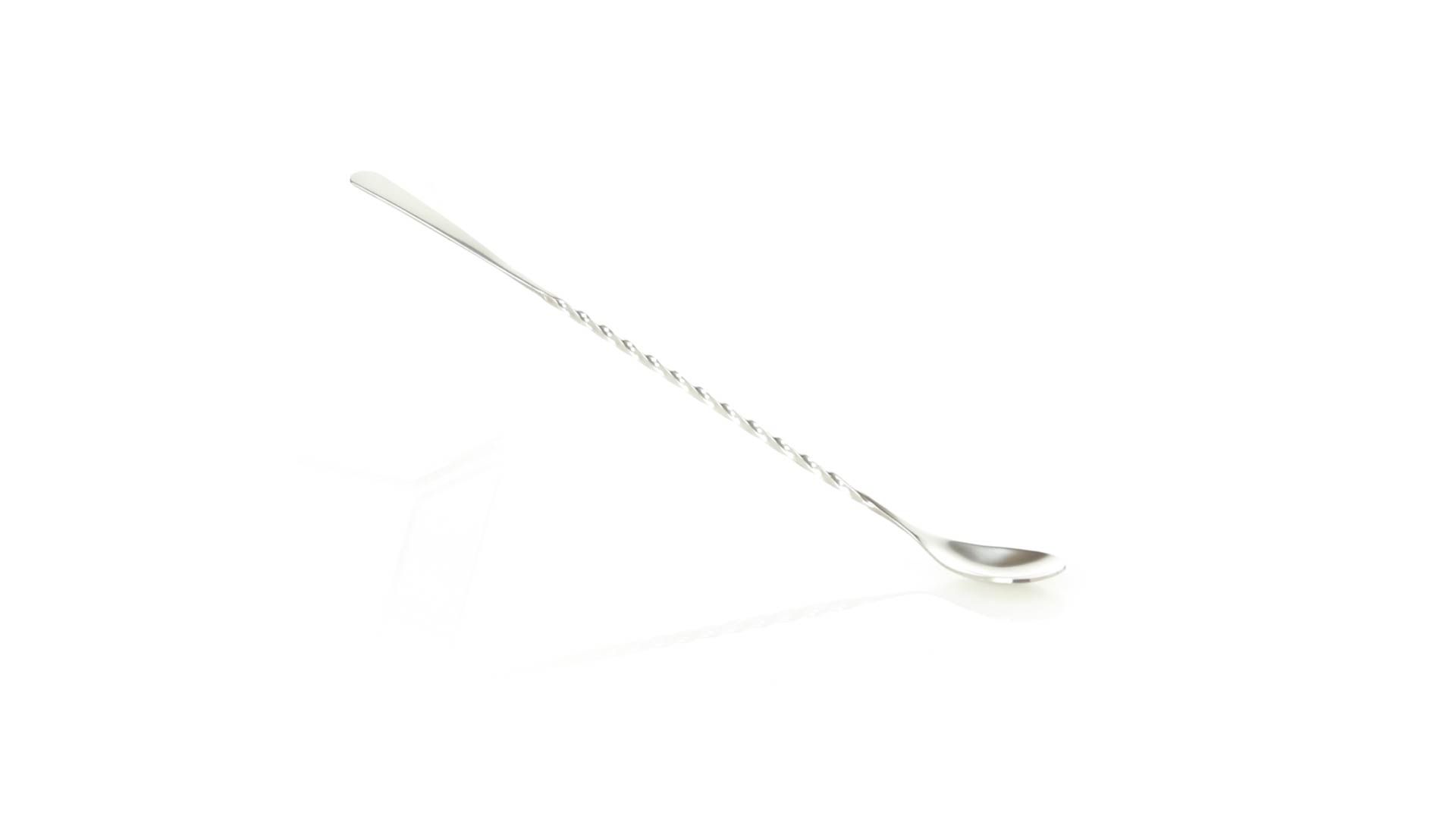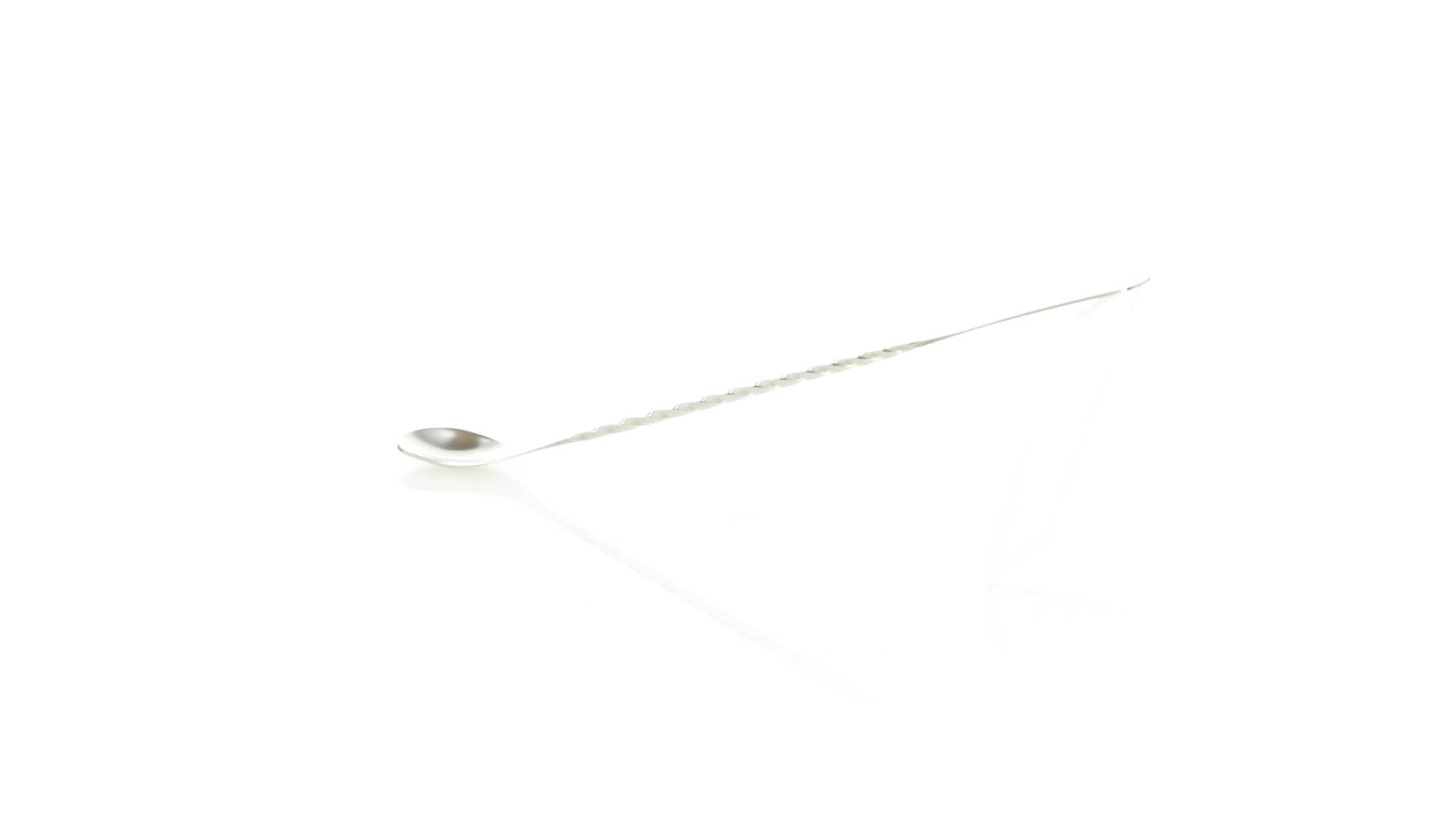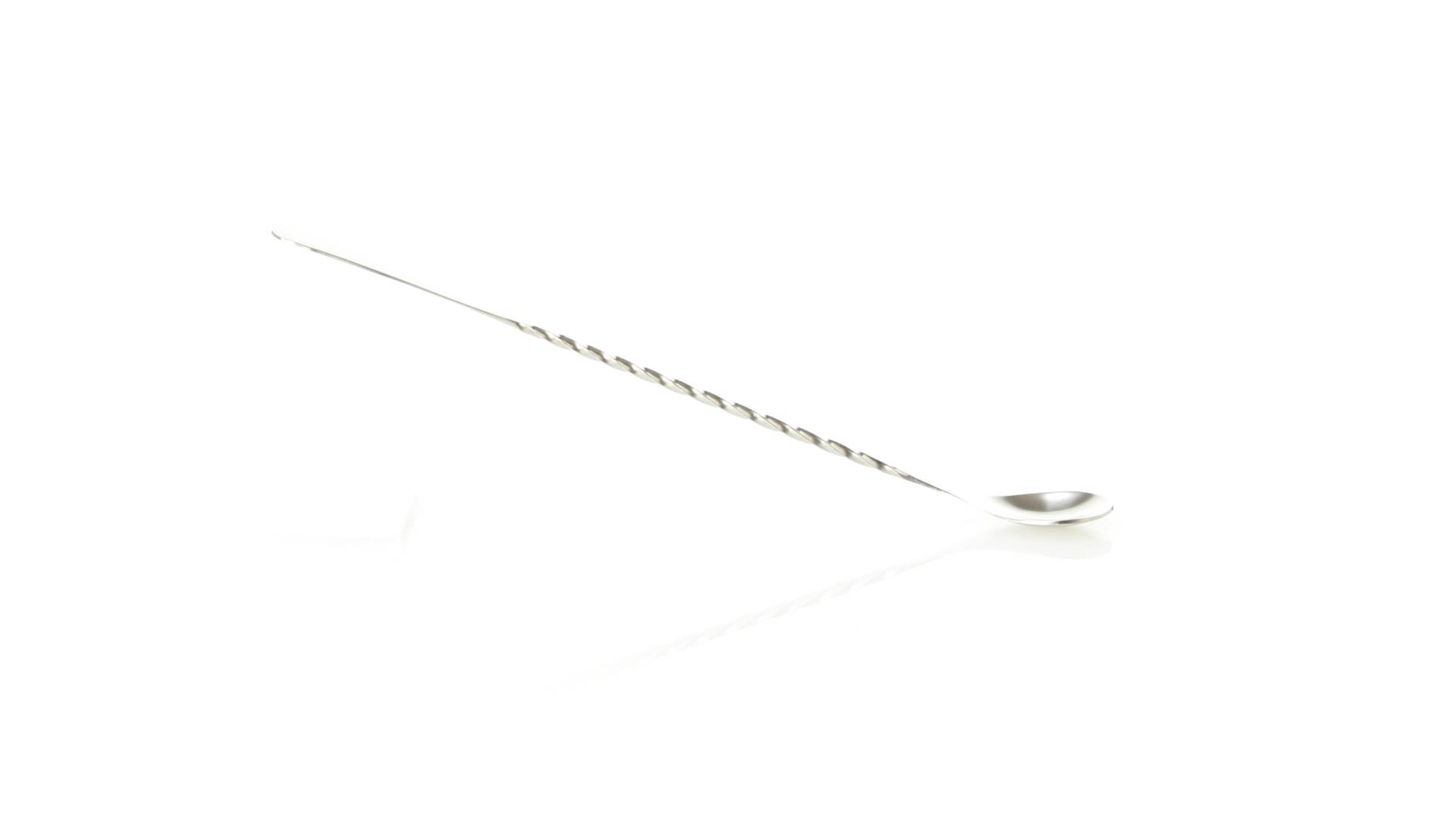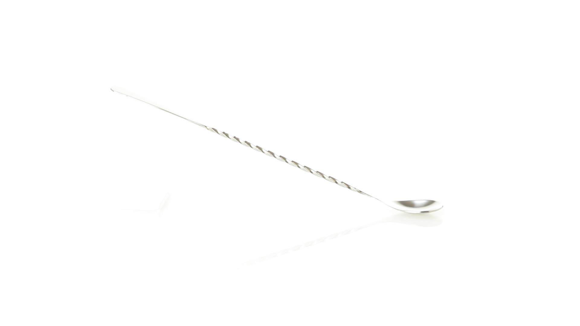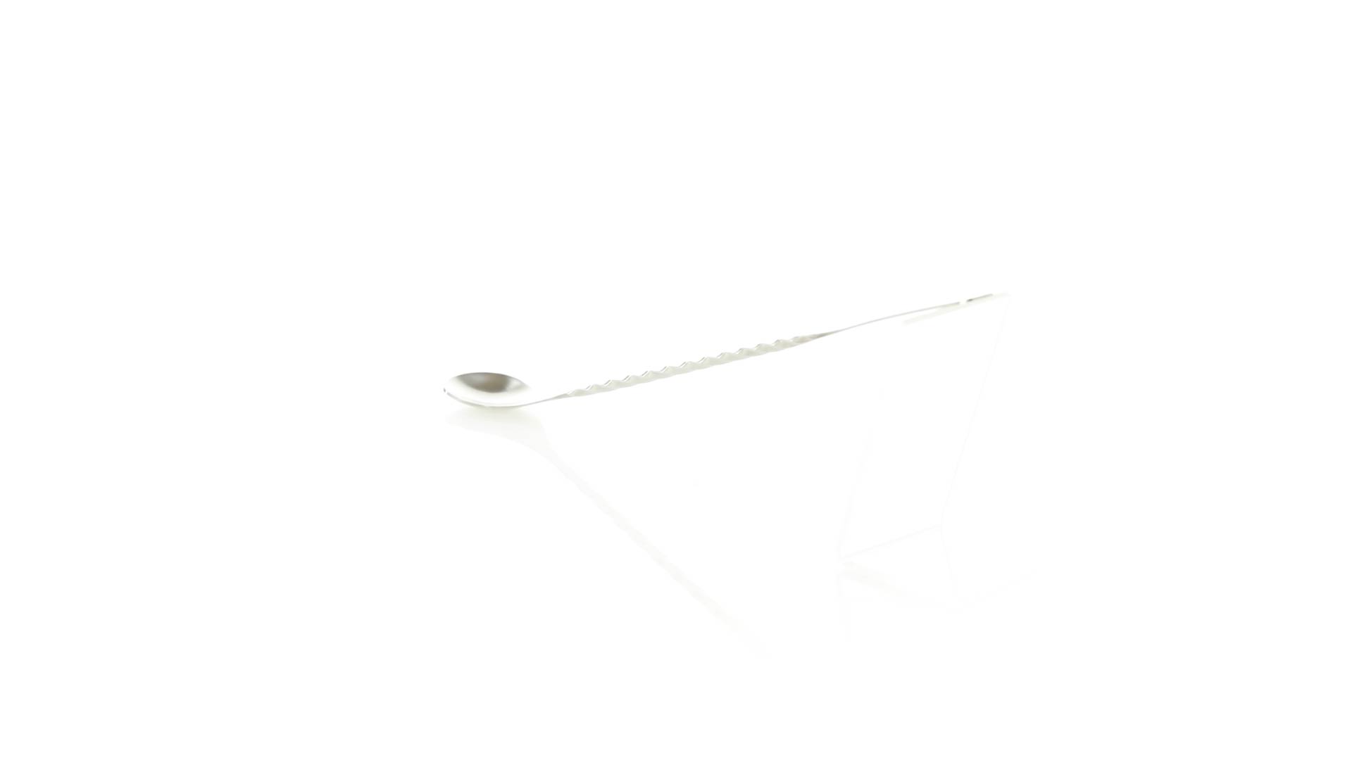 Rührwerk aus Edelstahl für Getränke. 25,6 cm langer Körper in Spiralausführung, mit flachem Ende zum Bedrucken.