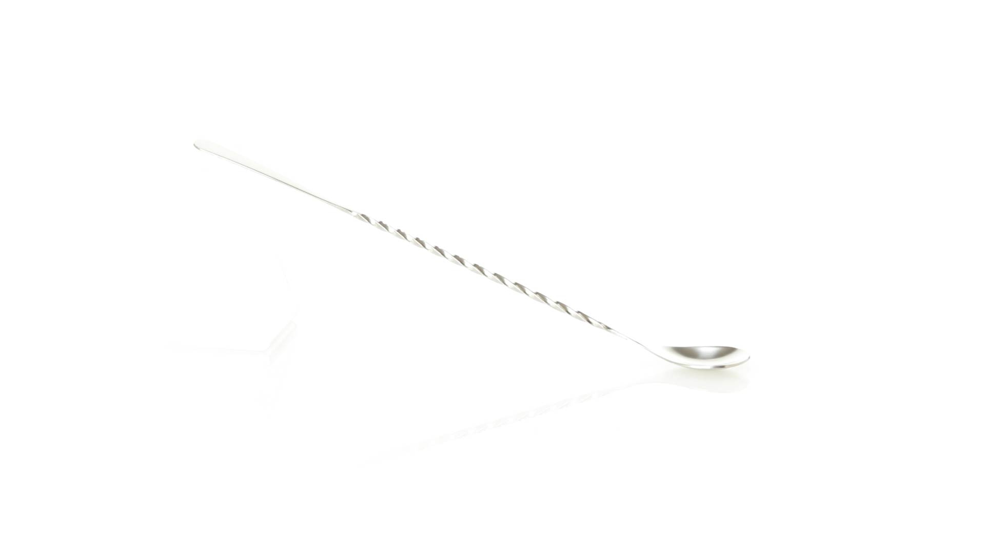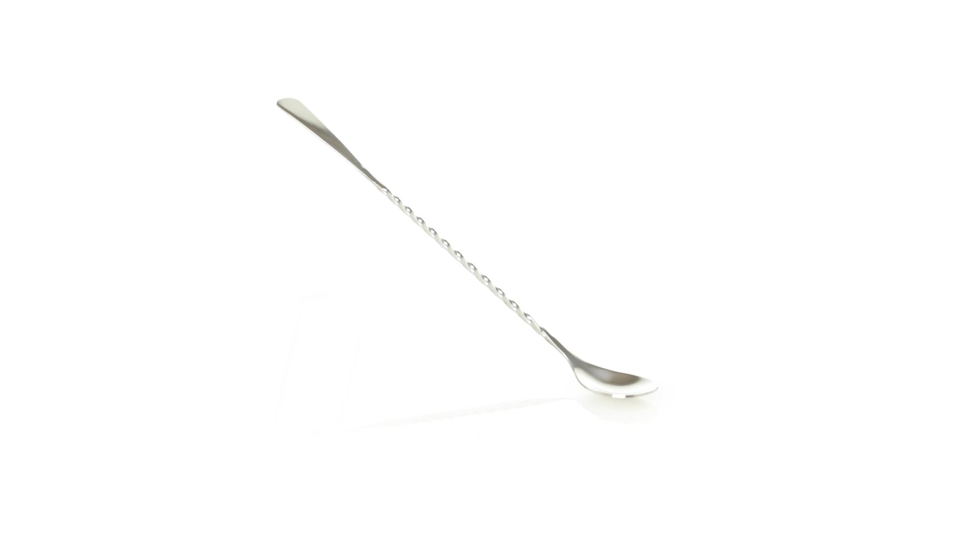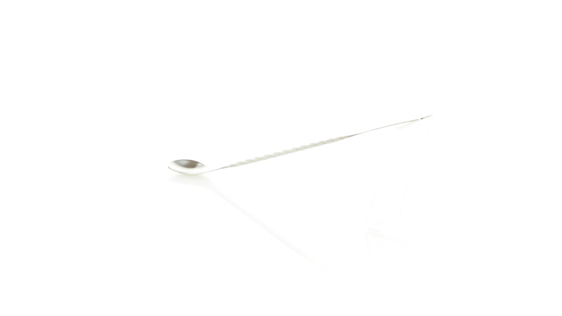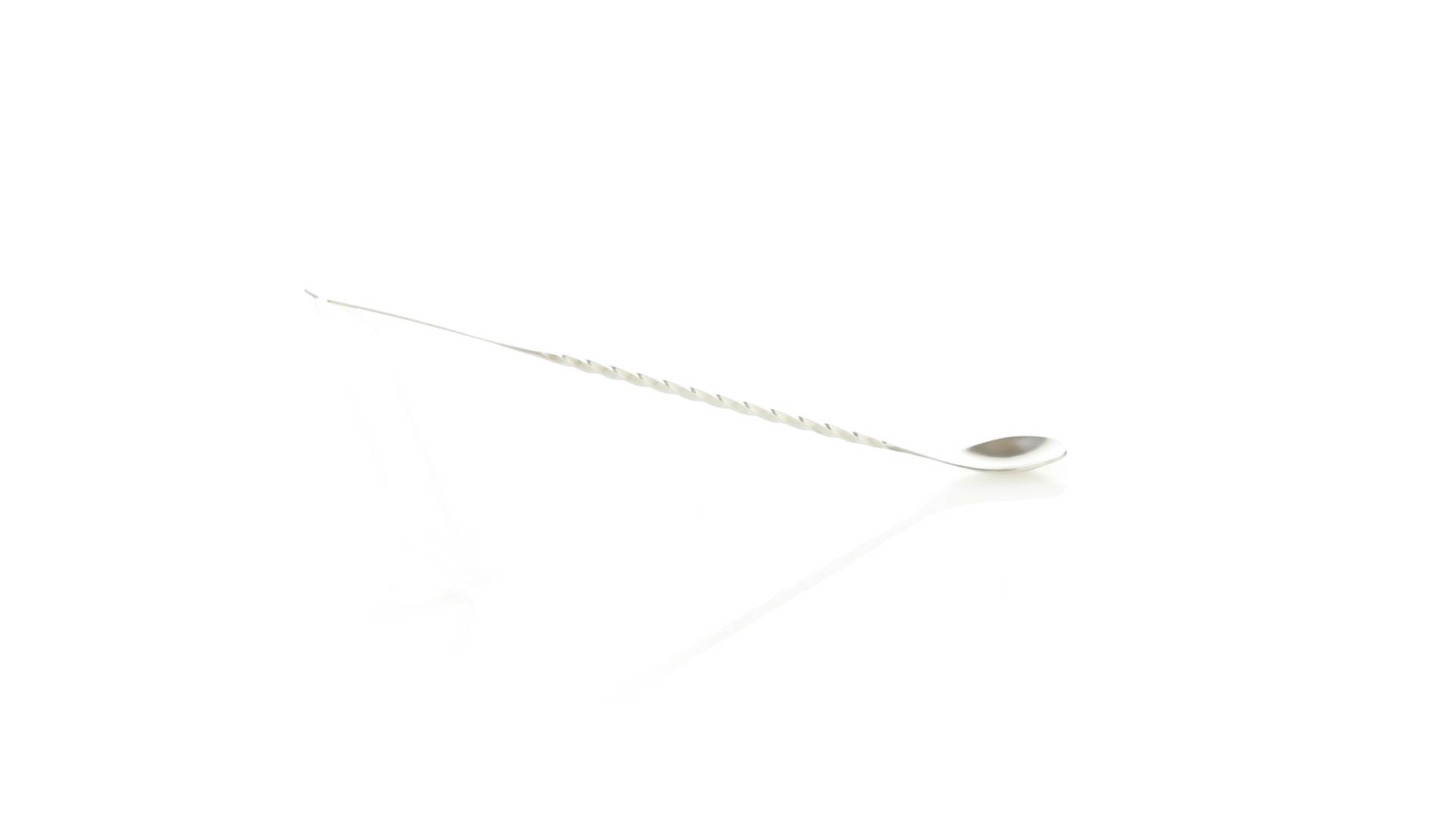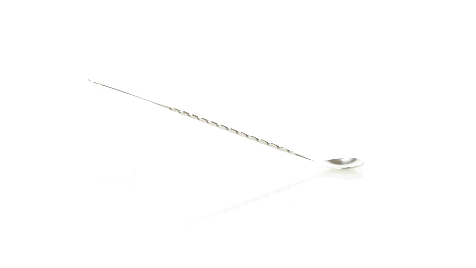 Rührwerk aus Edelstahl für Getränke. 25,6 cm langer Körper in Spiralausführung, mit flachem Ende zum Bedrucken.