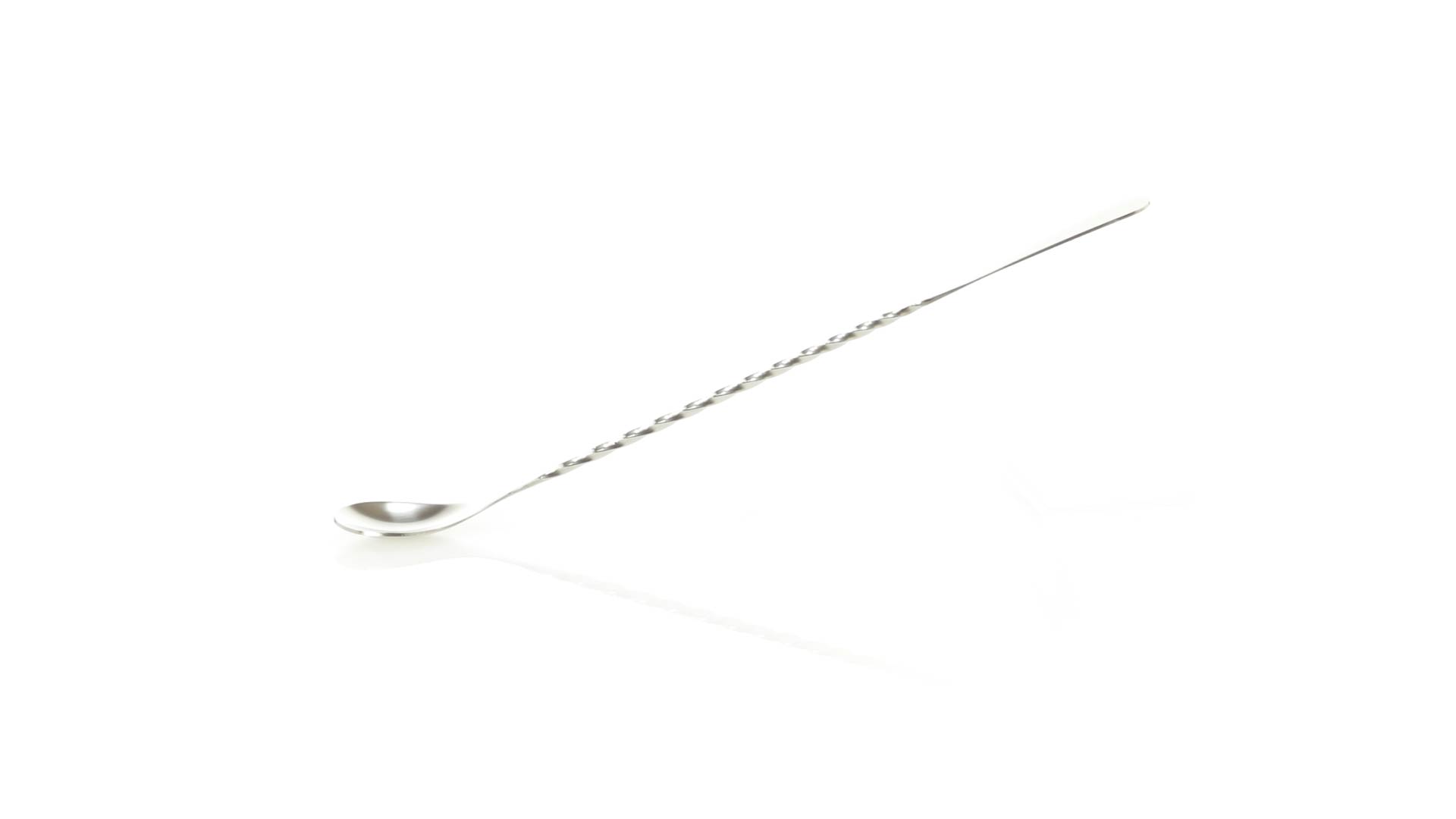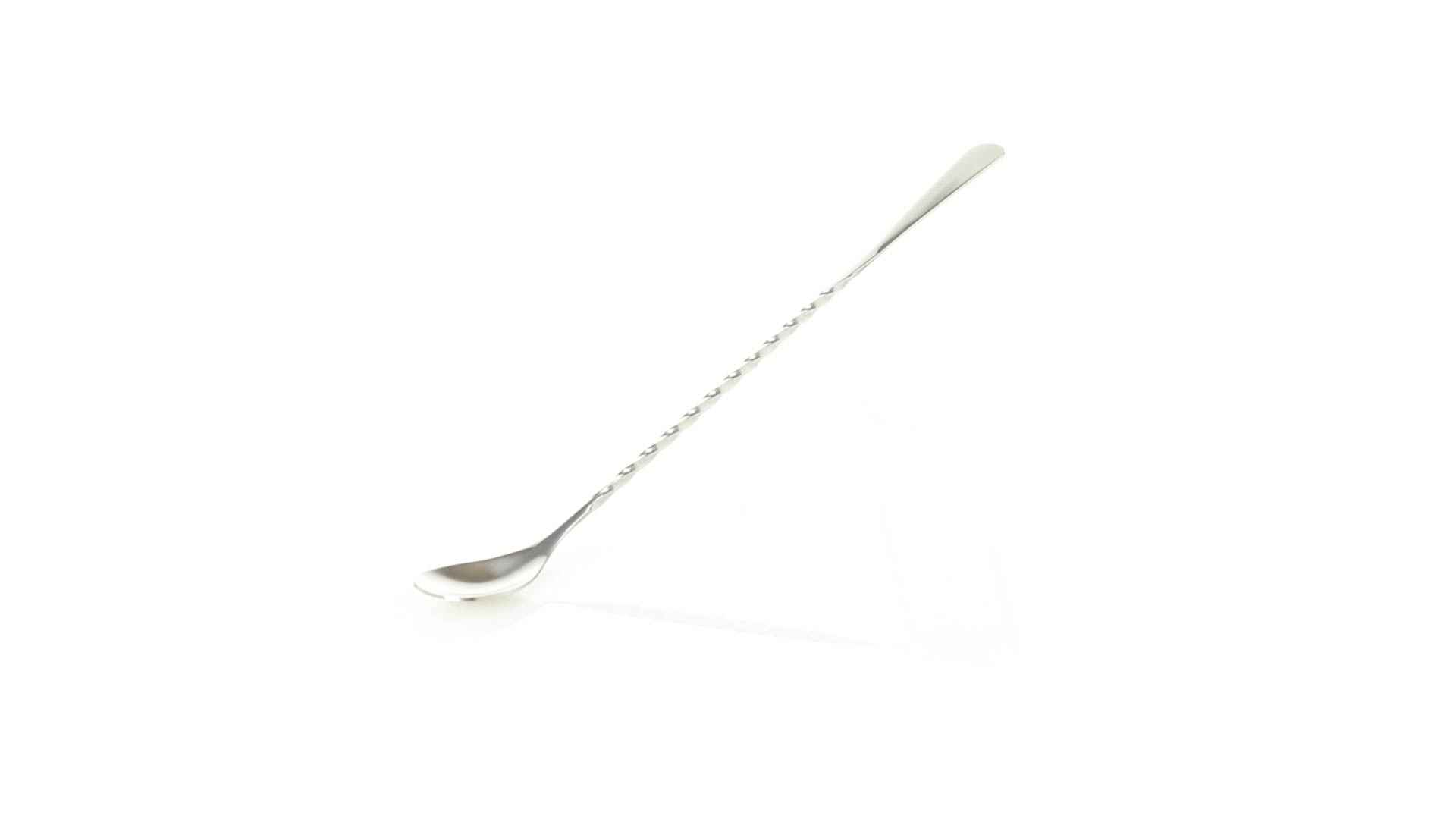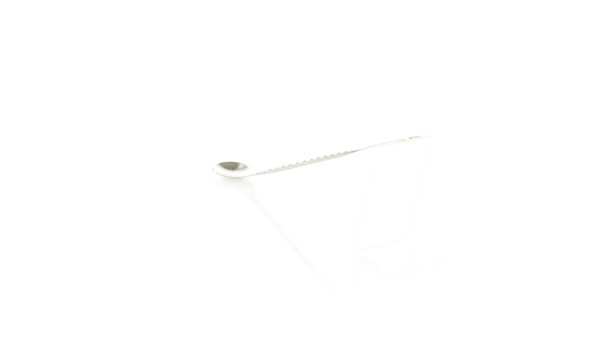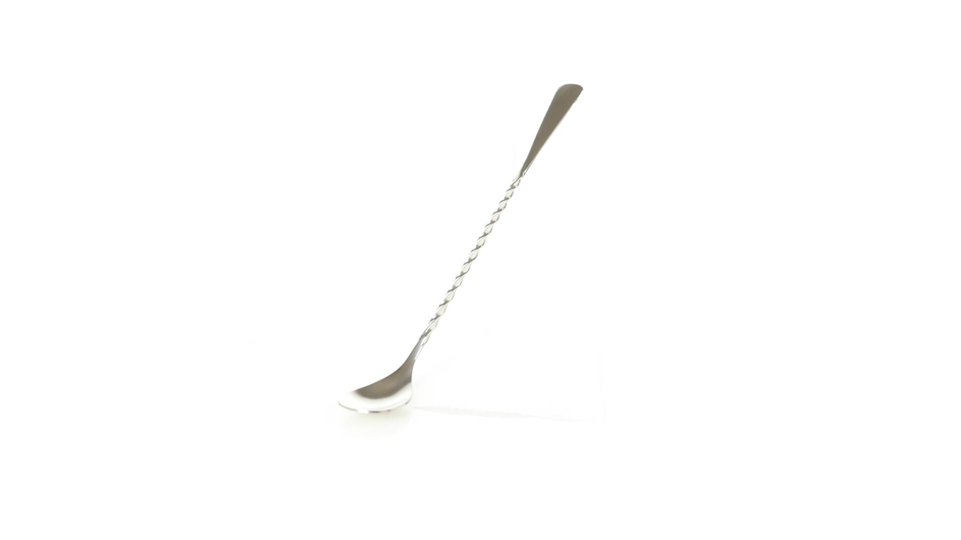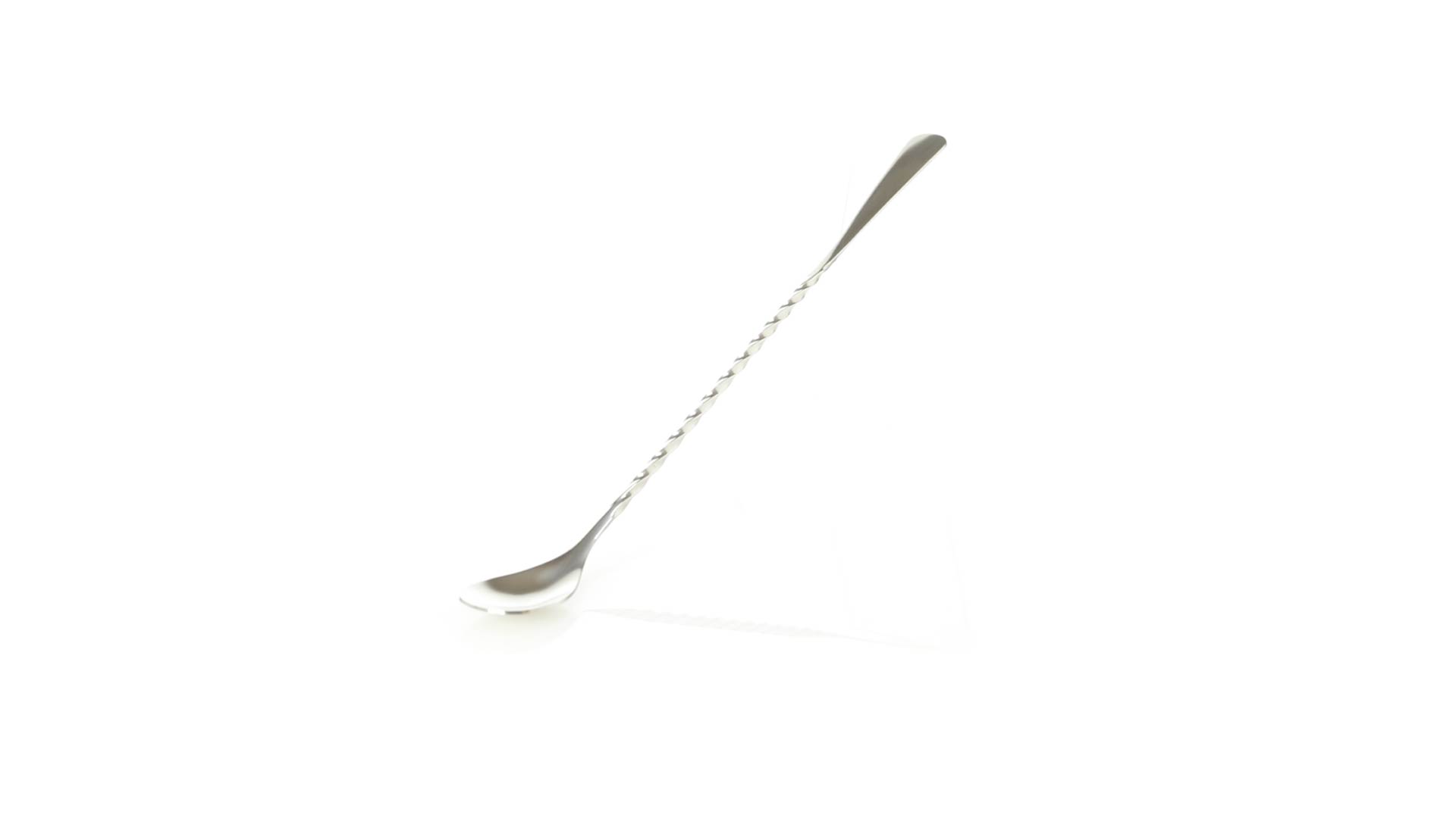 Rührwerk aus Edelstahl für Getränke. 25,6 cm langer Körper in Spiralausführung, mit flachem Ende zum Bedrucken.