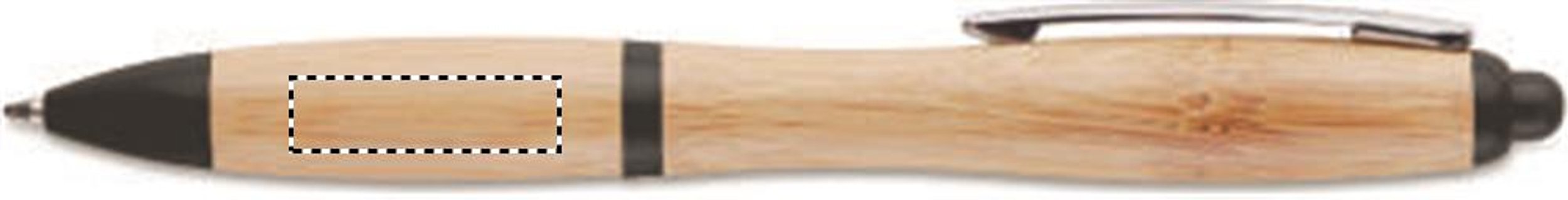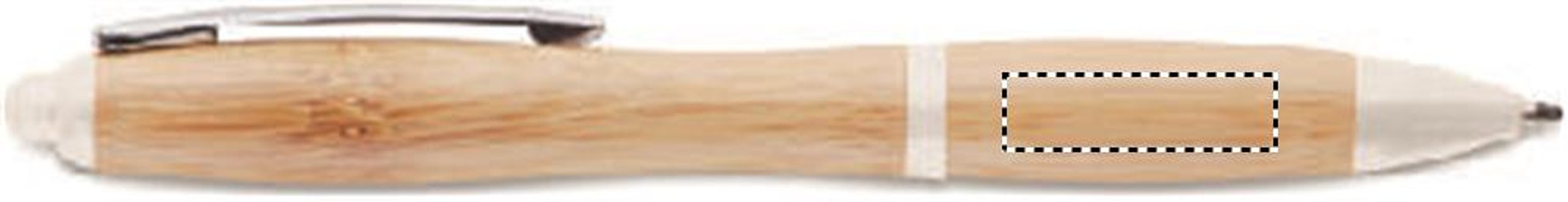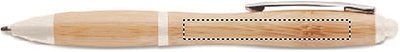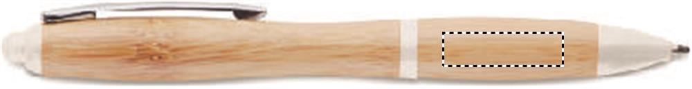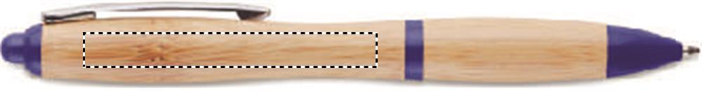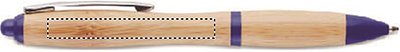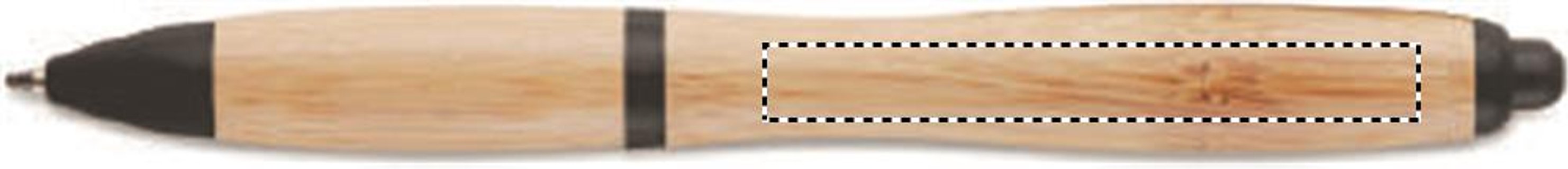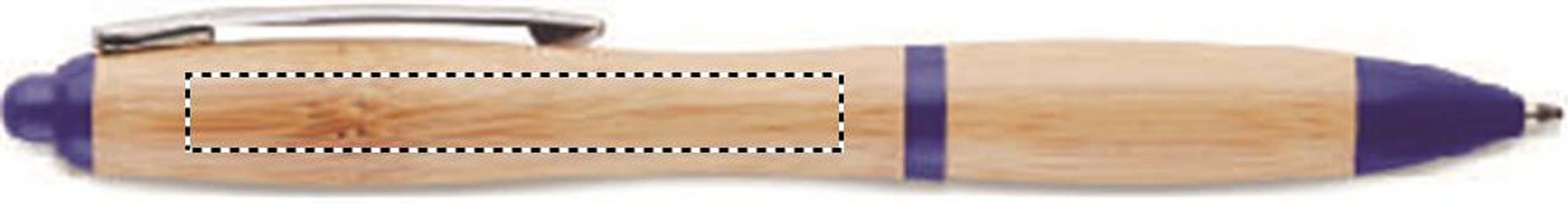Druckkugelschreiber mit Schaft aus Bambus. Clip aus Metall, Drücker und Spitze aus ABS. Blaue Tinte. Bambus ist ein natürliches Produkt, es kann daher zu leichten Abweichungen in Farbe, Dekor und Massen kommen.