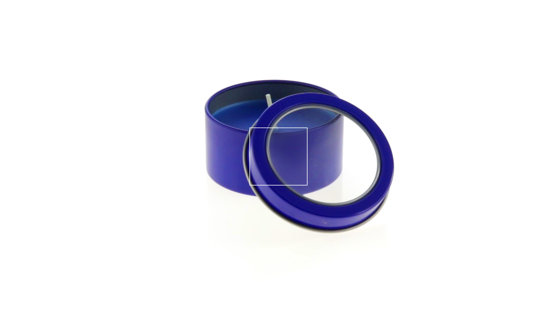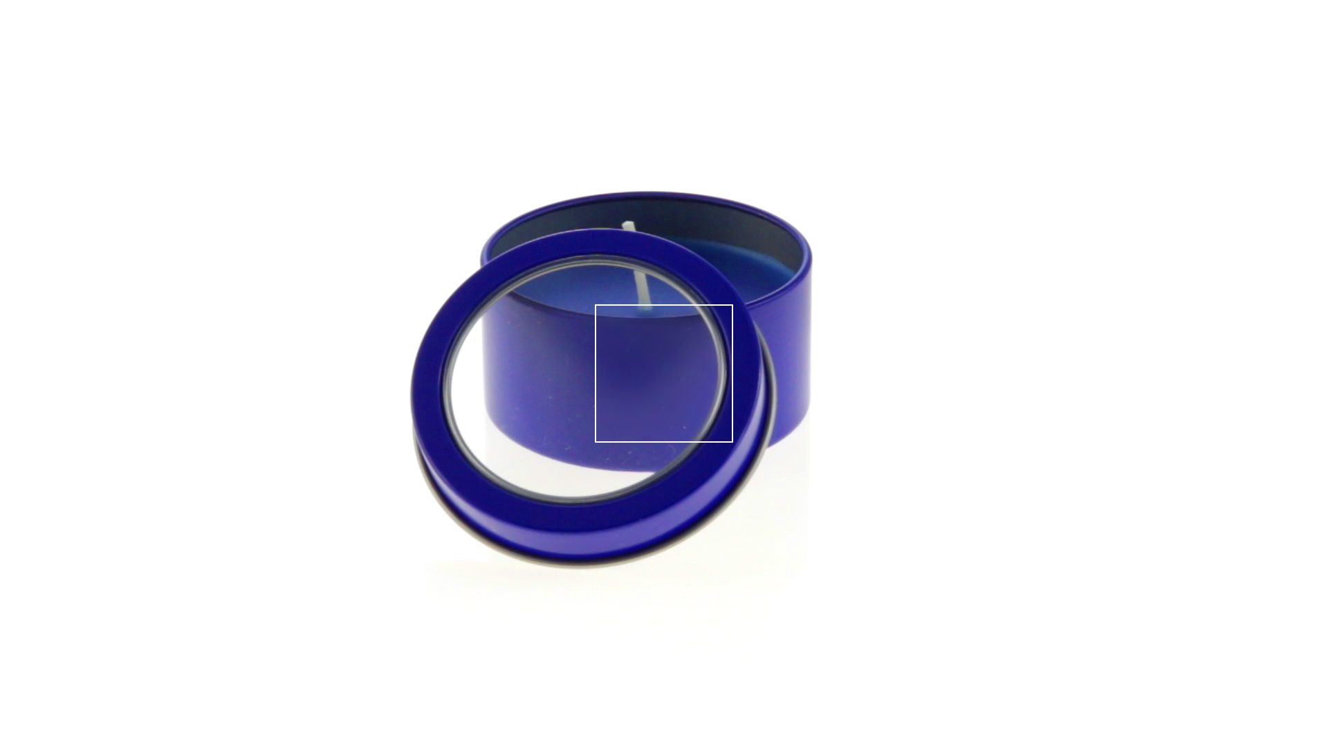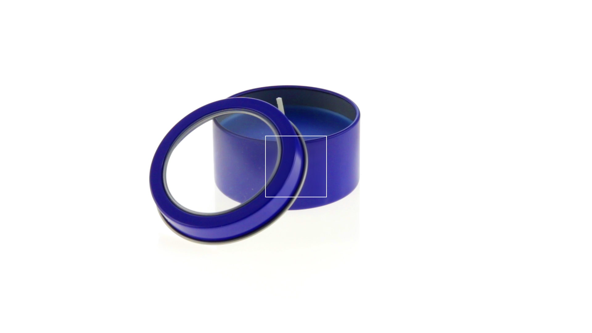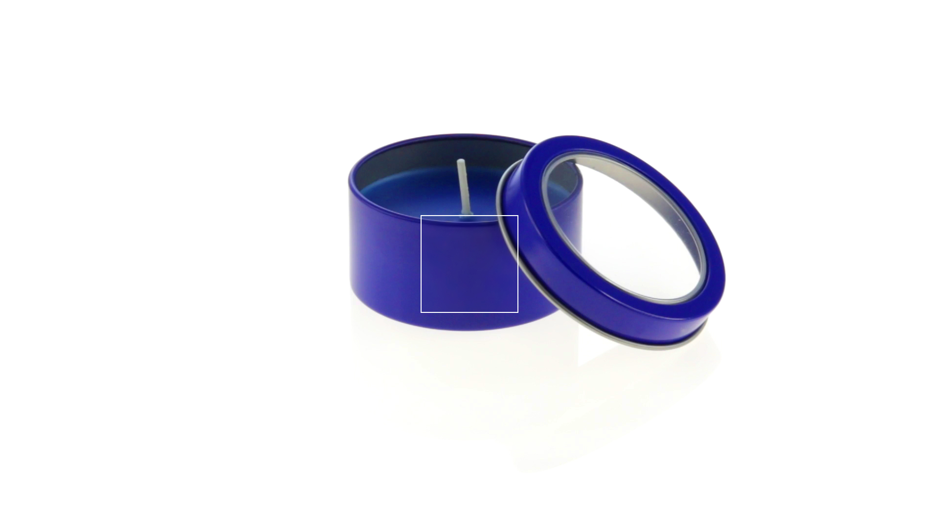 Aromakerze mit Vanilleduft. Präsentiert in einer originellen Metalldose in verschiedenen kräftigen Farben mit transparentem Fenster.