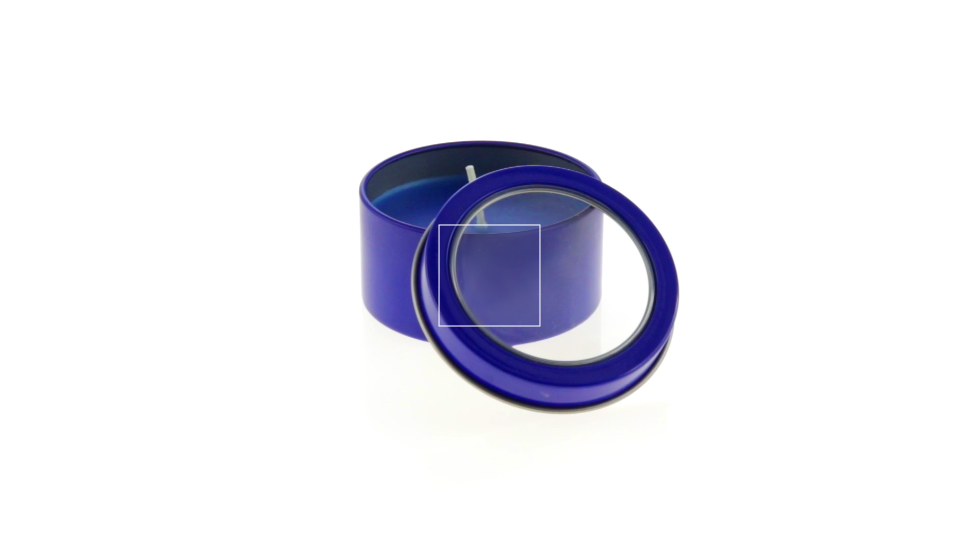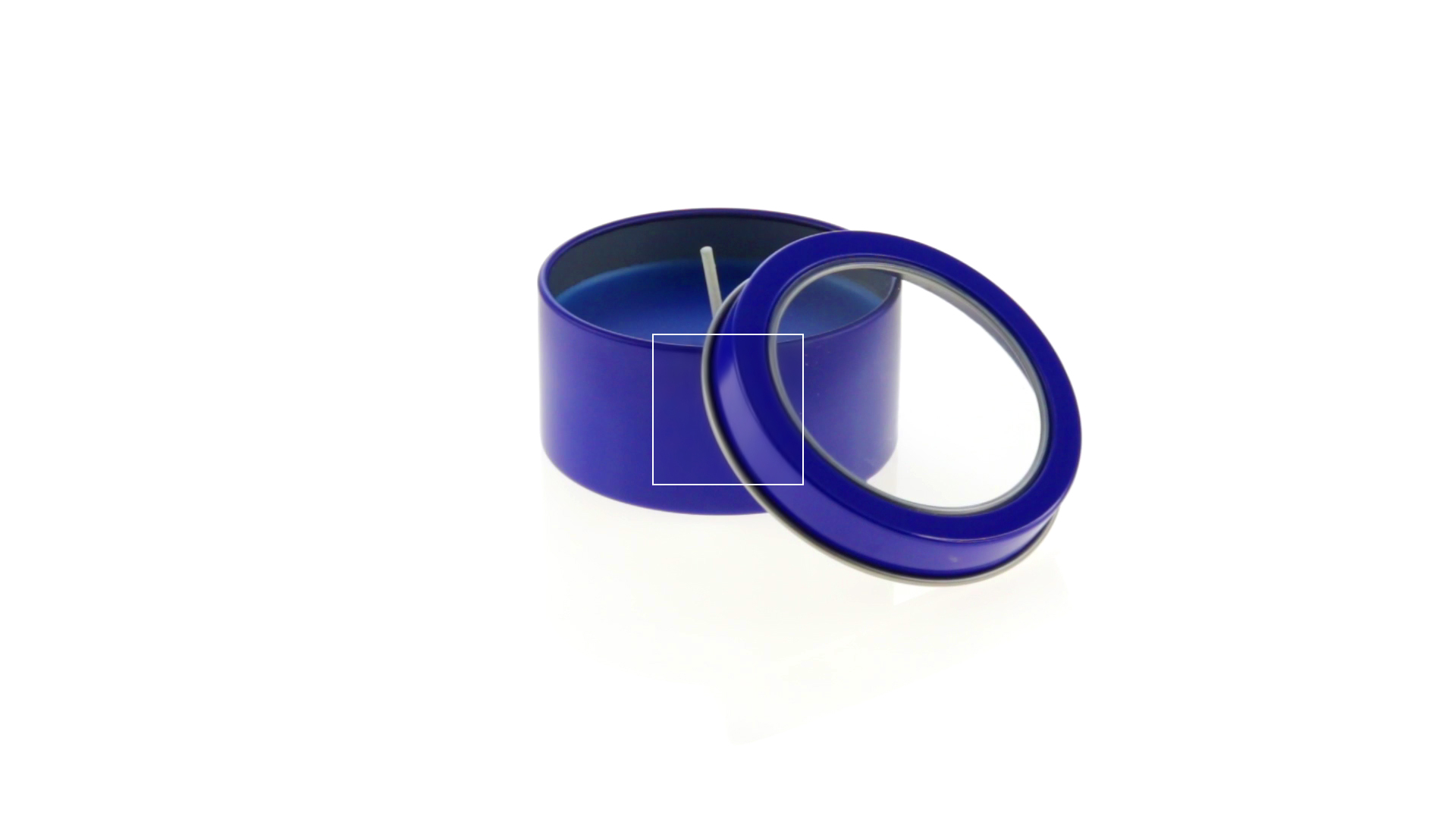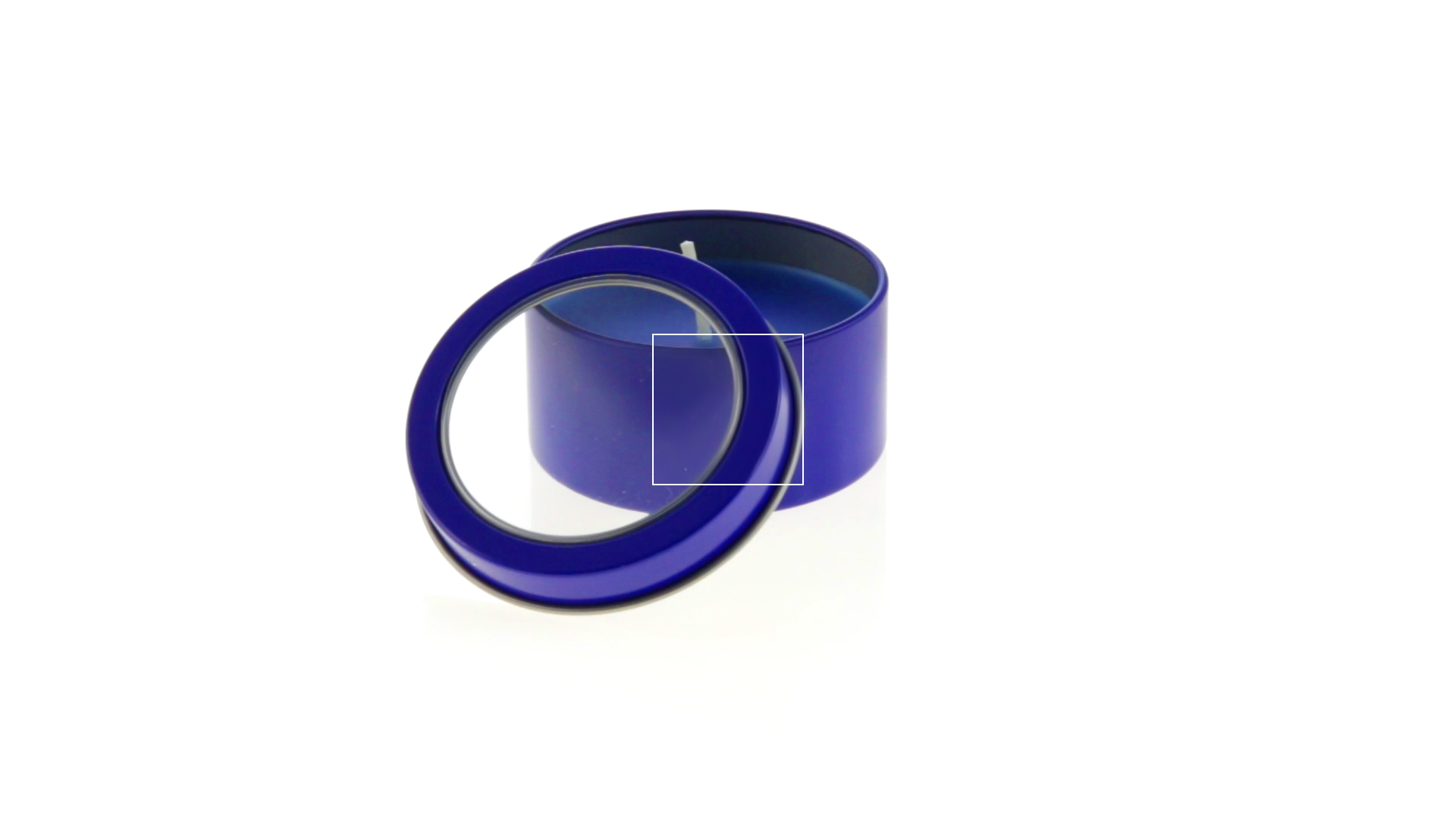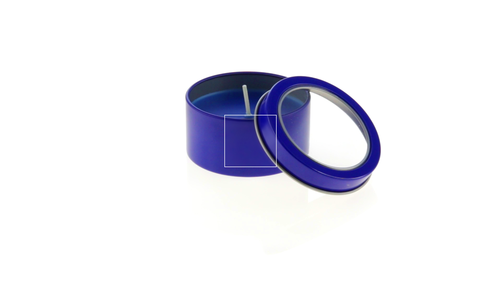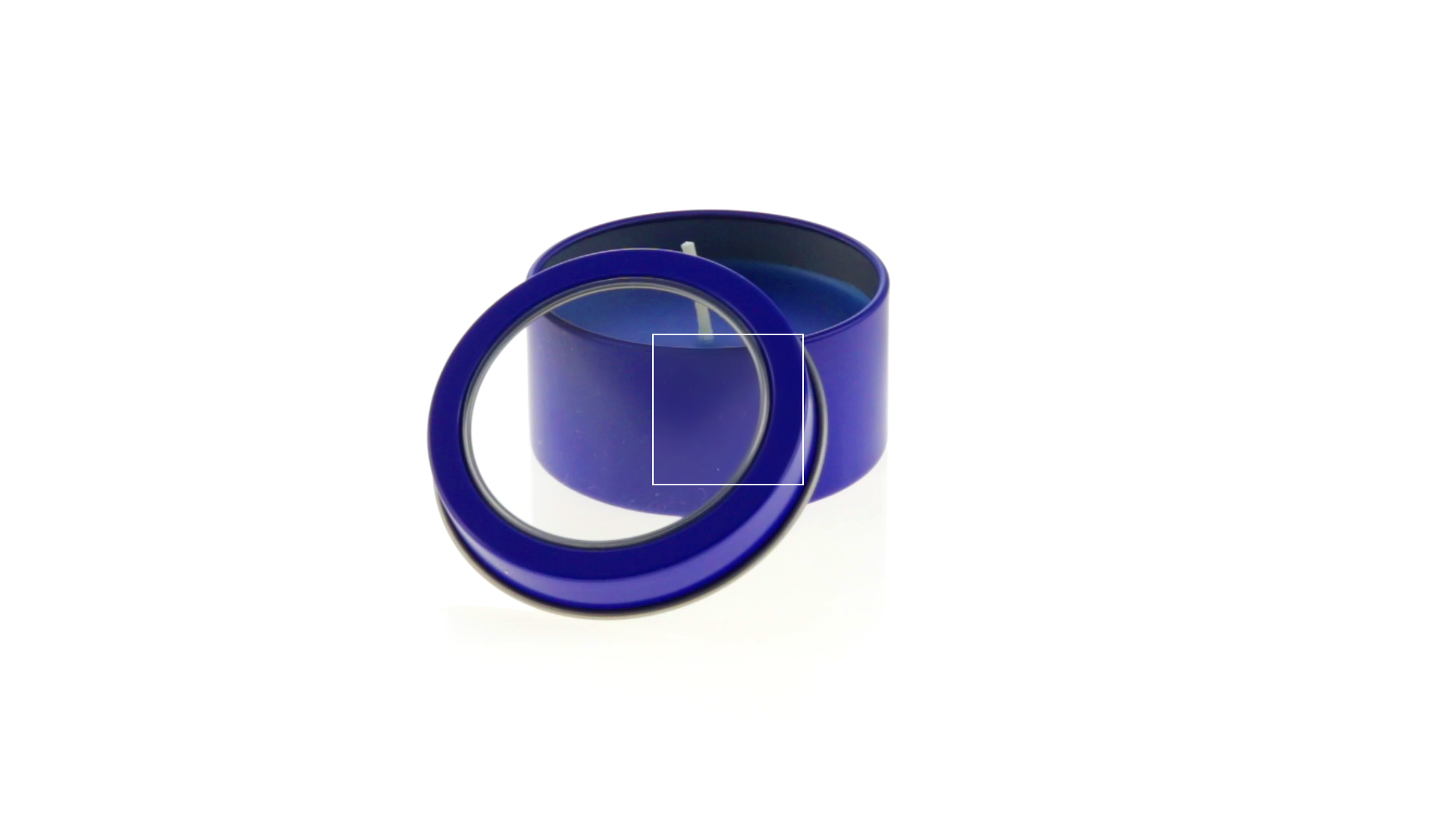 Aromakerze mit Vanilleduft. Präsentiert in einer originellen Metalldose in verschiedenen kräftigen Farben mit transparentem Fenster.