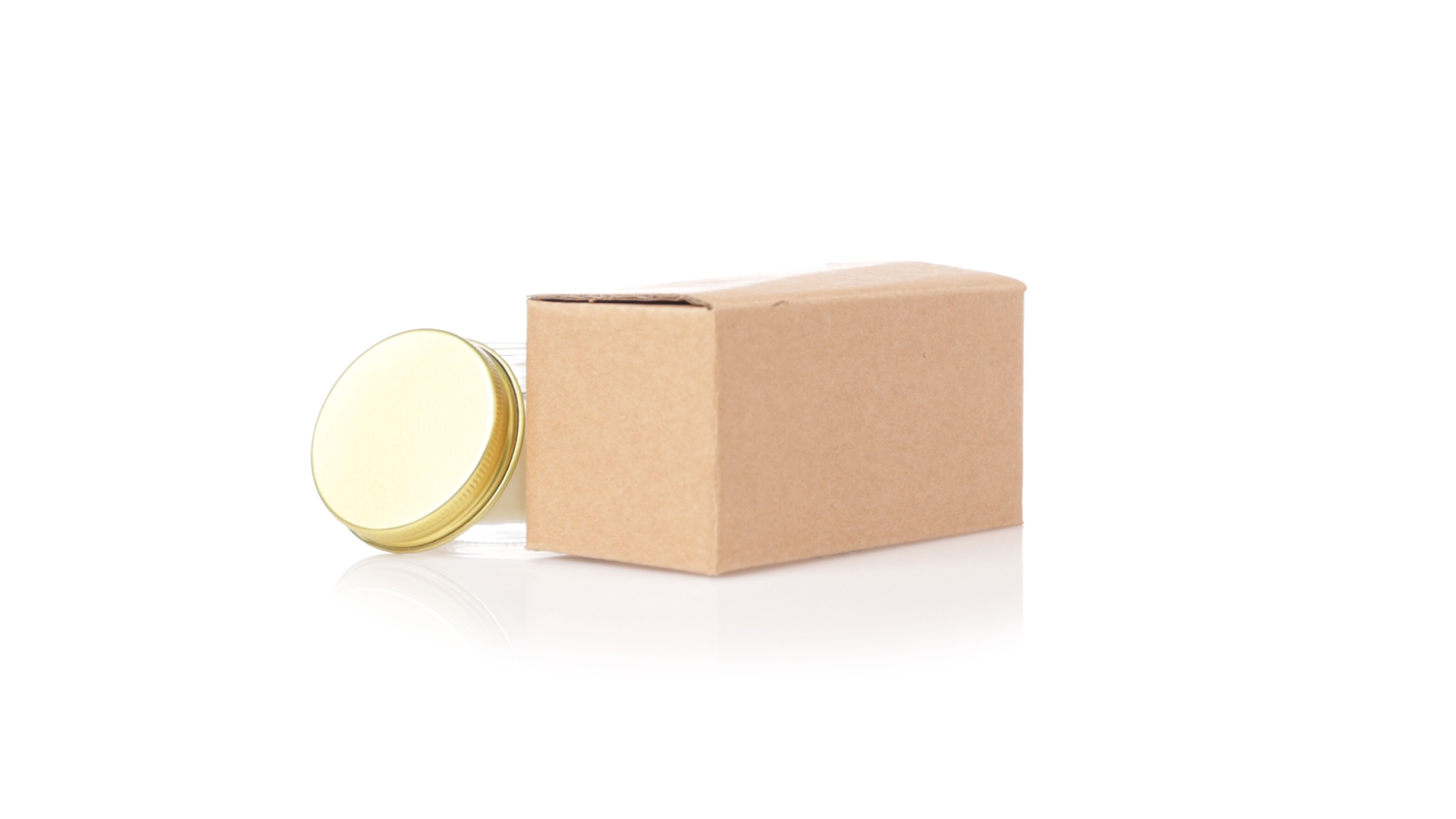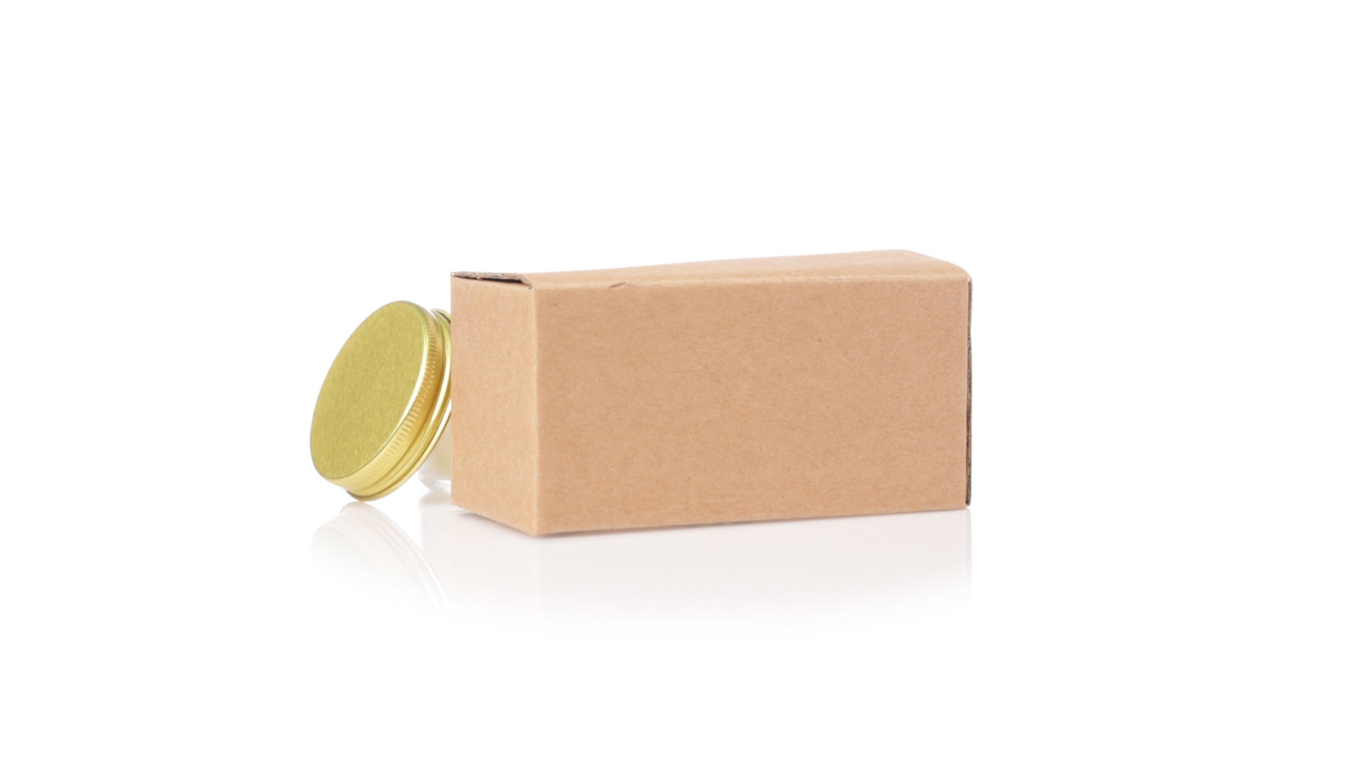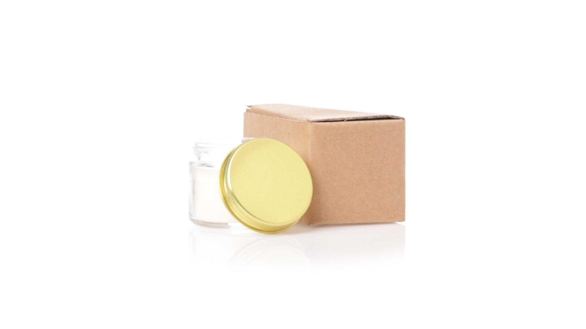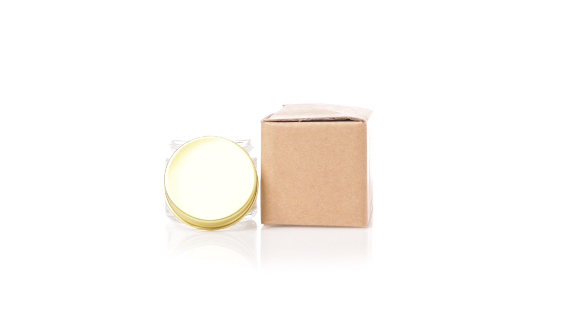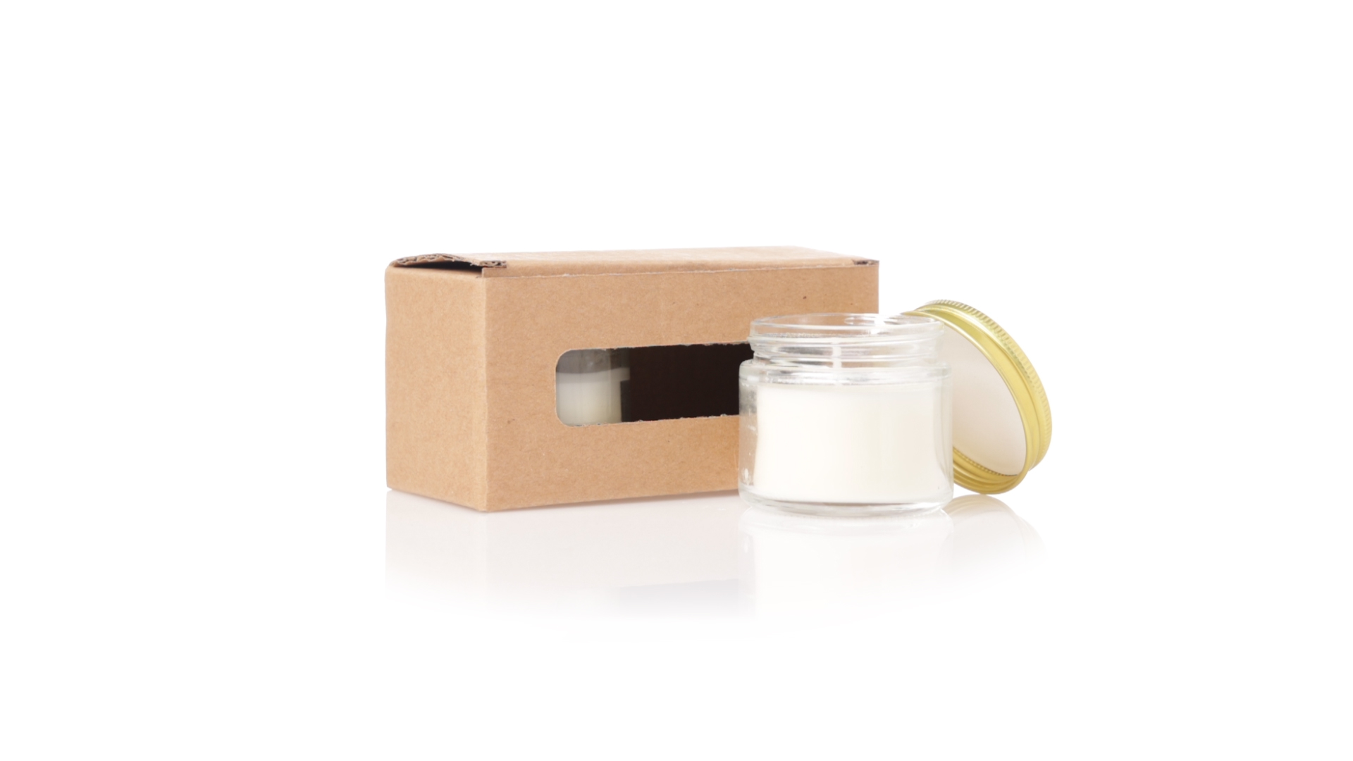 Duftkerzen-Set mit pflanzlichem Wachs und Fresienblüten-Duft. In einem Glasgefäss mit metallischem Schraubverschluss und goldener Oberfläche. Präsentiert in einer individuellen Kraftbox.