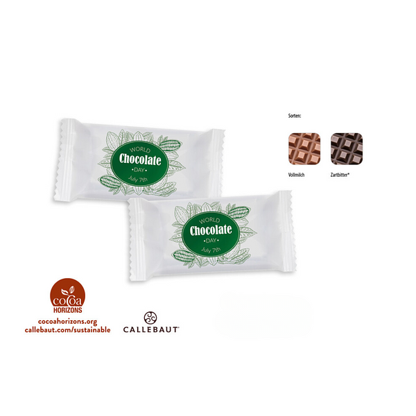 Edle 10 g Schokoladentäfelchen aus belgischer Callebaut Schokolade mit bedruckbarer Verpackung