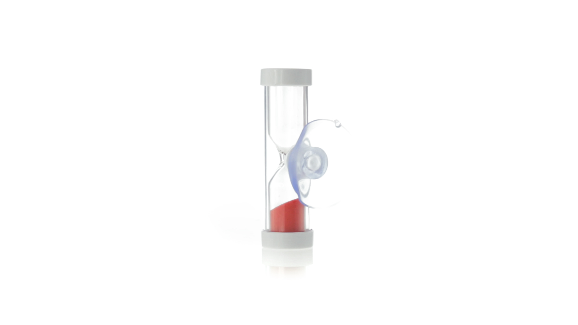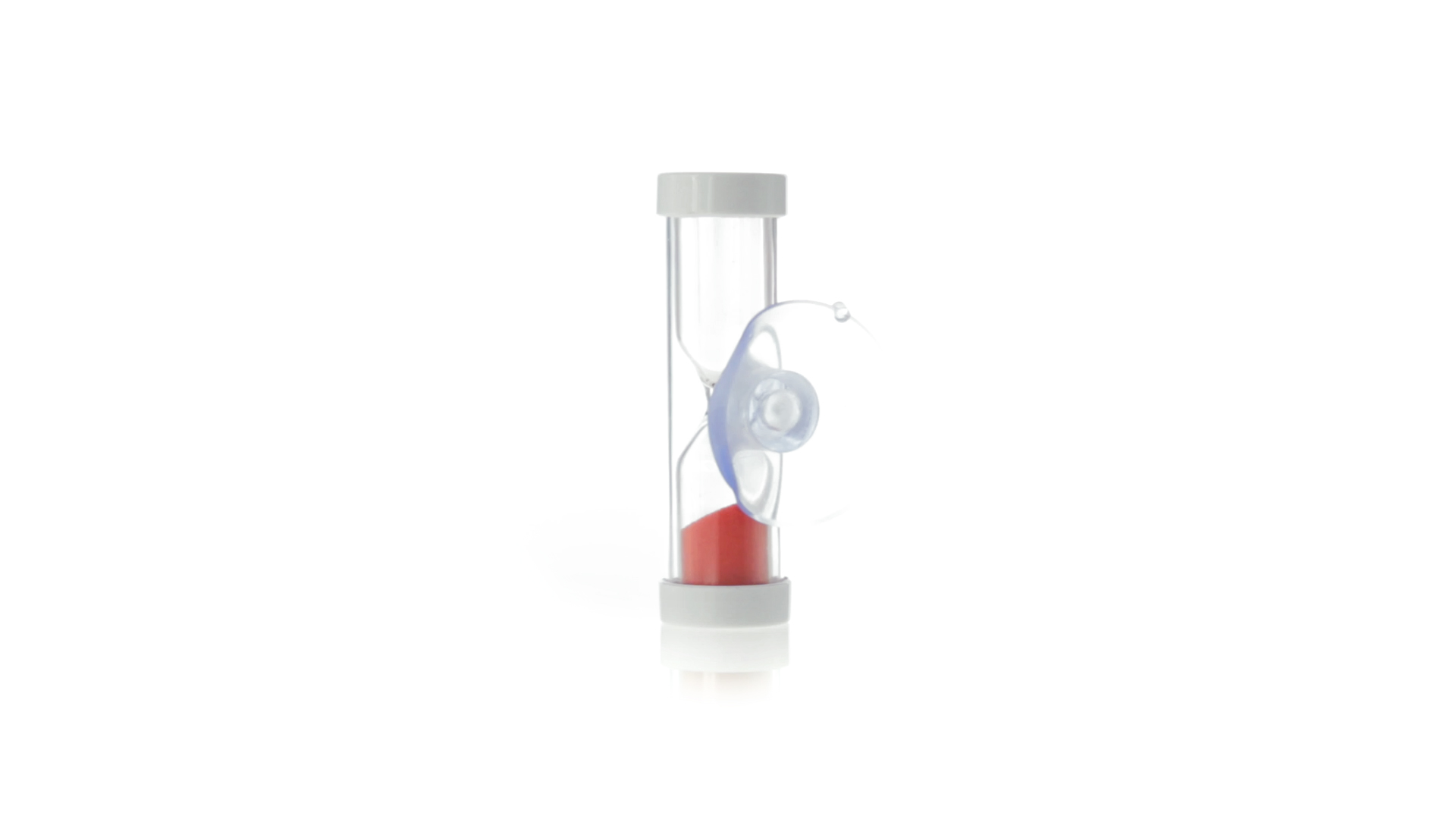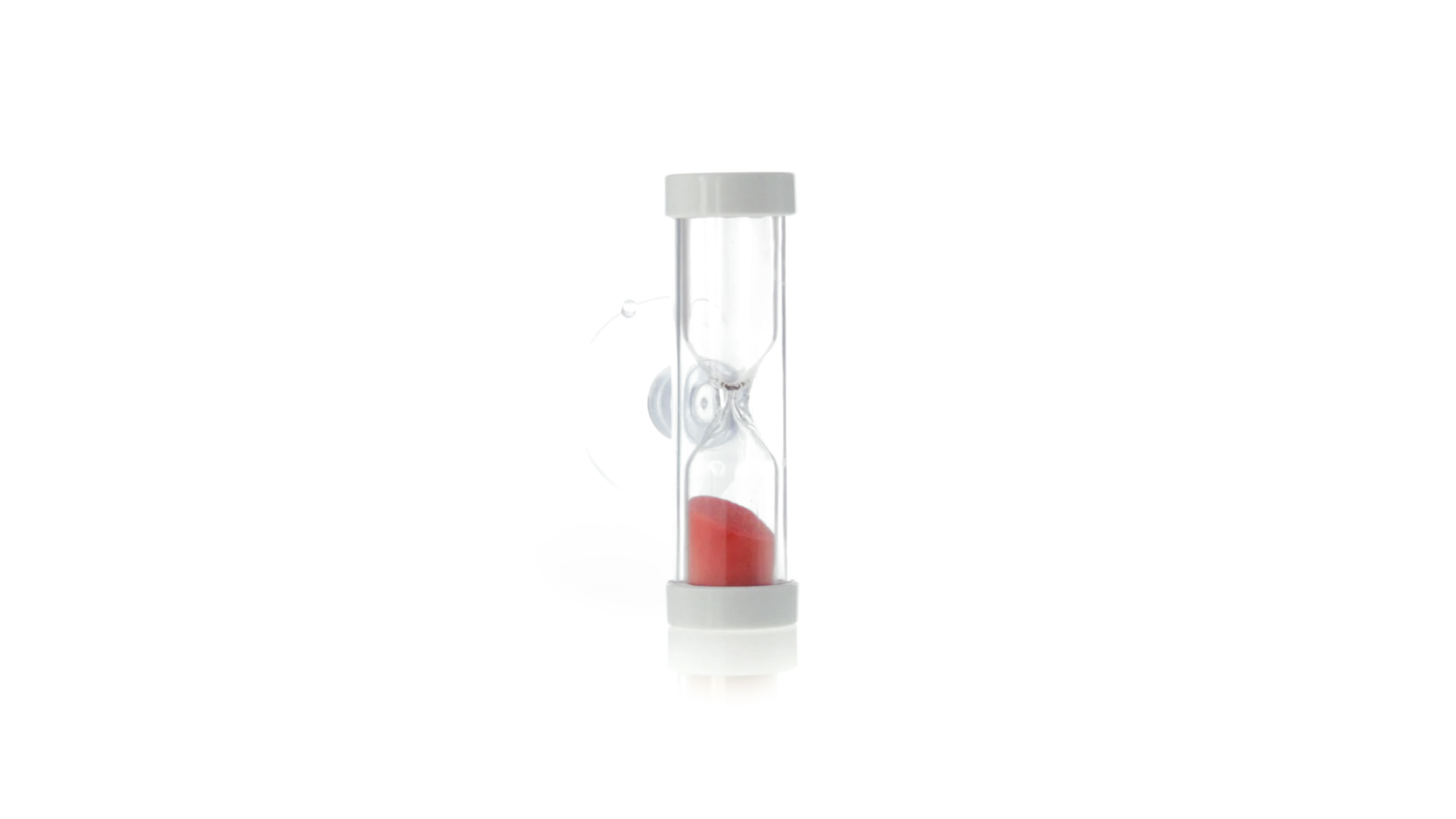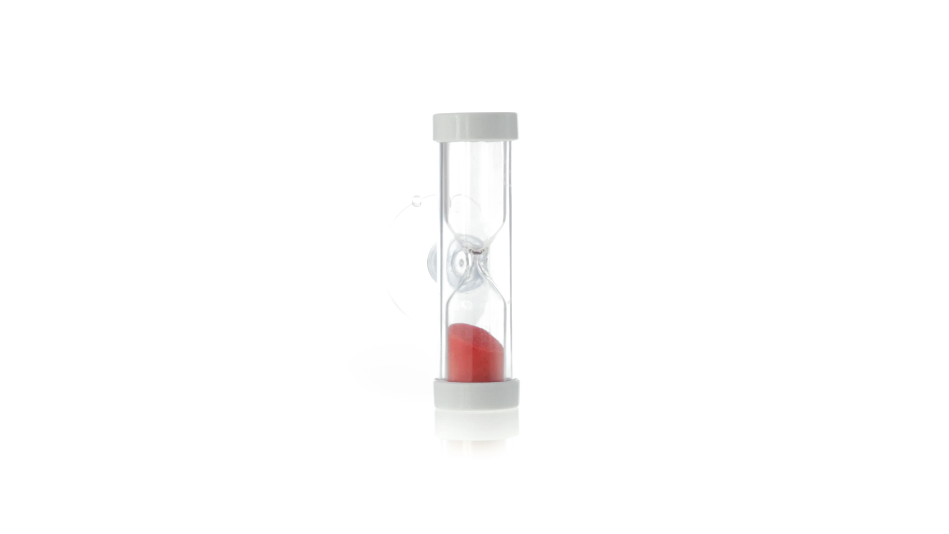 2-Minuten-Sanduhr - speziell entwickelt, um die Putzzeit der Zähne abzulesen. Mit integriertem Saugnapf mit hoher Haftkraft.