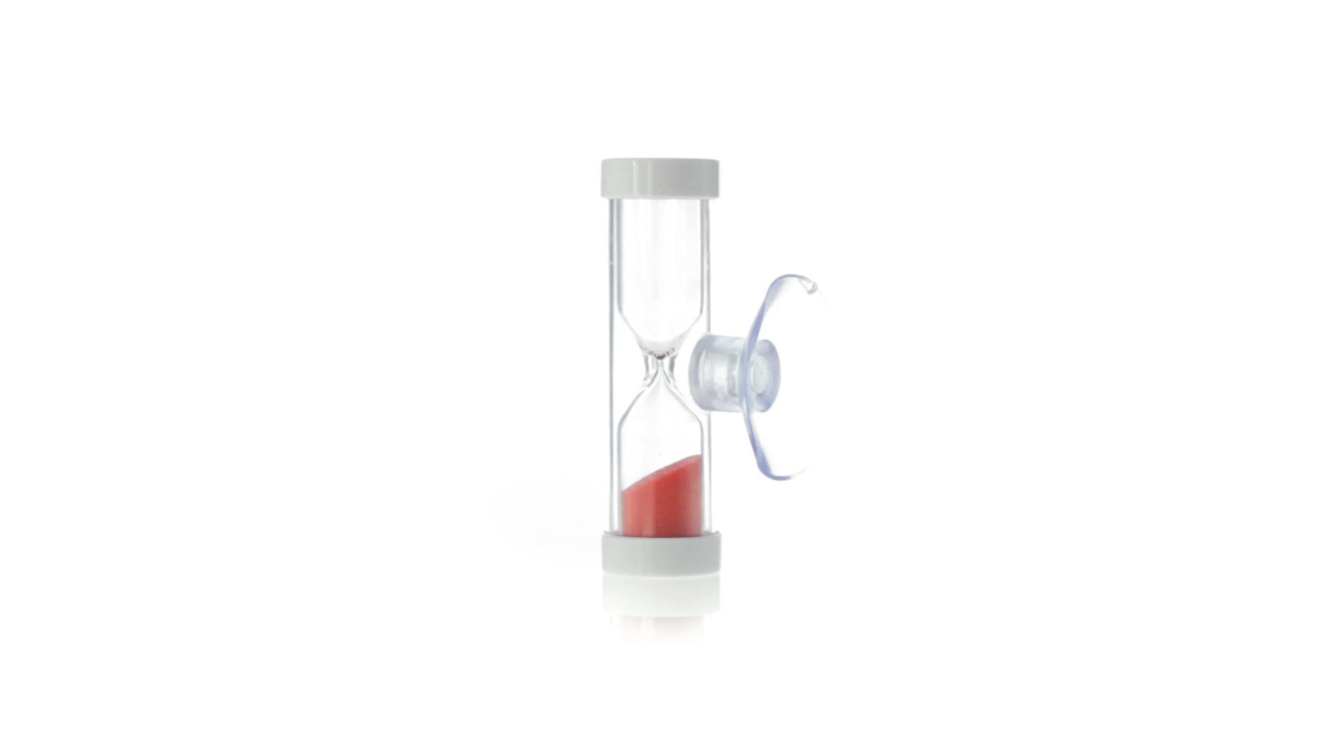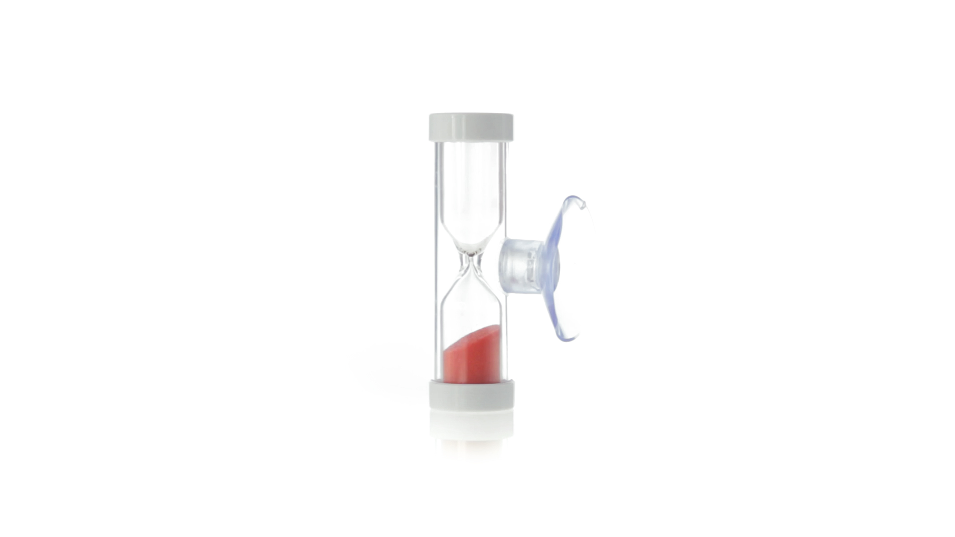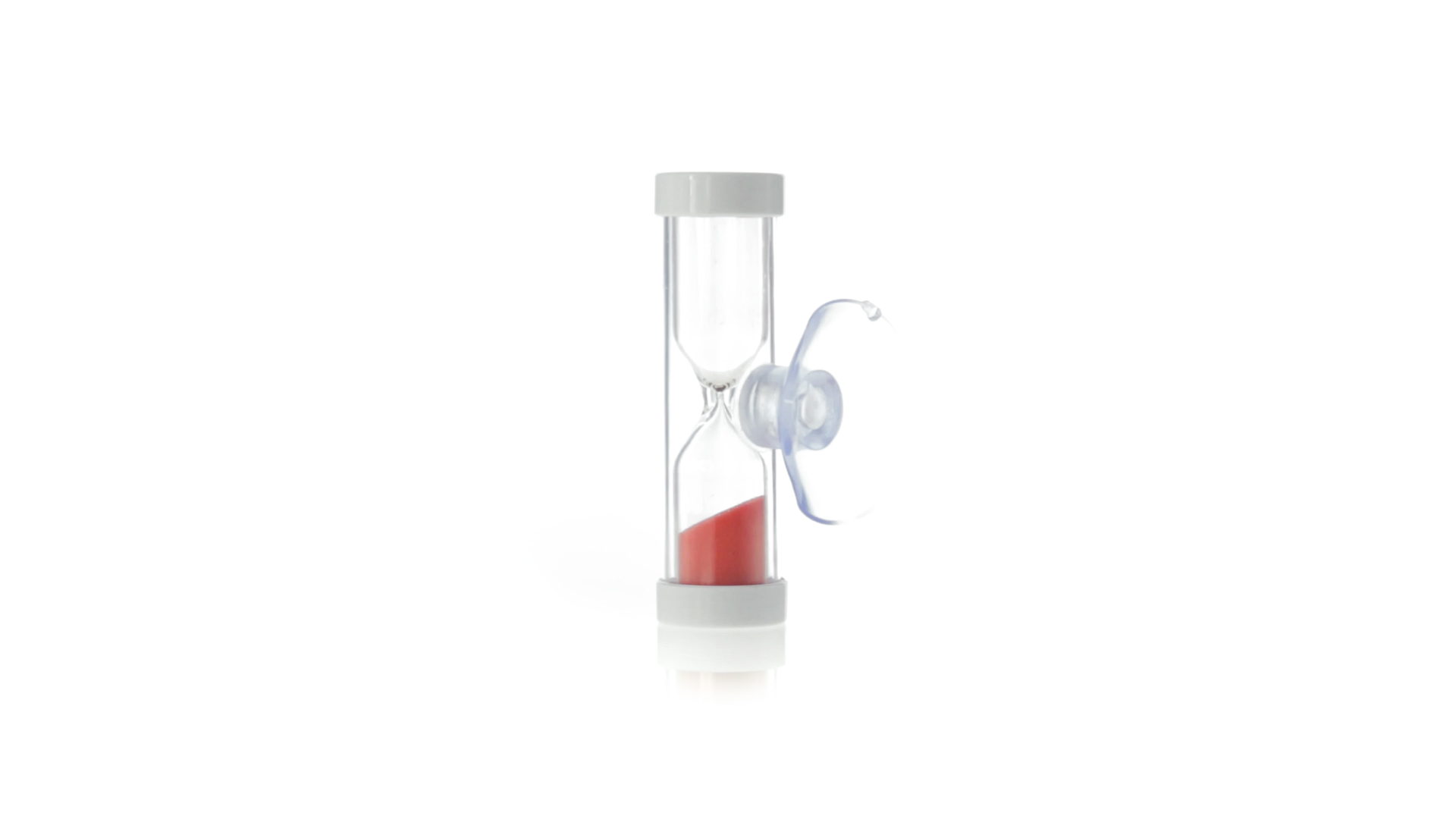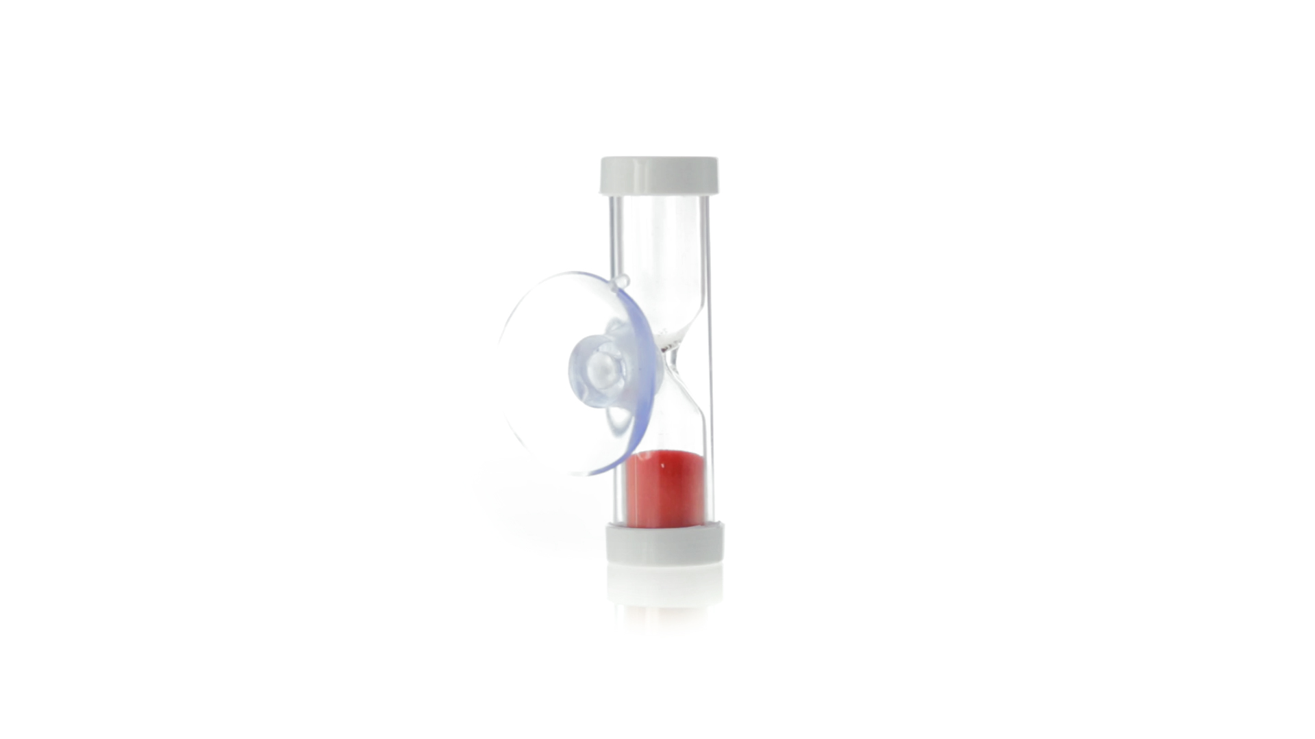 2-Minuten-Sanduhr - speziell entwickelt, um die Putzzeit der Zähne abzulesen. Mit integriertem Saugnapf mit hoher Haftkraft.