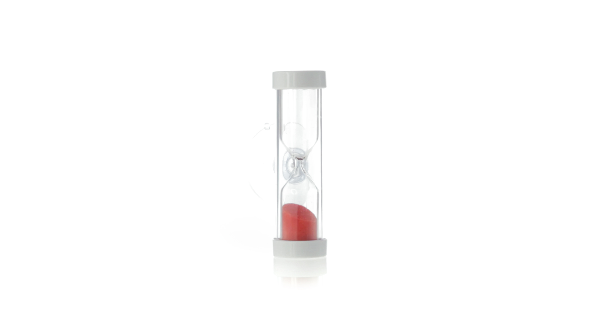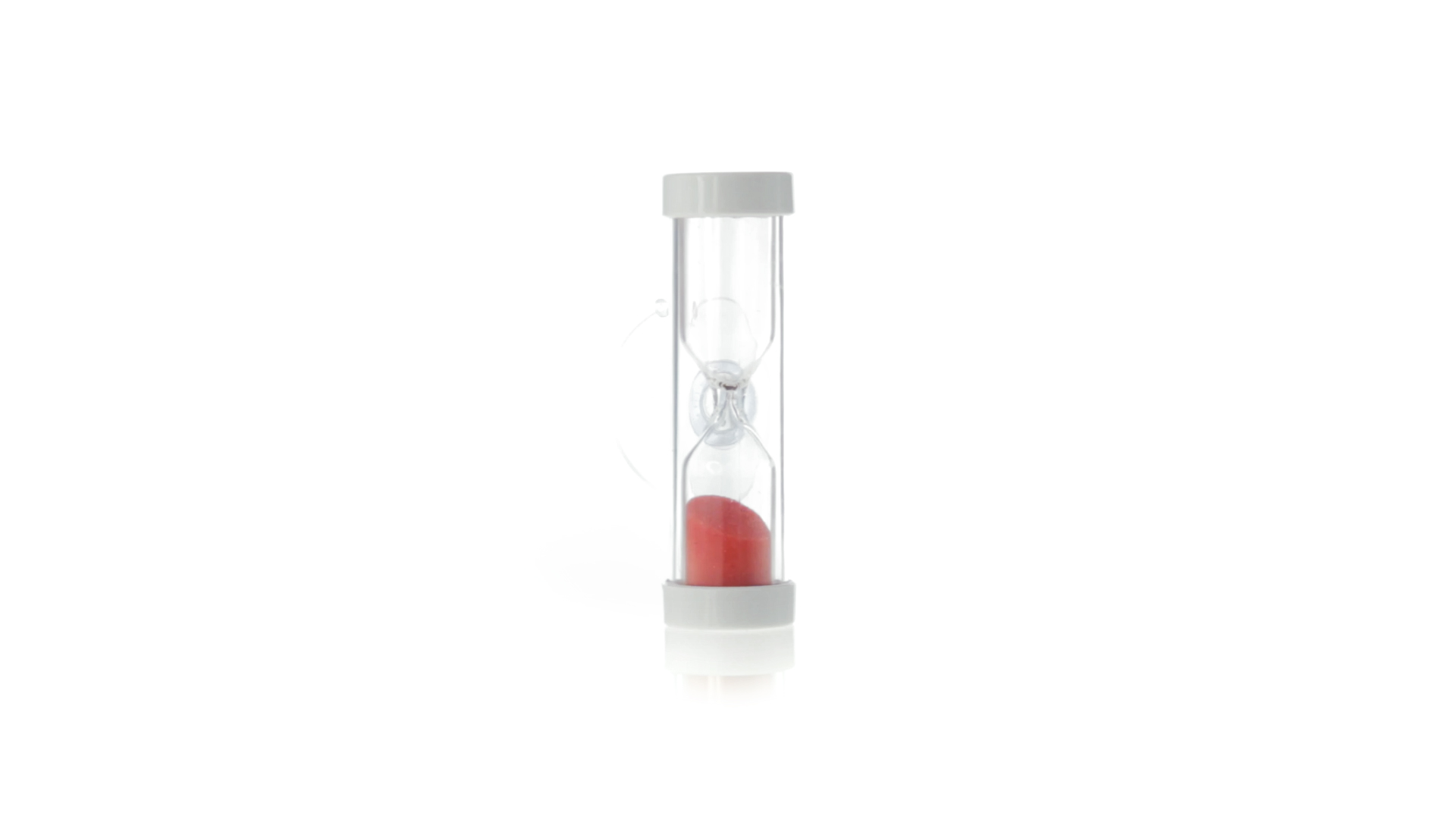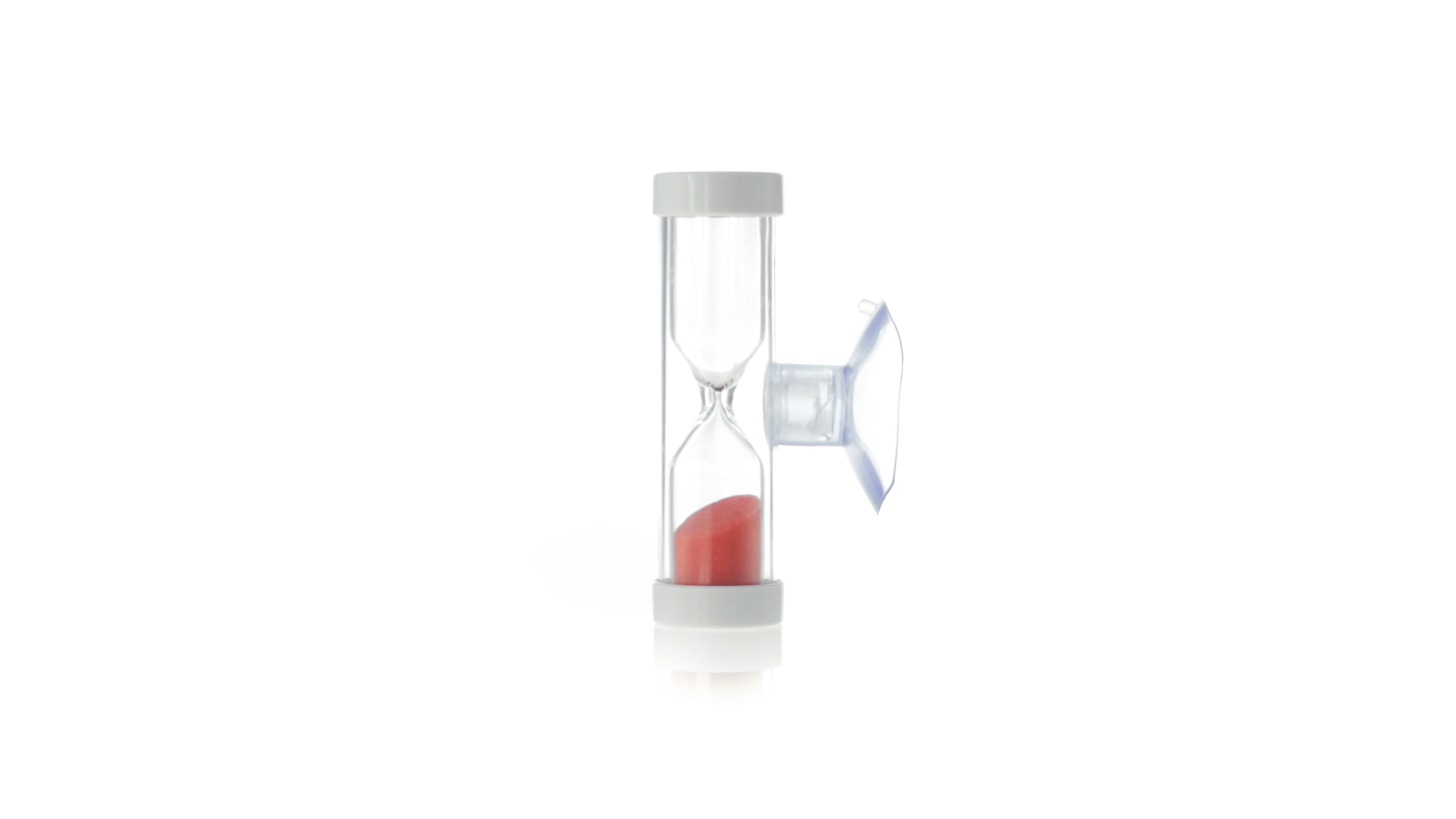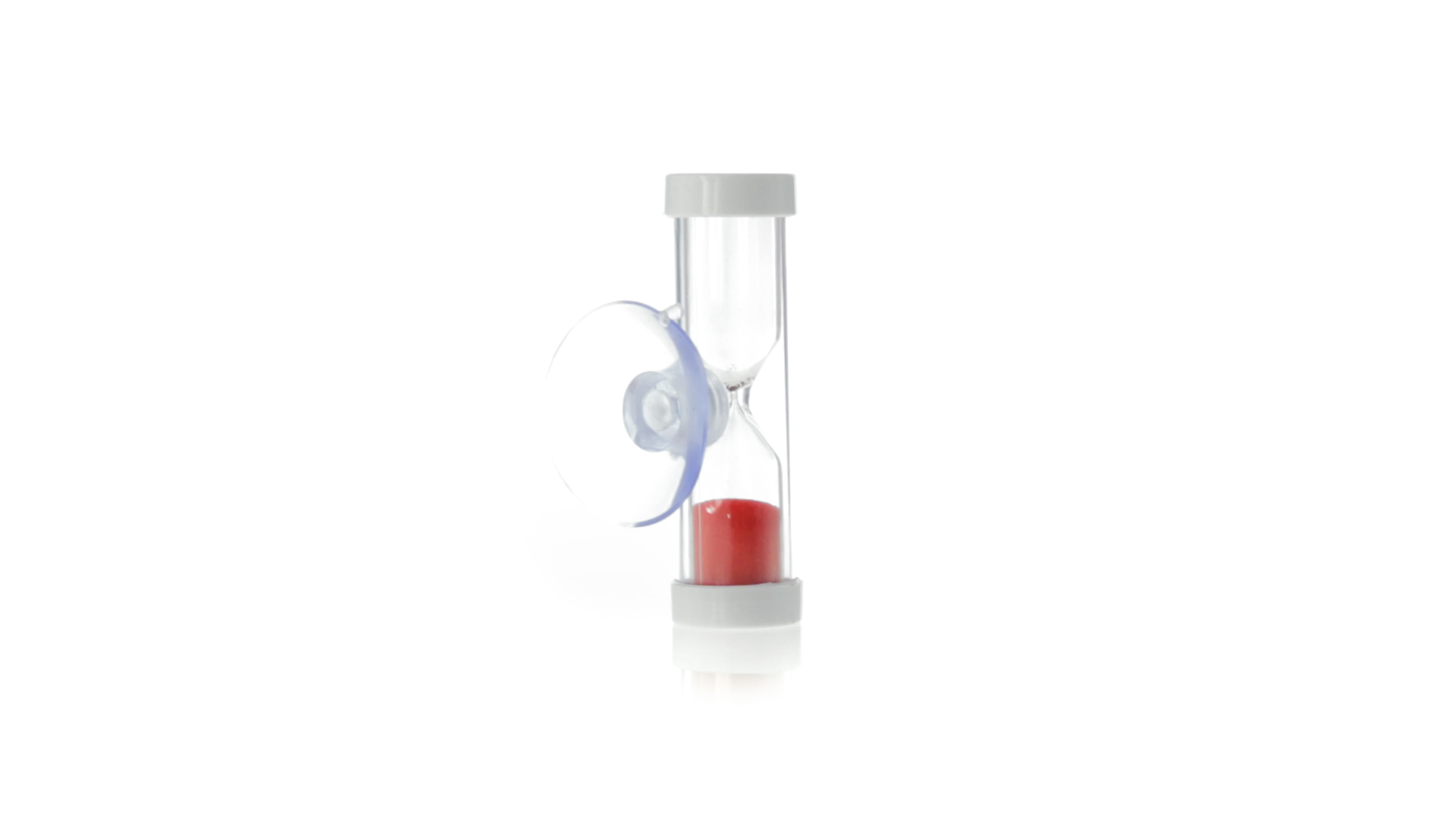 2-Minuten-Sanduhr - speziell entwickelt, um die Putzzeit der Zähne abzulesen. Mit integriertem Saugnapf mit hoher Haftkraft.