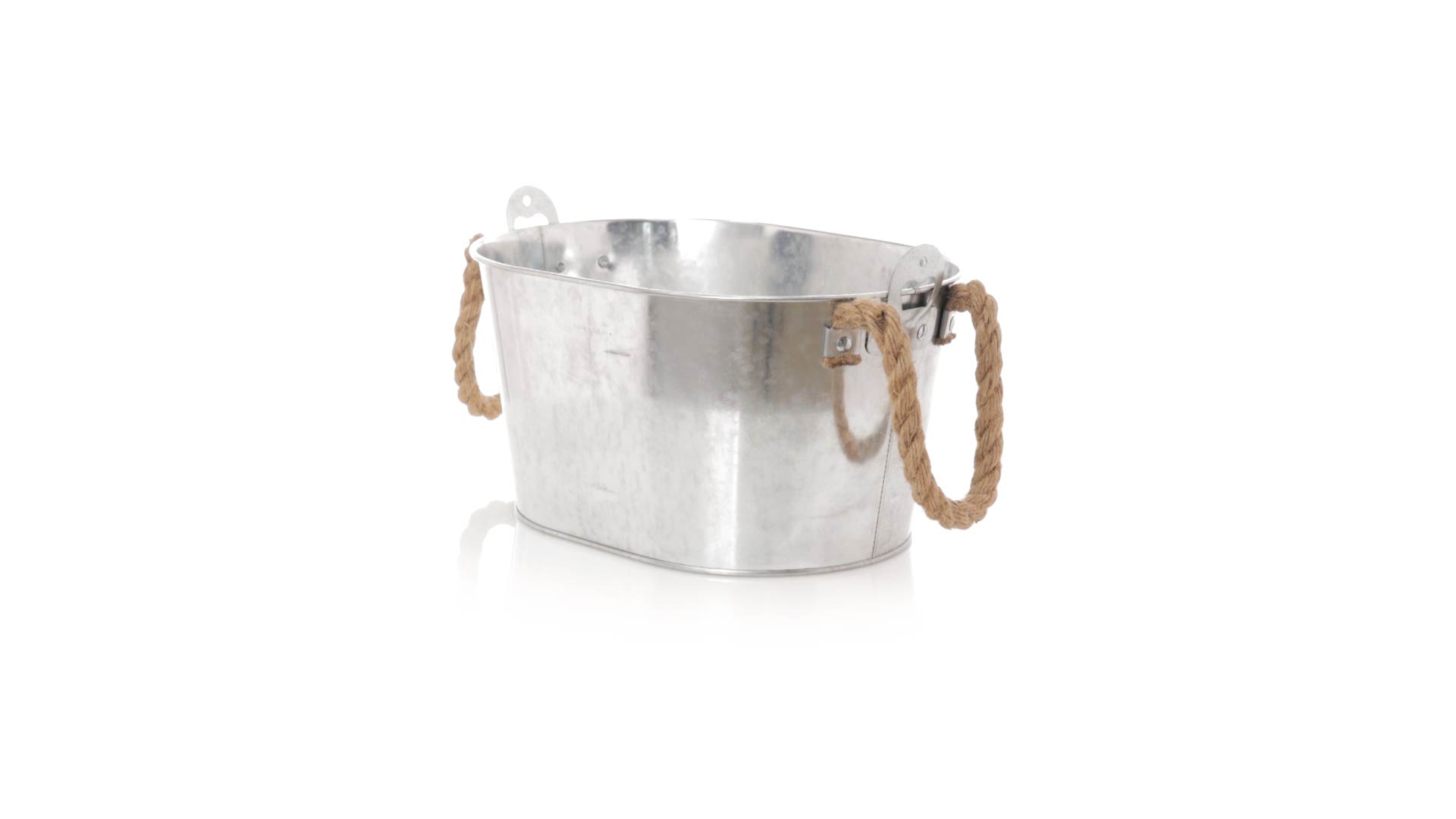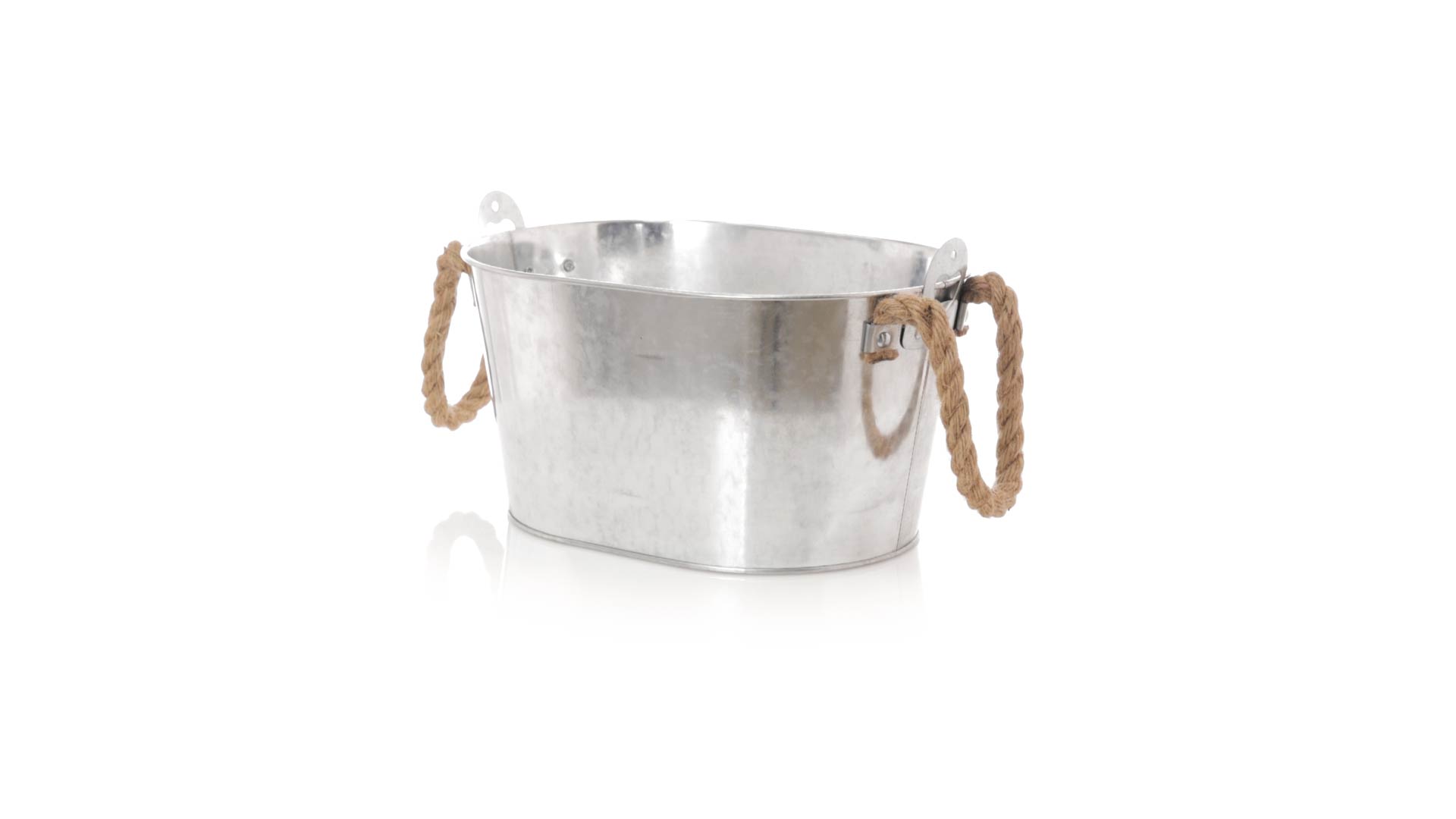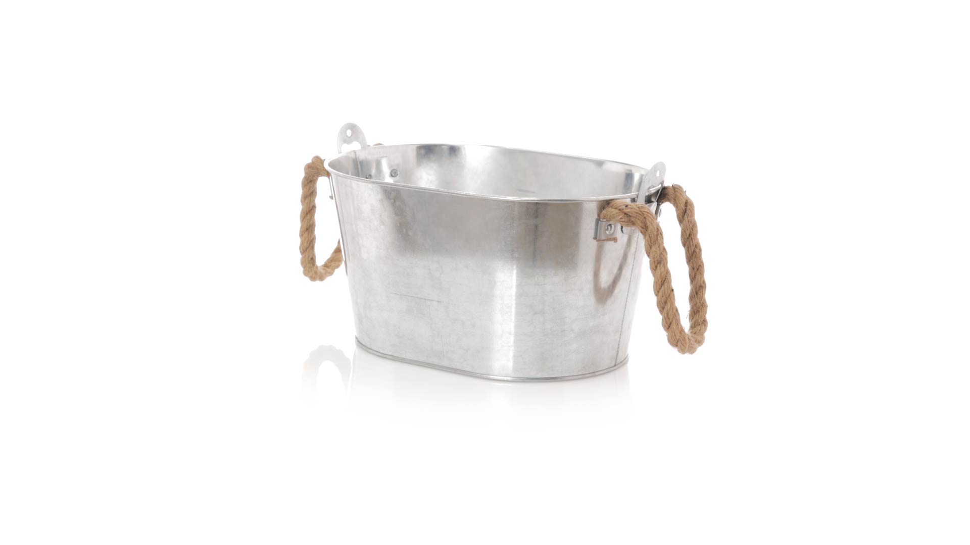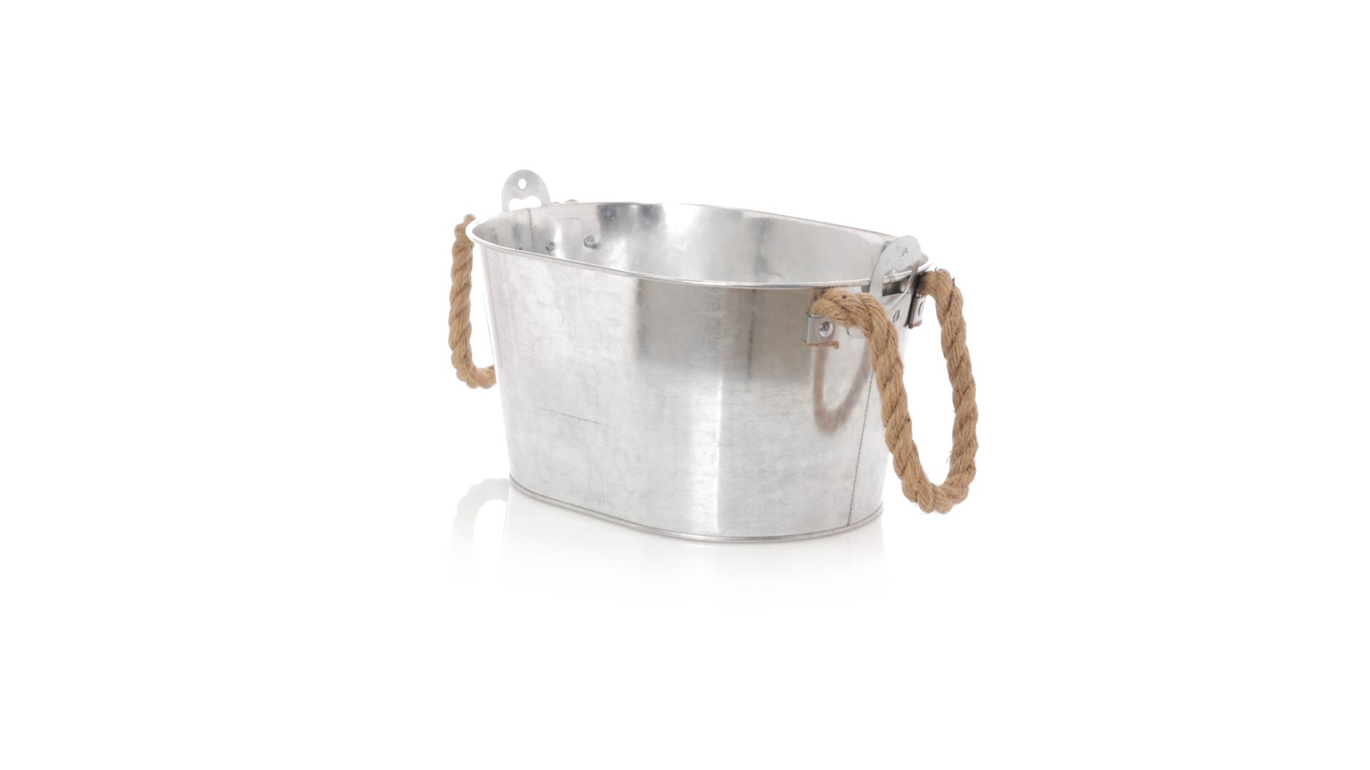 Toller Metalleimer mit 6l Fassungsvermögen zur Aufbewahrung von Kaltgetränken. Perfekte Kombination aus Stil und Funktionalität, mit festen Öffnern an beiden Enden und grossem Fassungsvermögen. Robustes Design mit Seilgriffen für einfachen Transport.