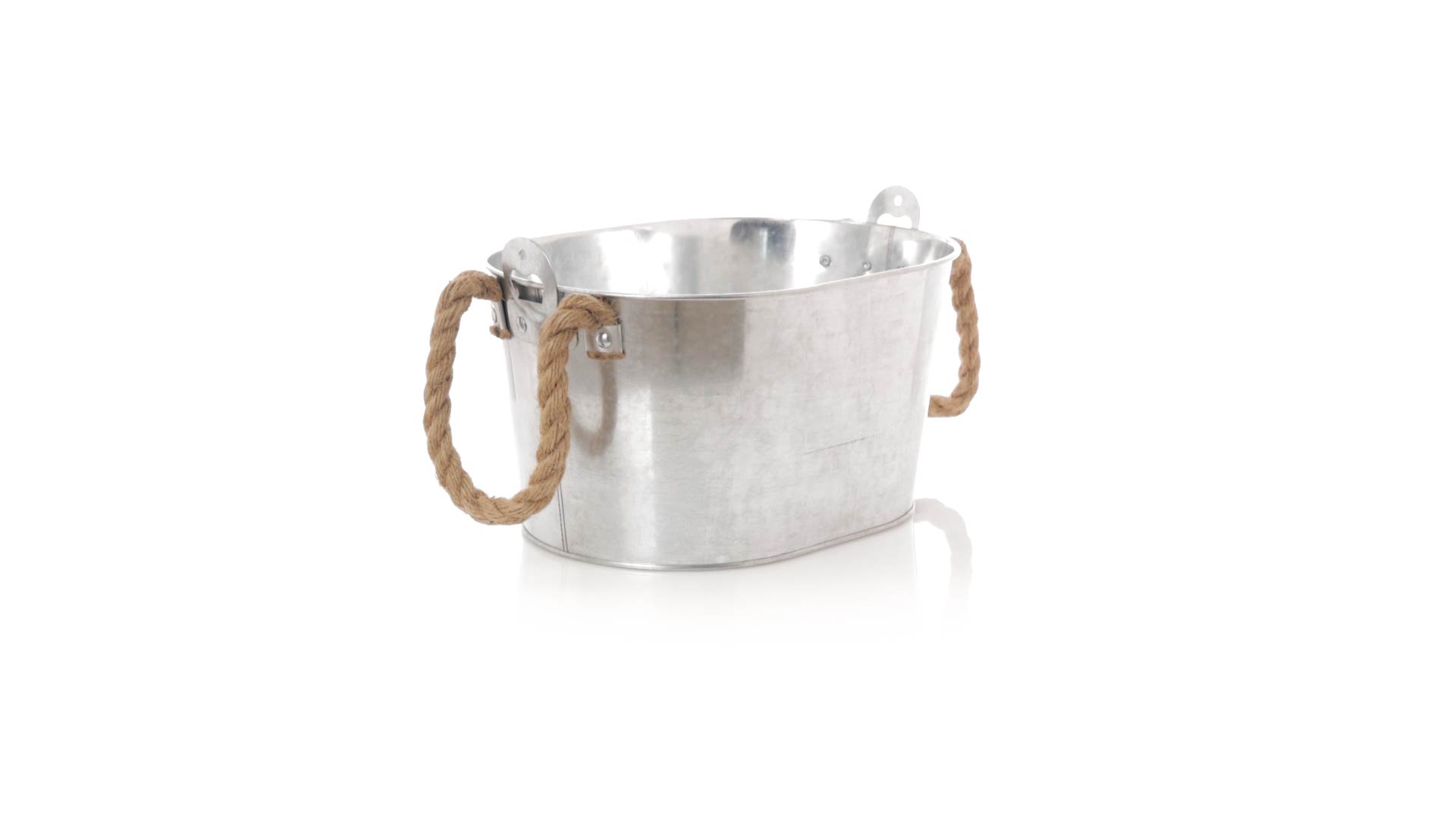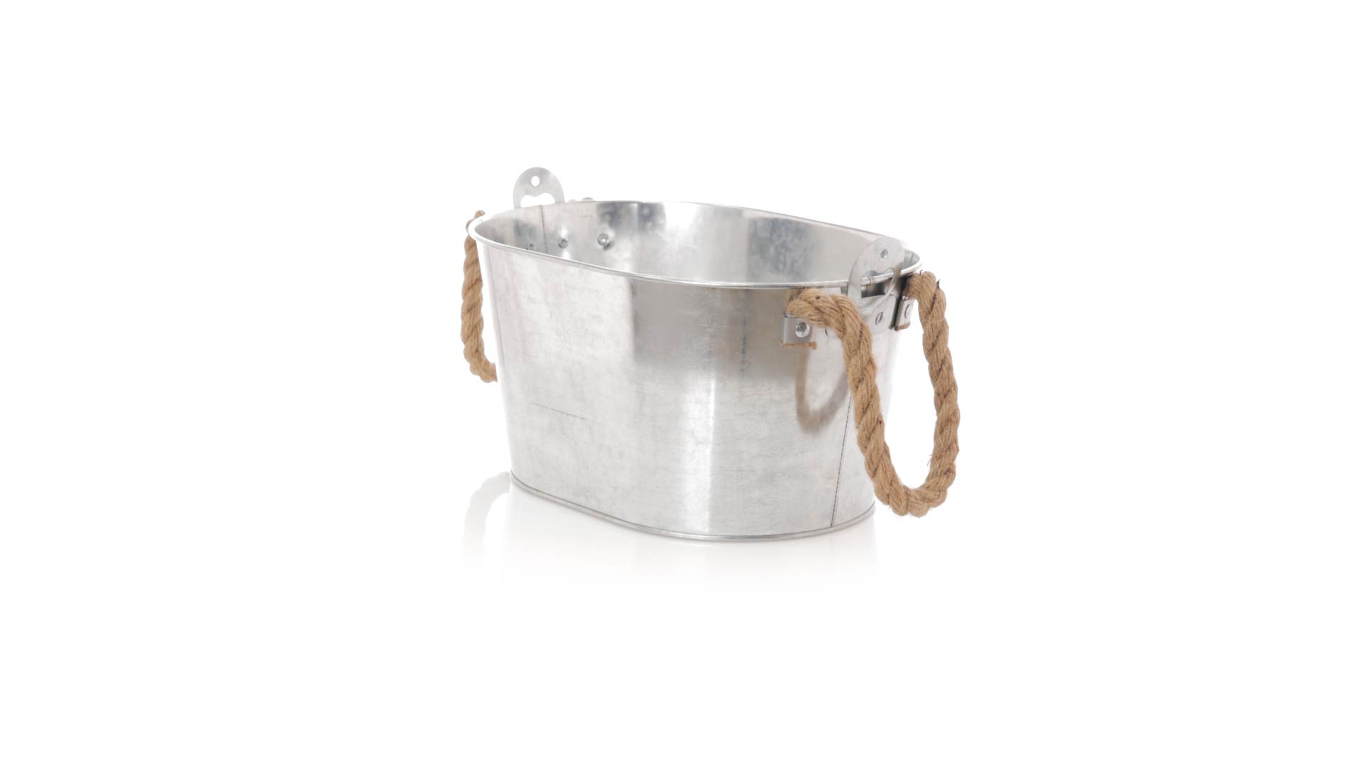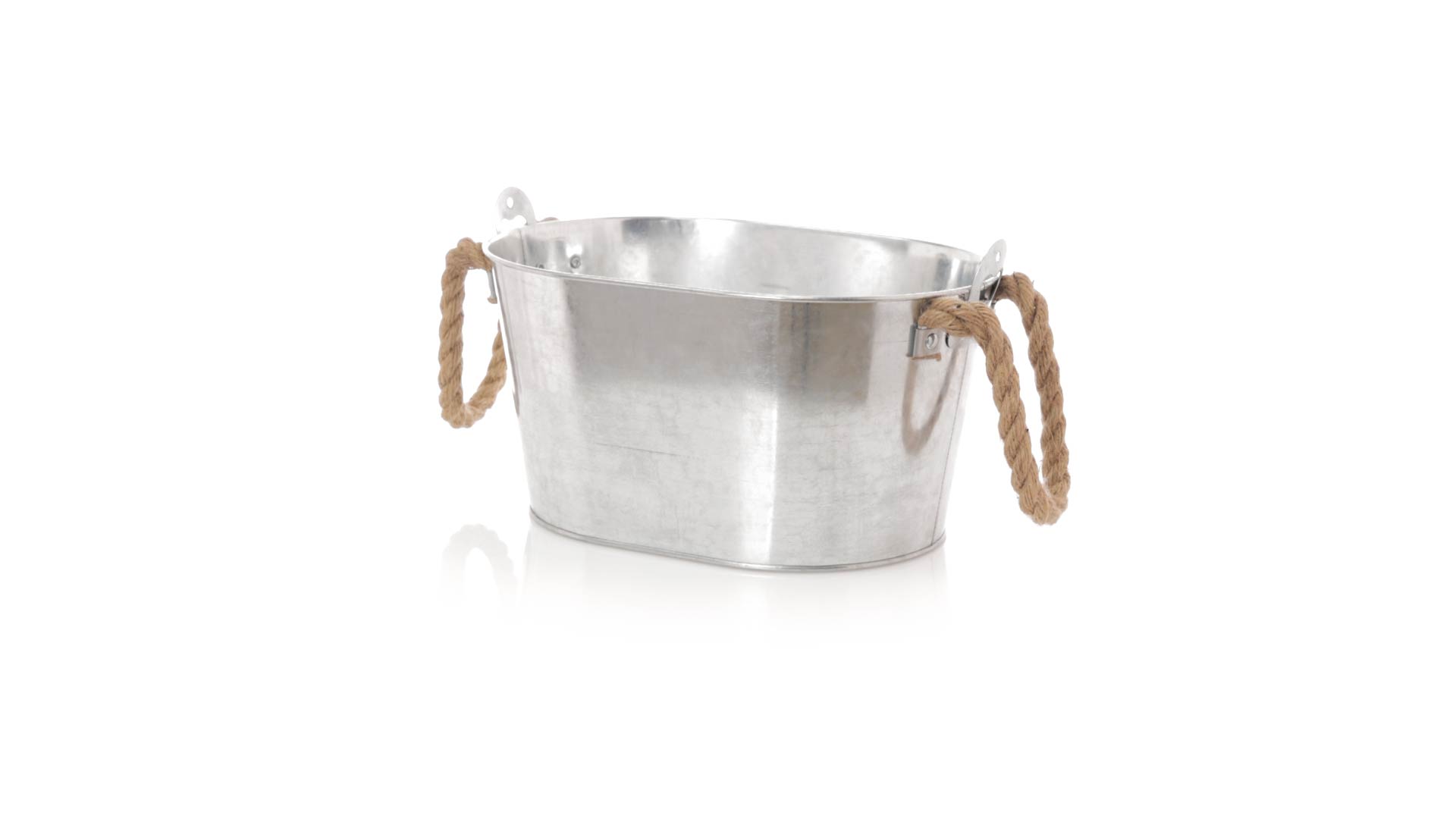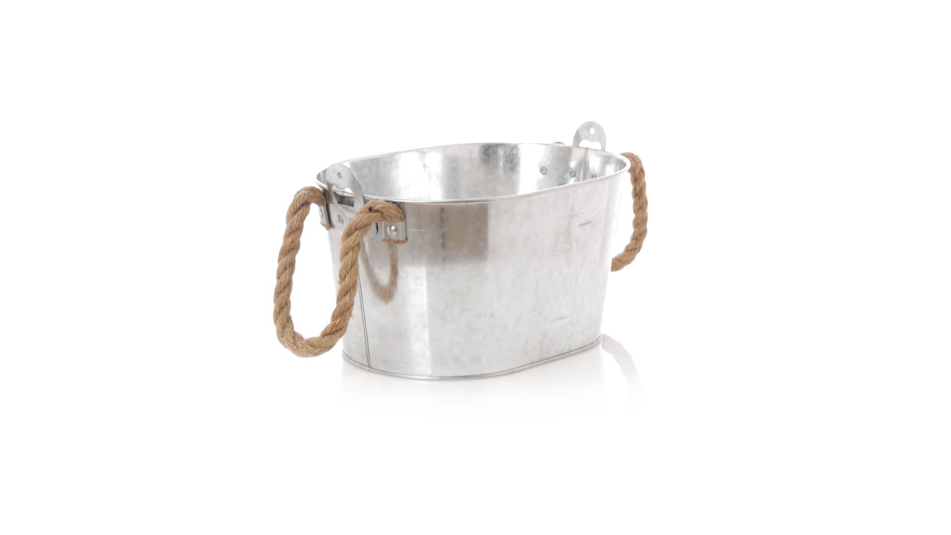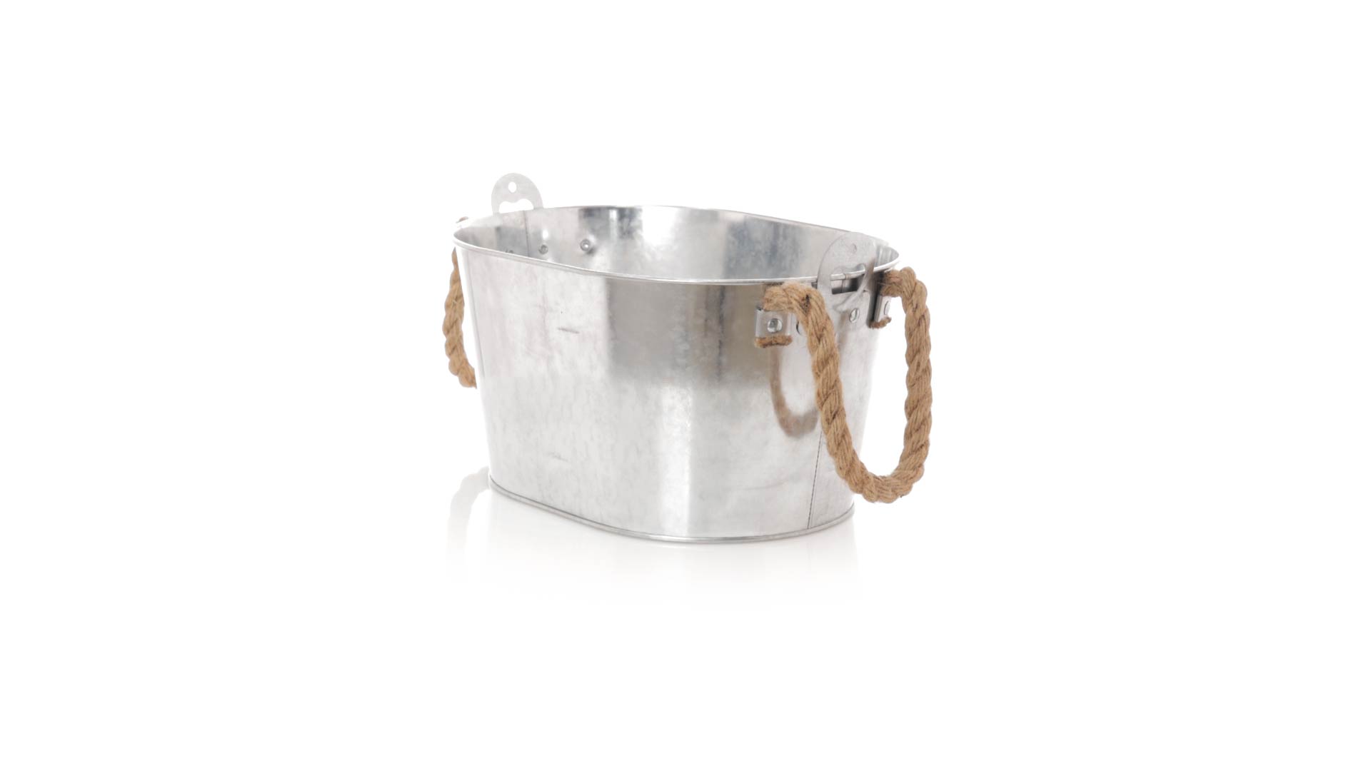 Toller Metalleimer mit 6l Fassungsvermögen zur Aufbewahrung von Kaltgetränken. Perfekte Kombination aus Stil und Funktionalität, mit festen Öffnern an beiden Enden und grossem Fassungsvermögen. Robustes Design mit Seilgriffen für einfachen Transport.
