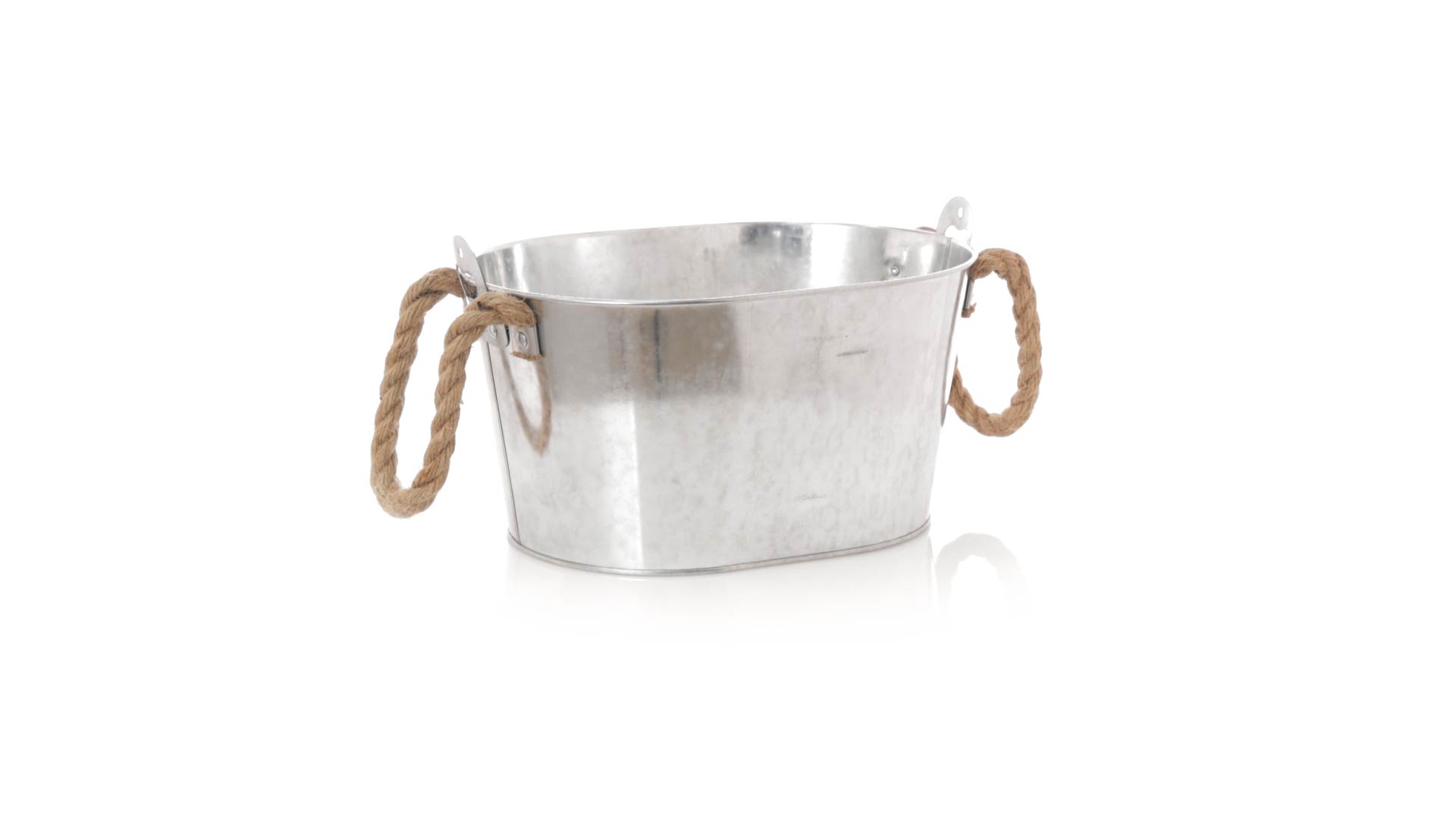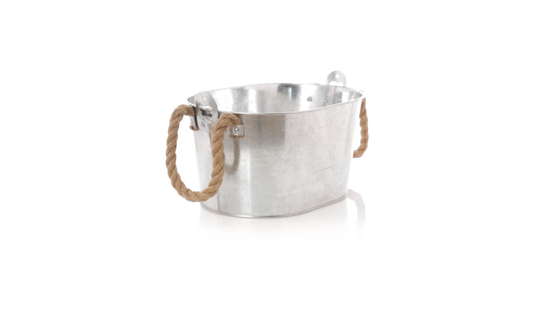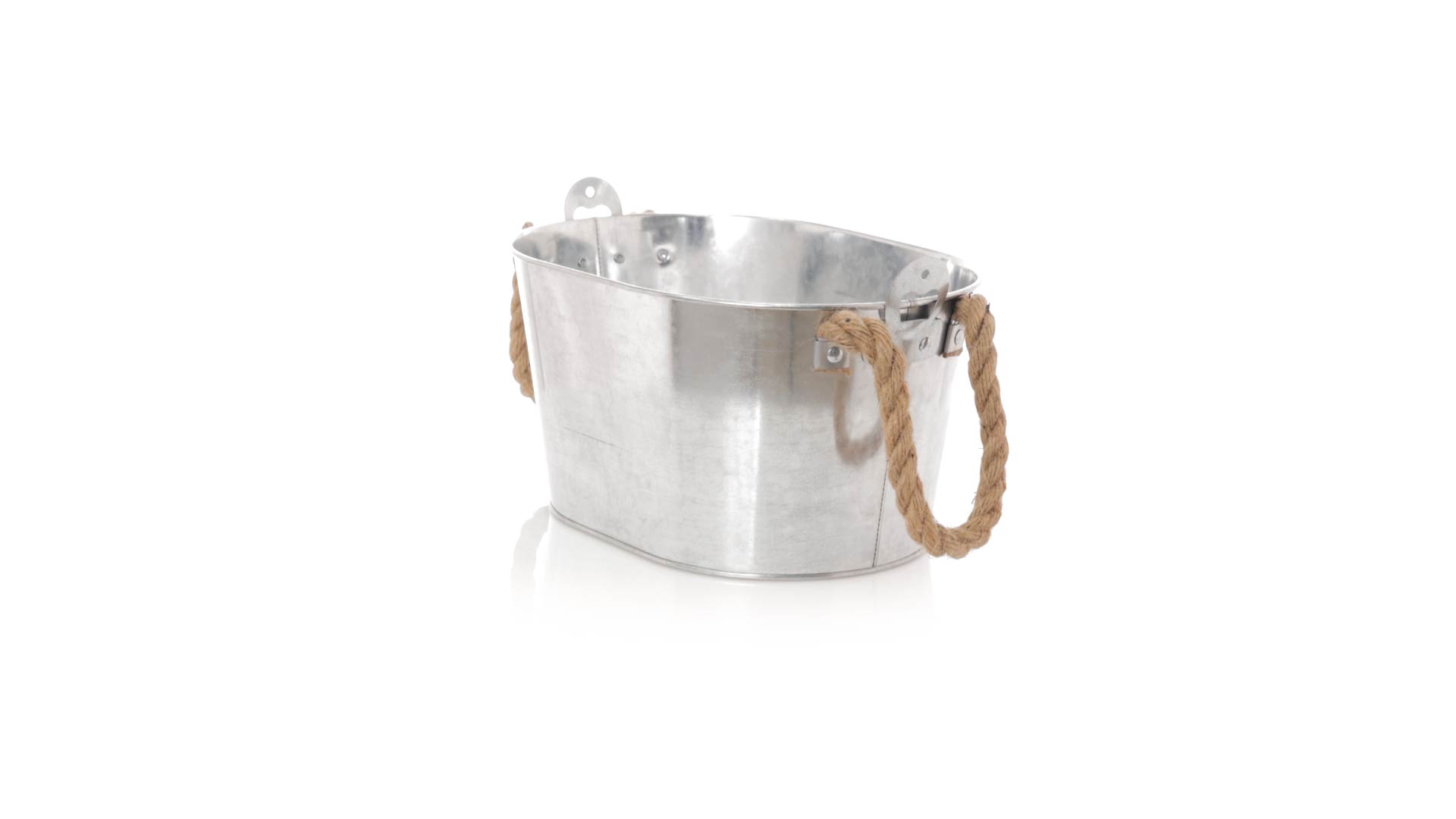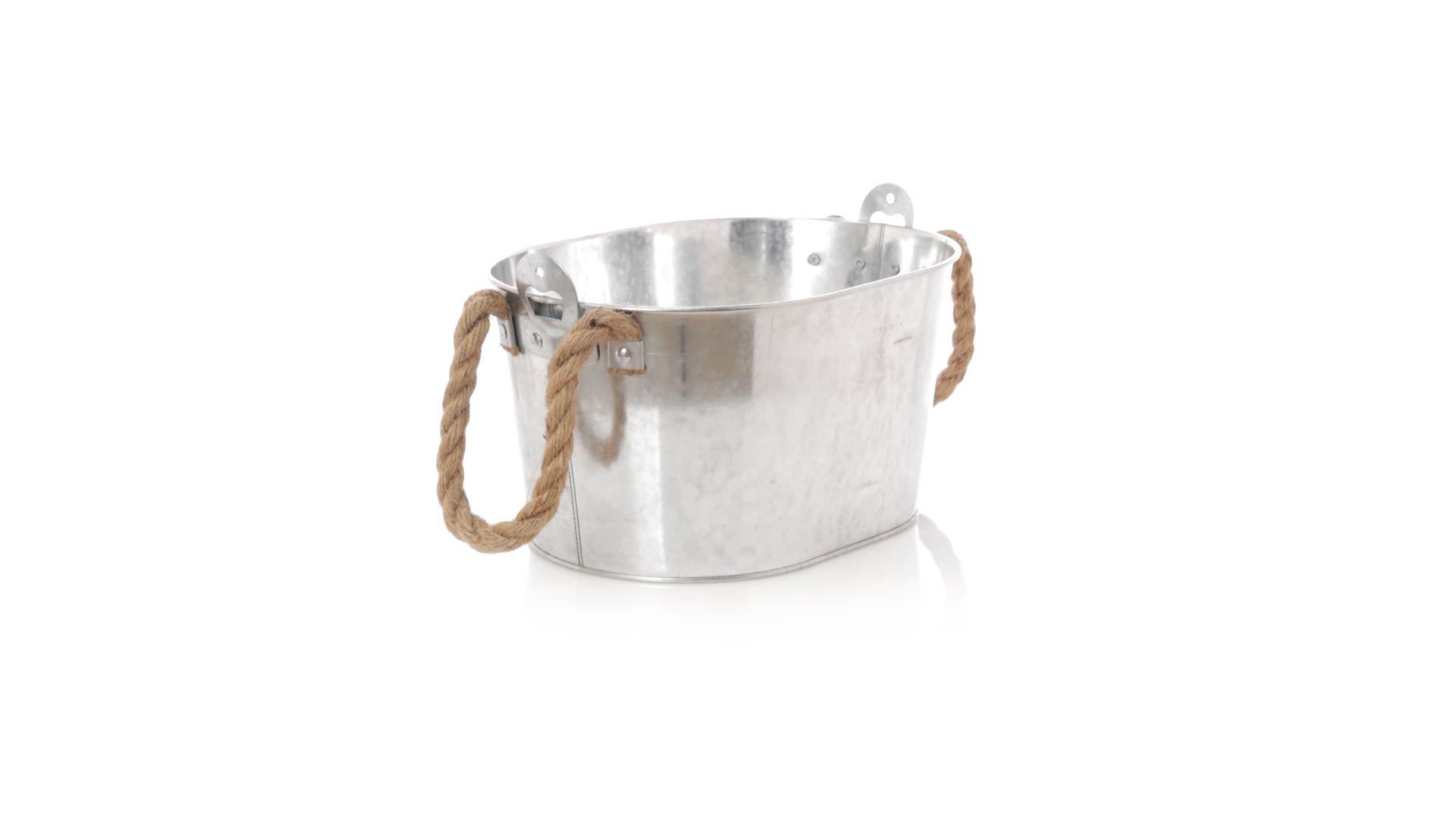 Toller Metalleimer mit 6l Fassungsvermögen zur Aufbewahrung von Kaltgetränken. Perfekte Kombination aus Stil und Funktionalität, mit festen Öffnern an beiden Enden und grossem Fassungsvermögen. Robustes Design mit Seilgriffen für einfachen Transport.