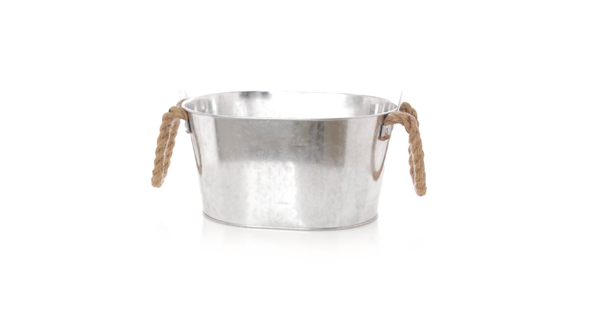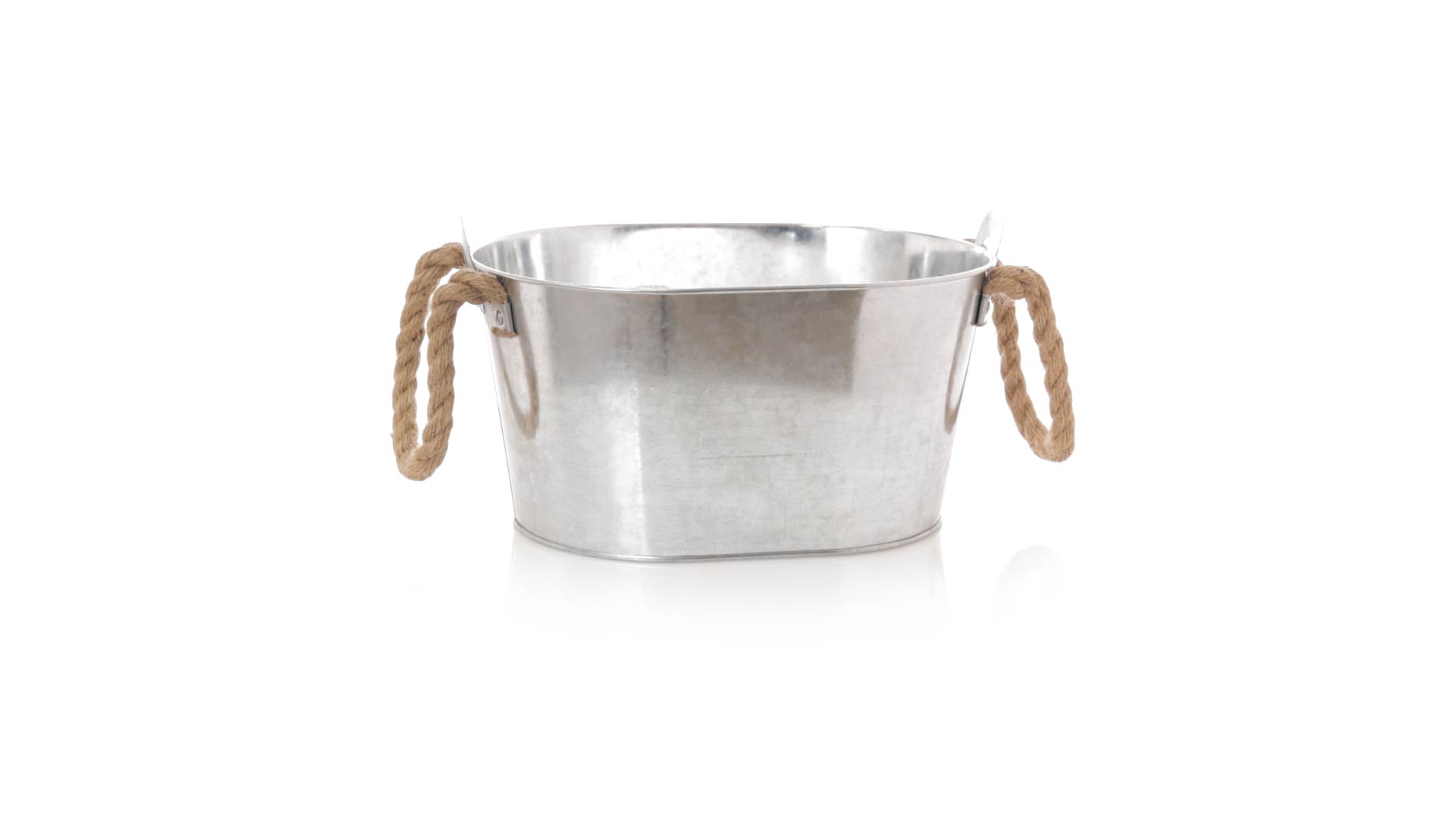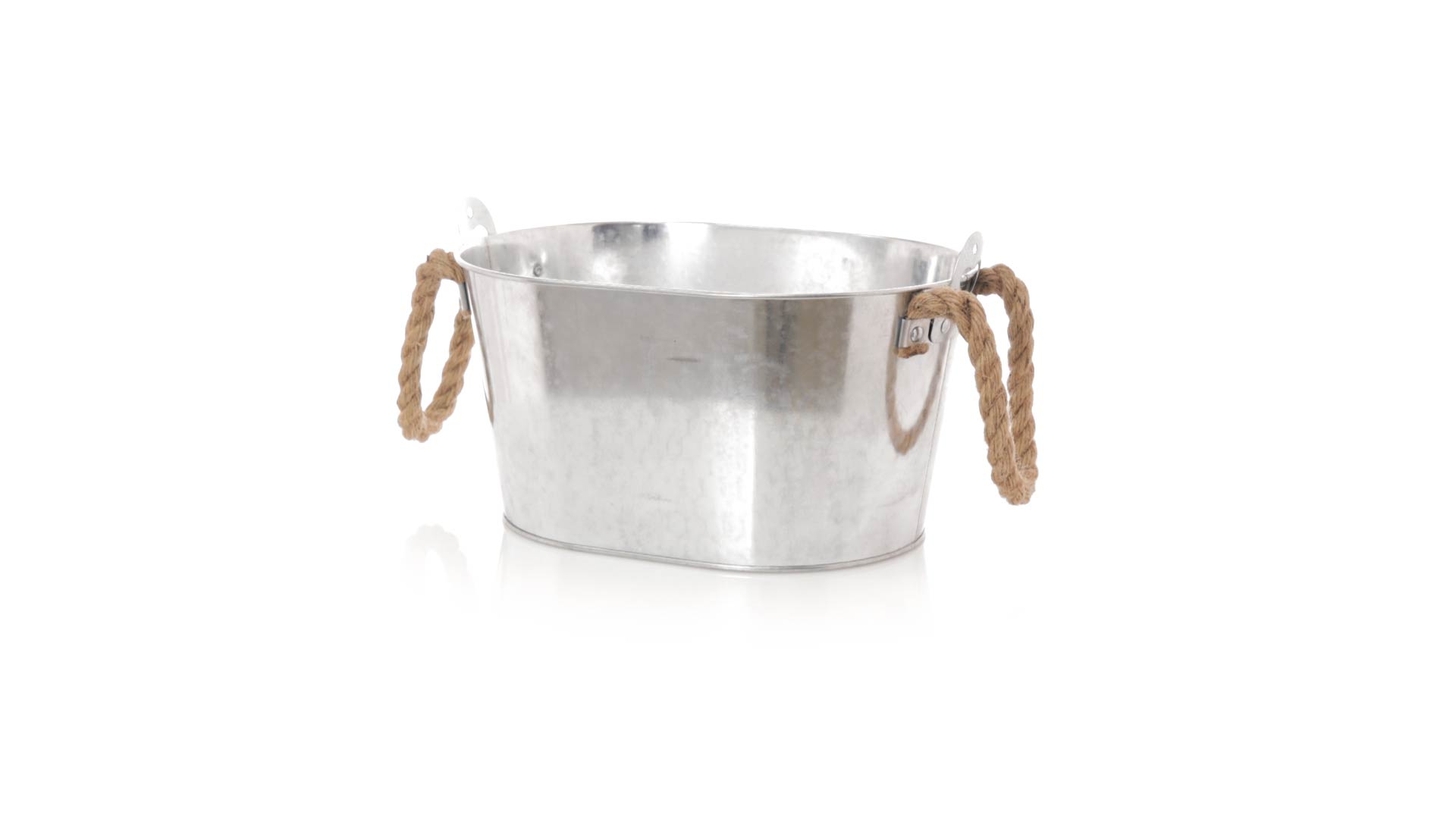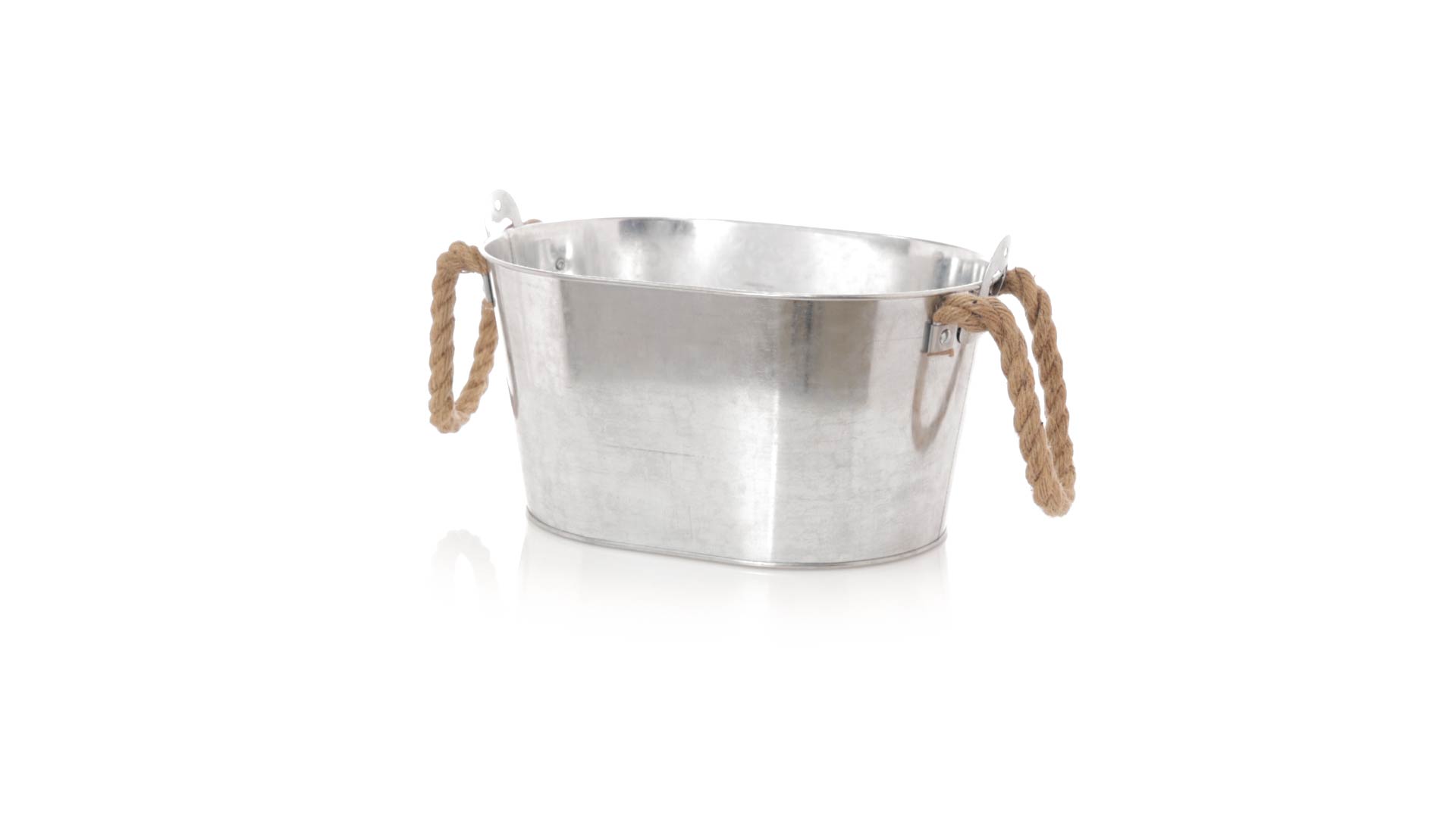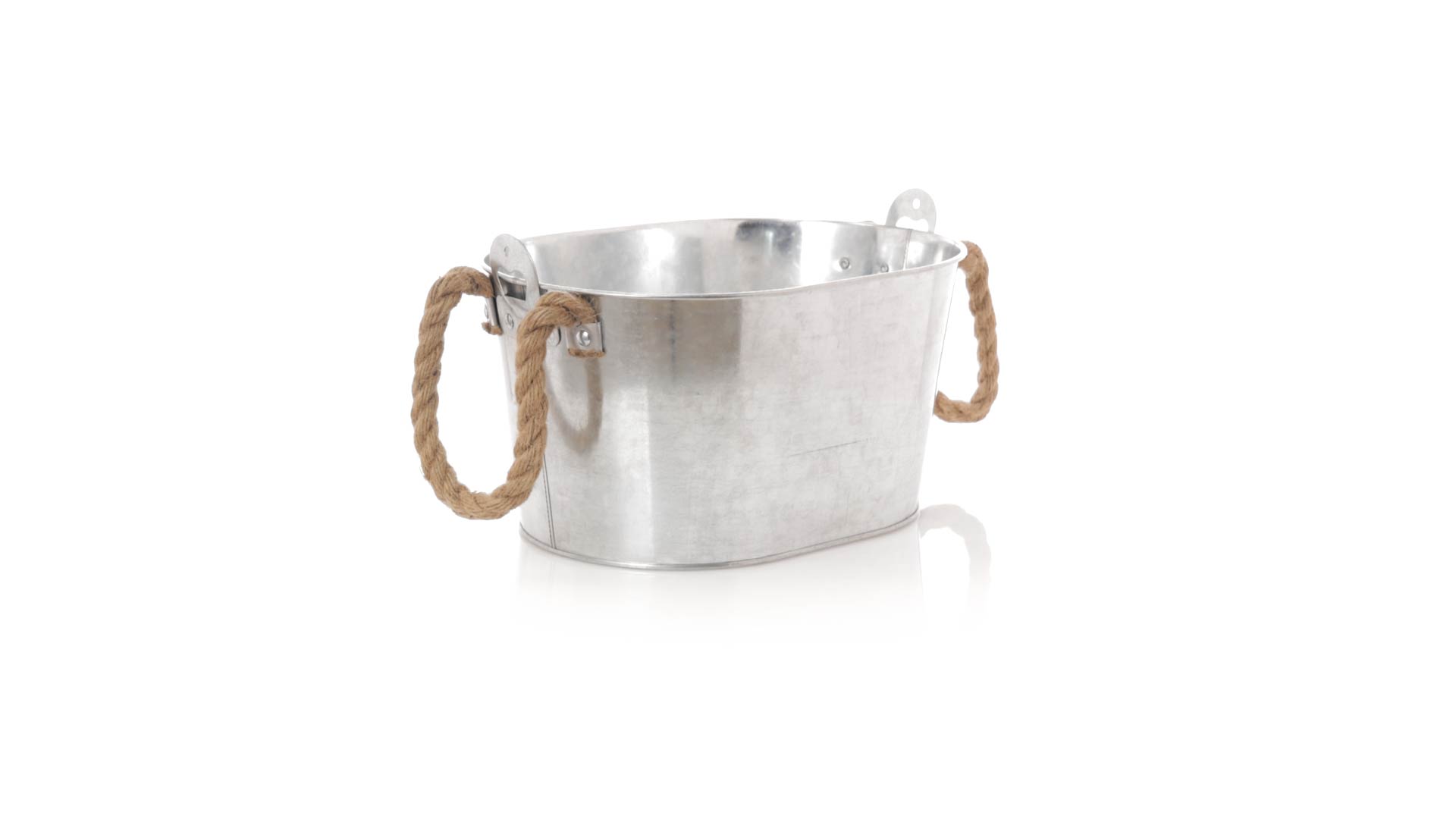 Toller Metalleimer mit 6l Fassungsvermögen zur Aufbewahrung von Kaltgetränken. Perfekte Kombination aus Stil und Funktionalität, mit festen Öffnern an beiden Enden und grossem Fassungsvermögen. Robustes Design mit Seilgriffen für einfachen Transport.