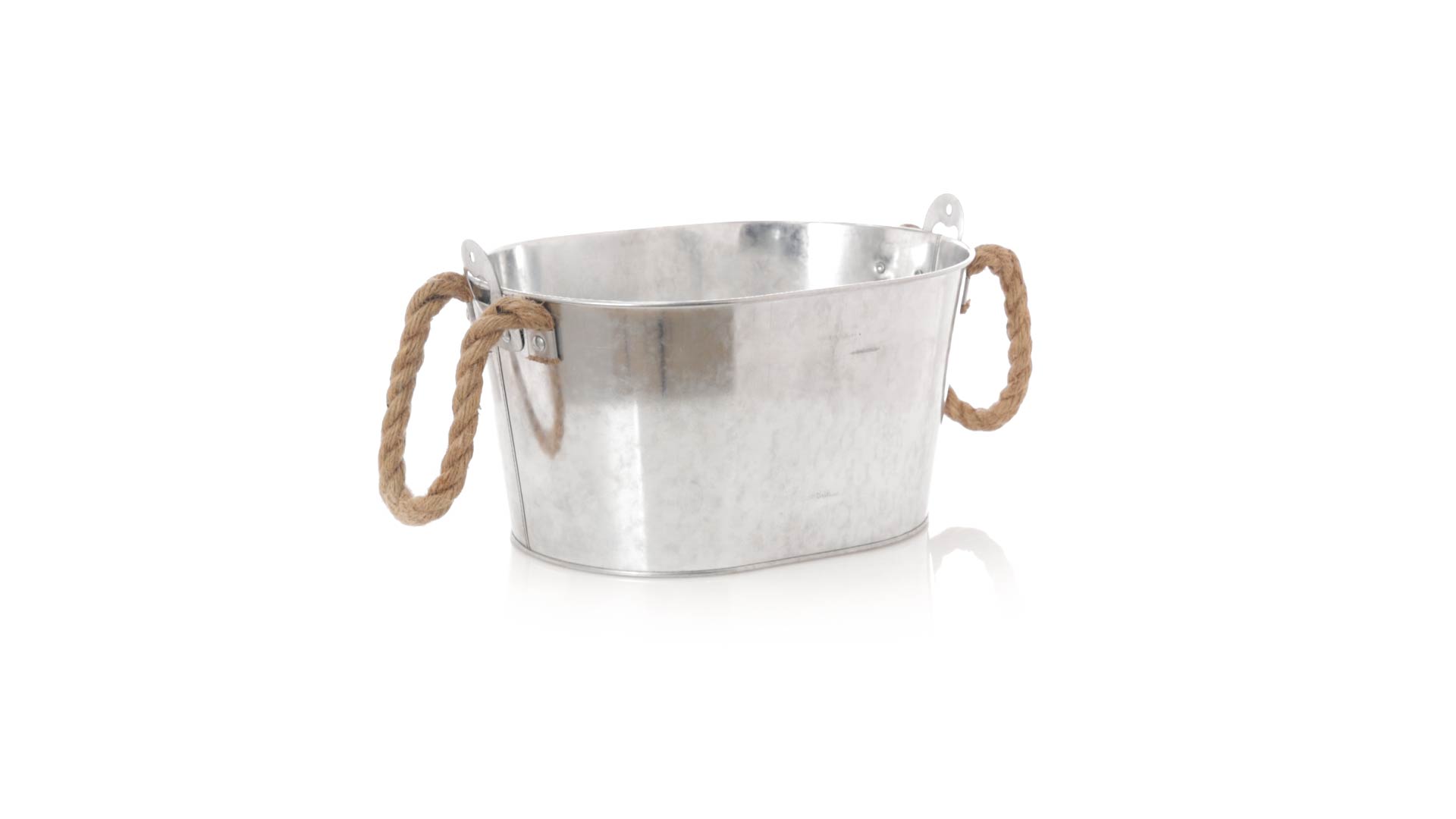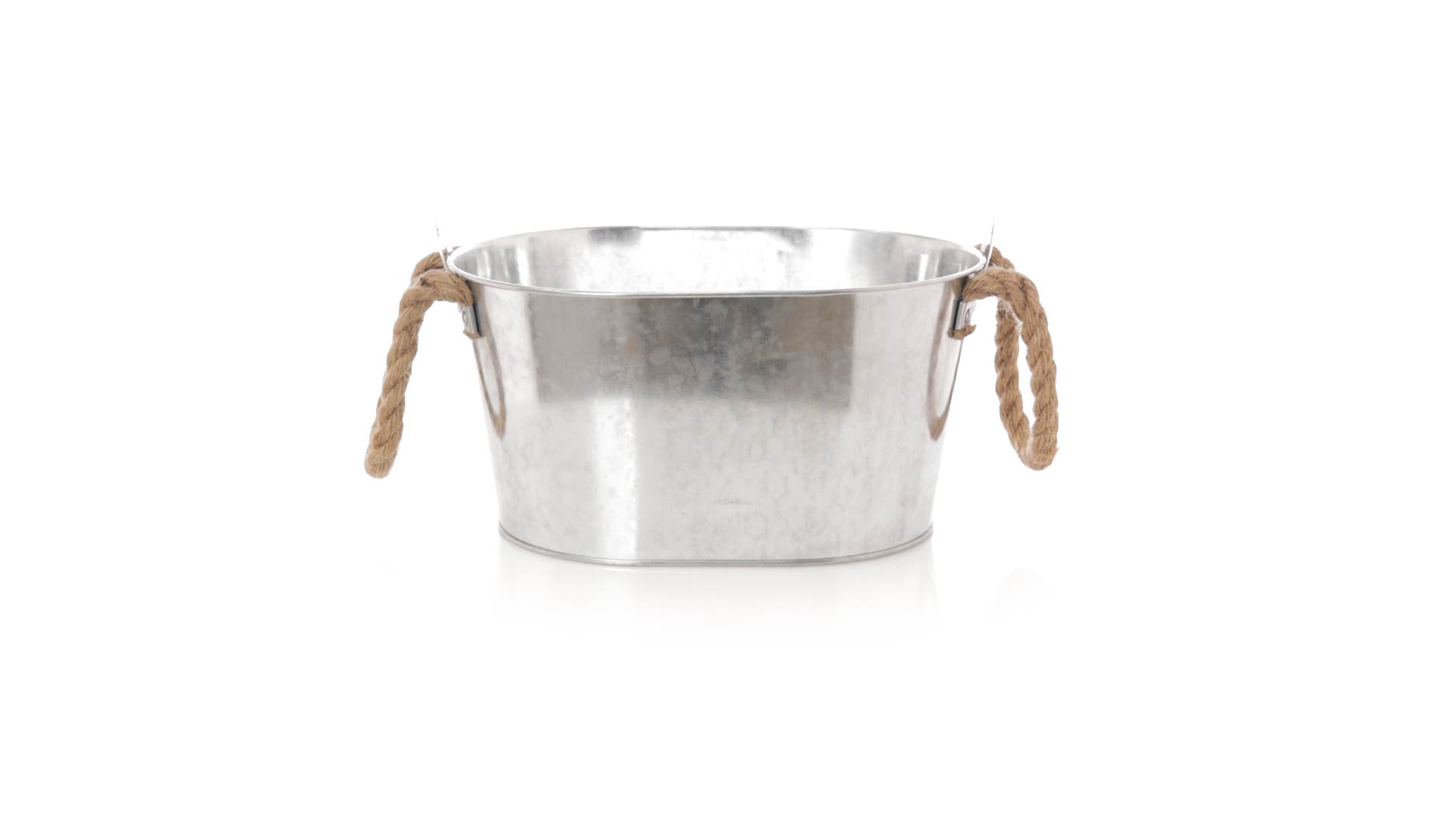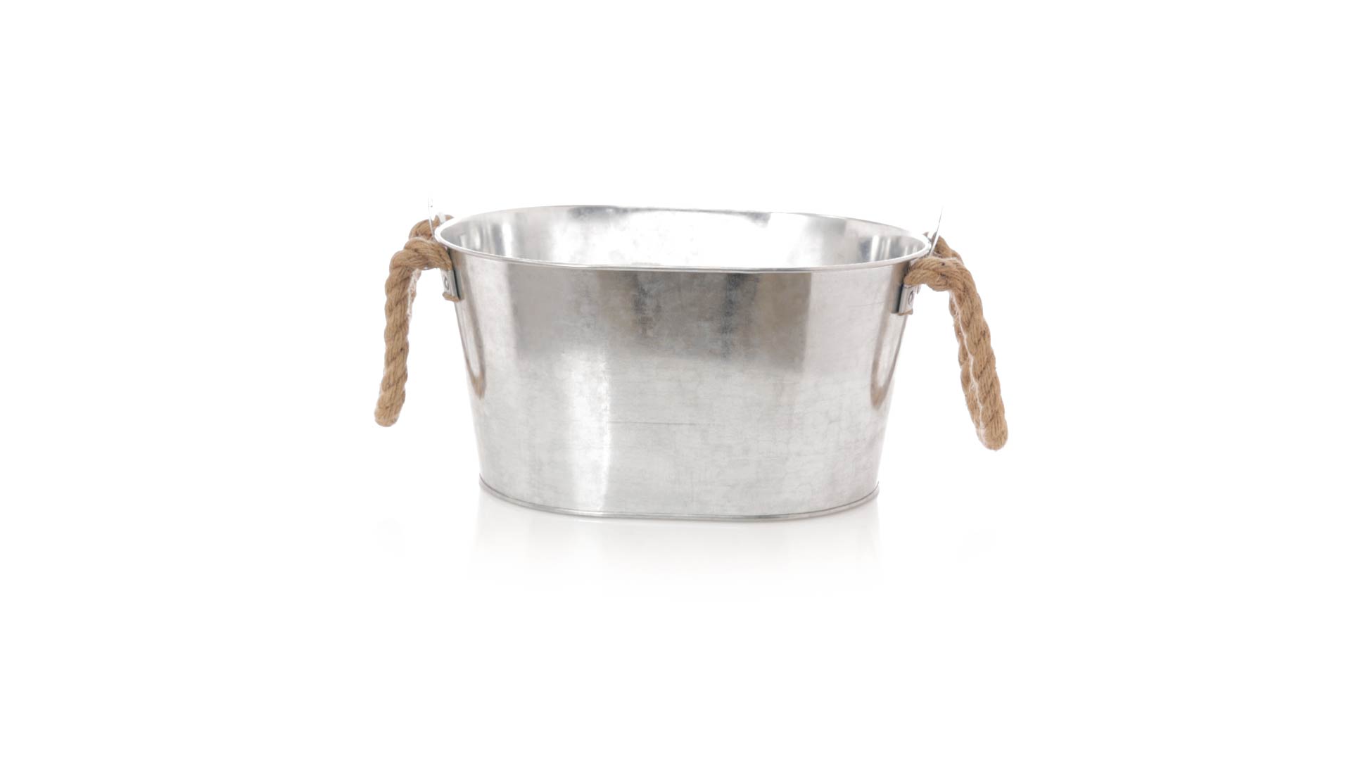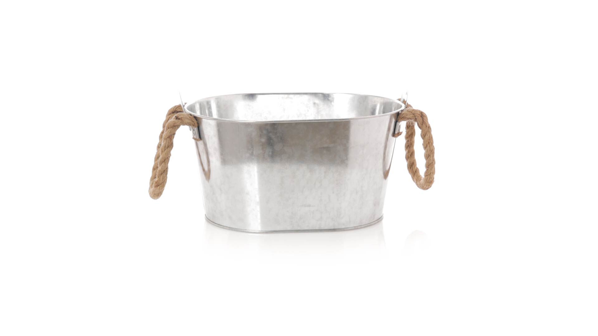 Toller Metalleimer mit 6l Fassungsvermögen zur Aufbewahrung von Kaltgetränken. Perfekte Kombination aus Stil und Funktionalität, mit festen Öffnern an beiden Enden und grossem Fassungsvermögen. Robustes Design mit Seilgriffen für einfachen Transport.