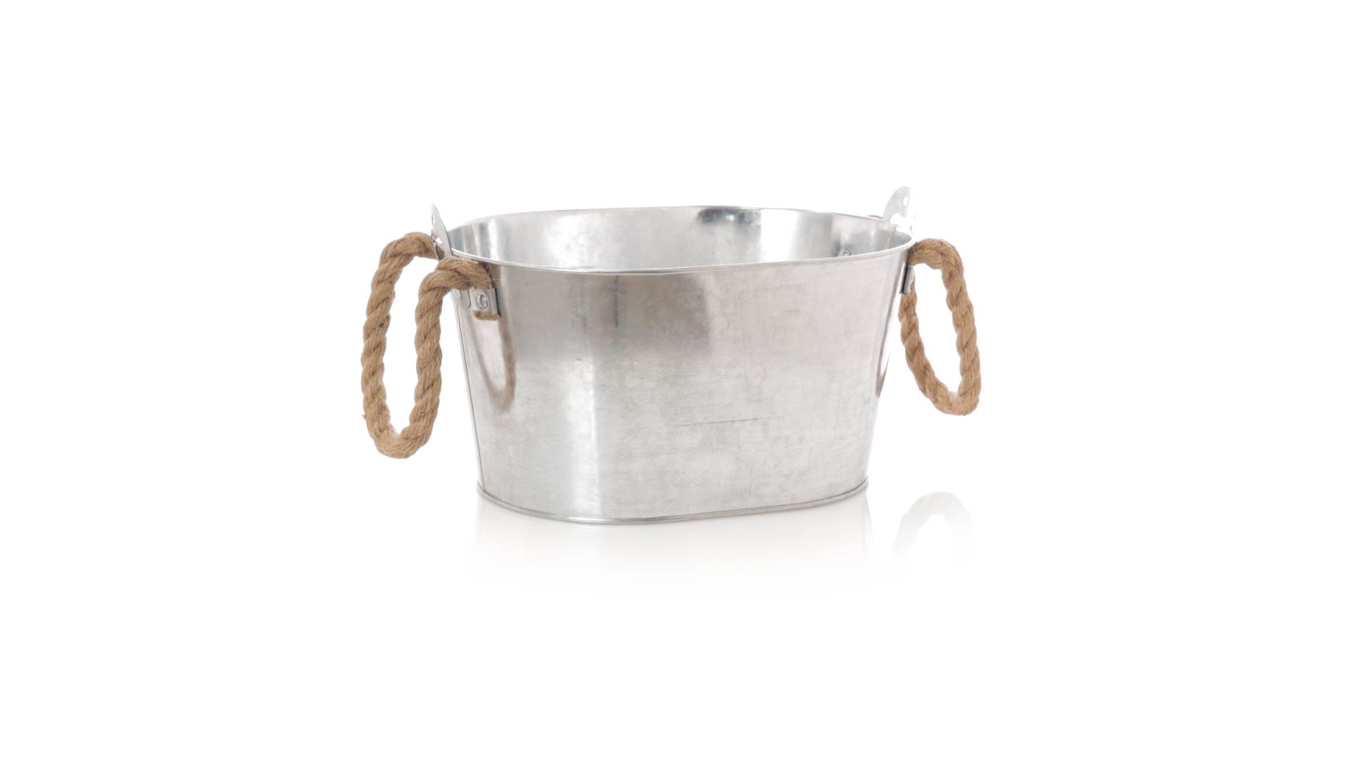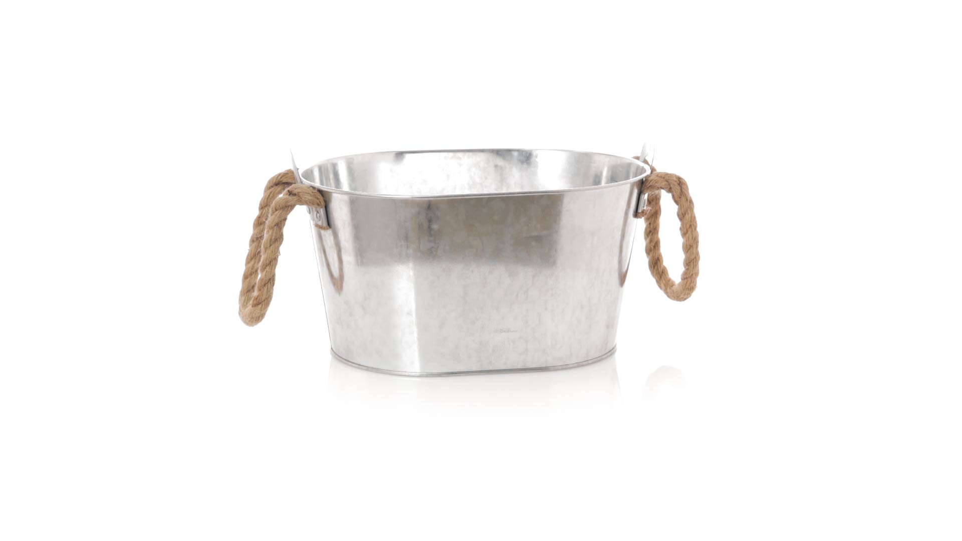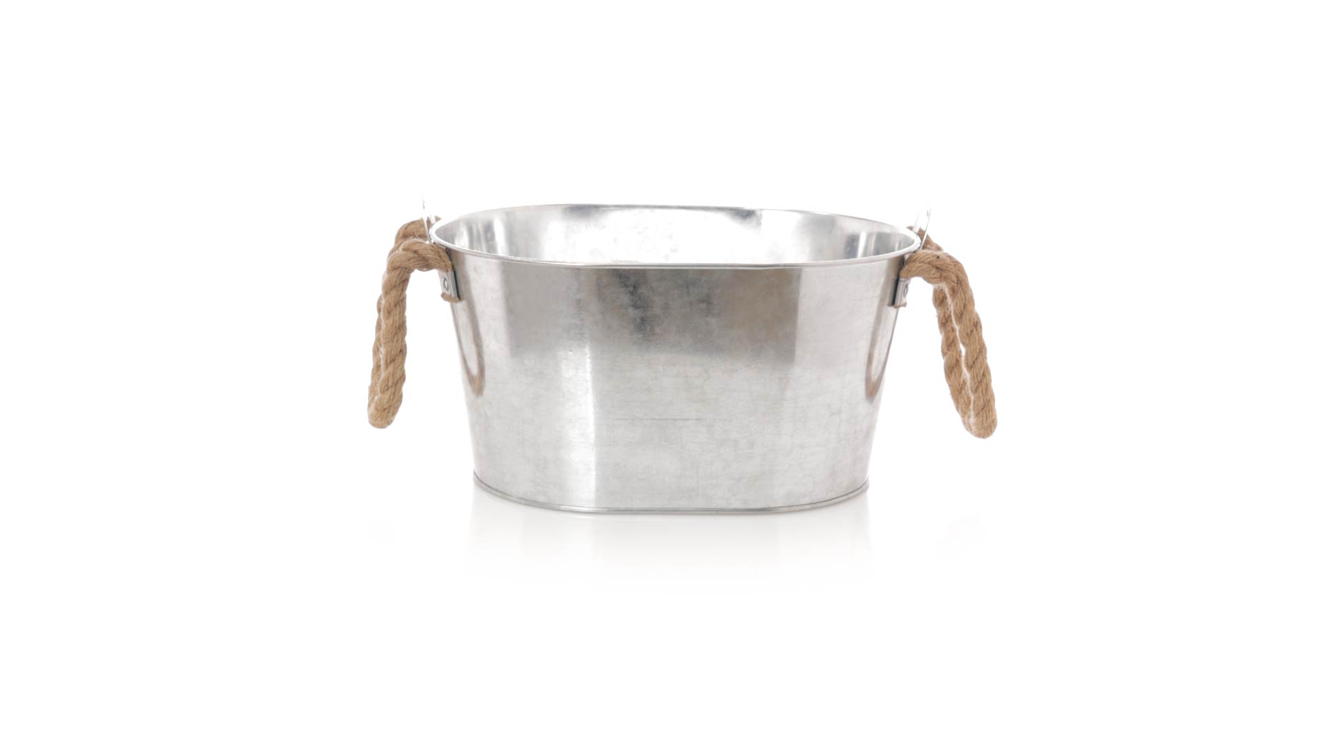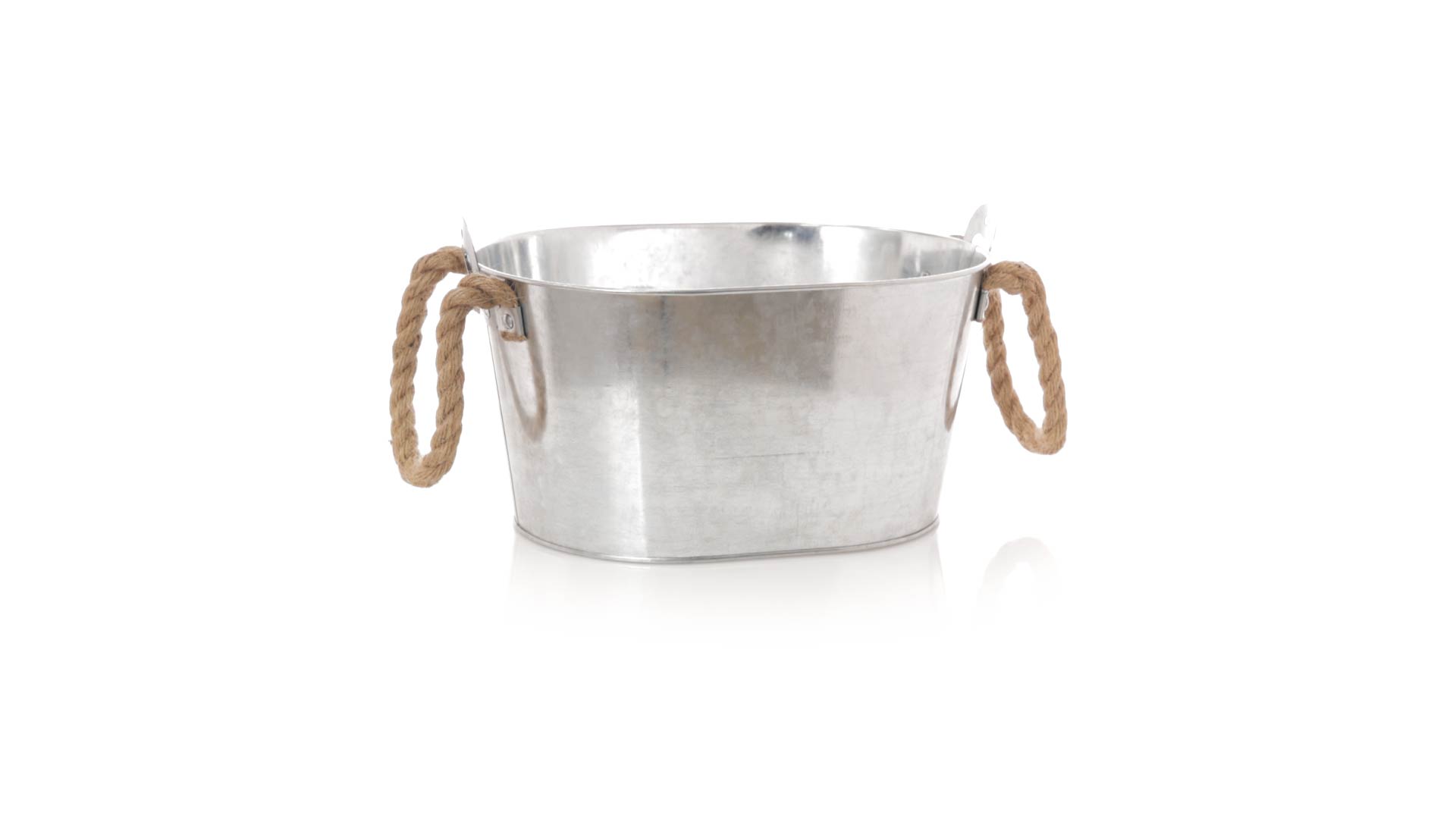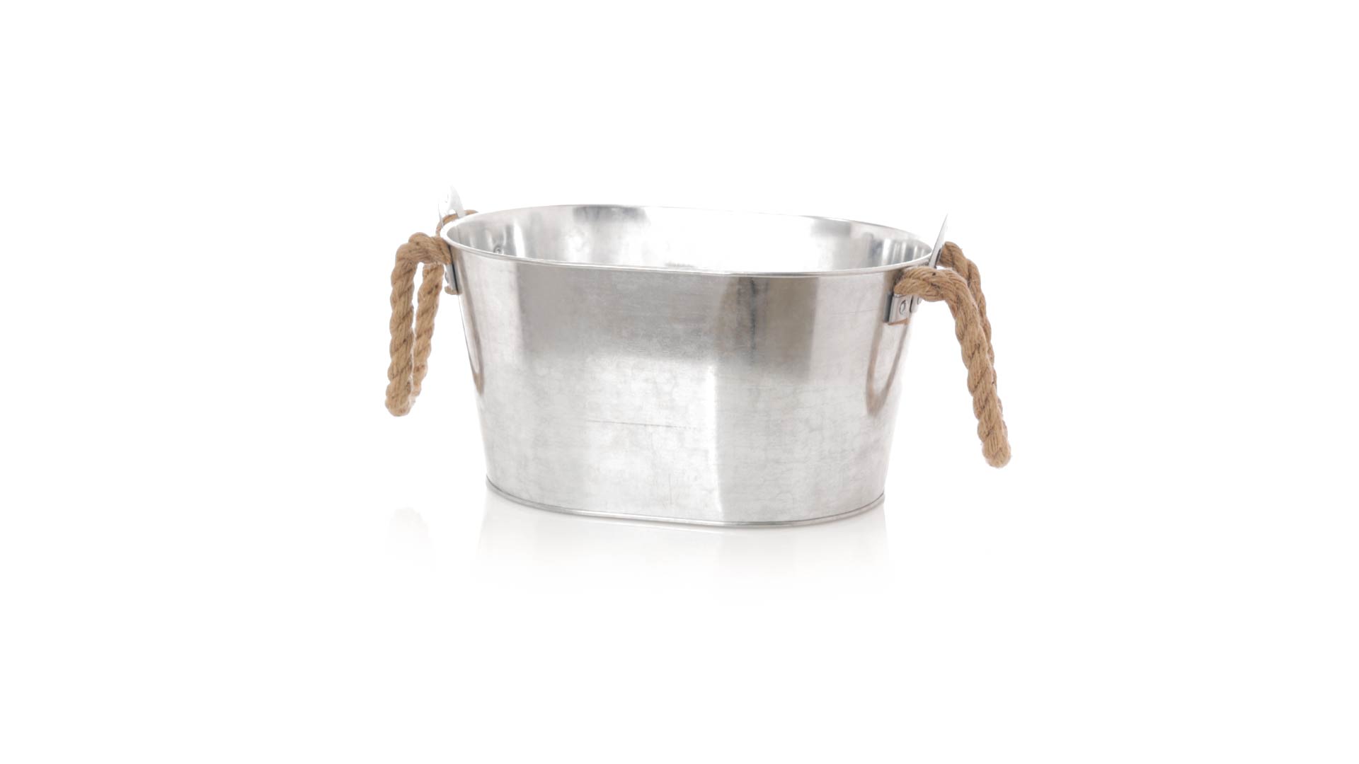 Toller Metalleimer mit 6l Fassungsvermögen zur Aufbewahrung von Kaltgetränken. Perfekte Kombination aus Stil und Funktionalität, mit festen Öffnern an beiden Enden und grossem Fassungsvermögen. Robustes Design mit Seilgriffen für einfachen Transport.