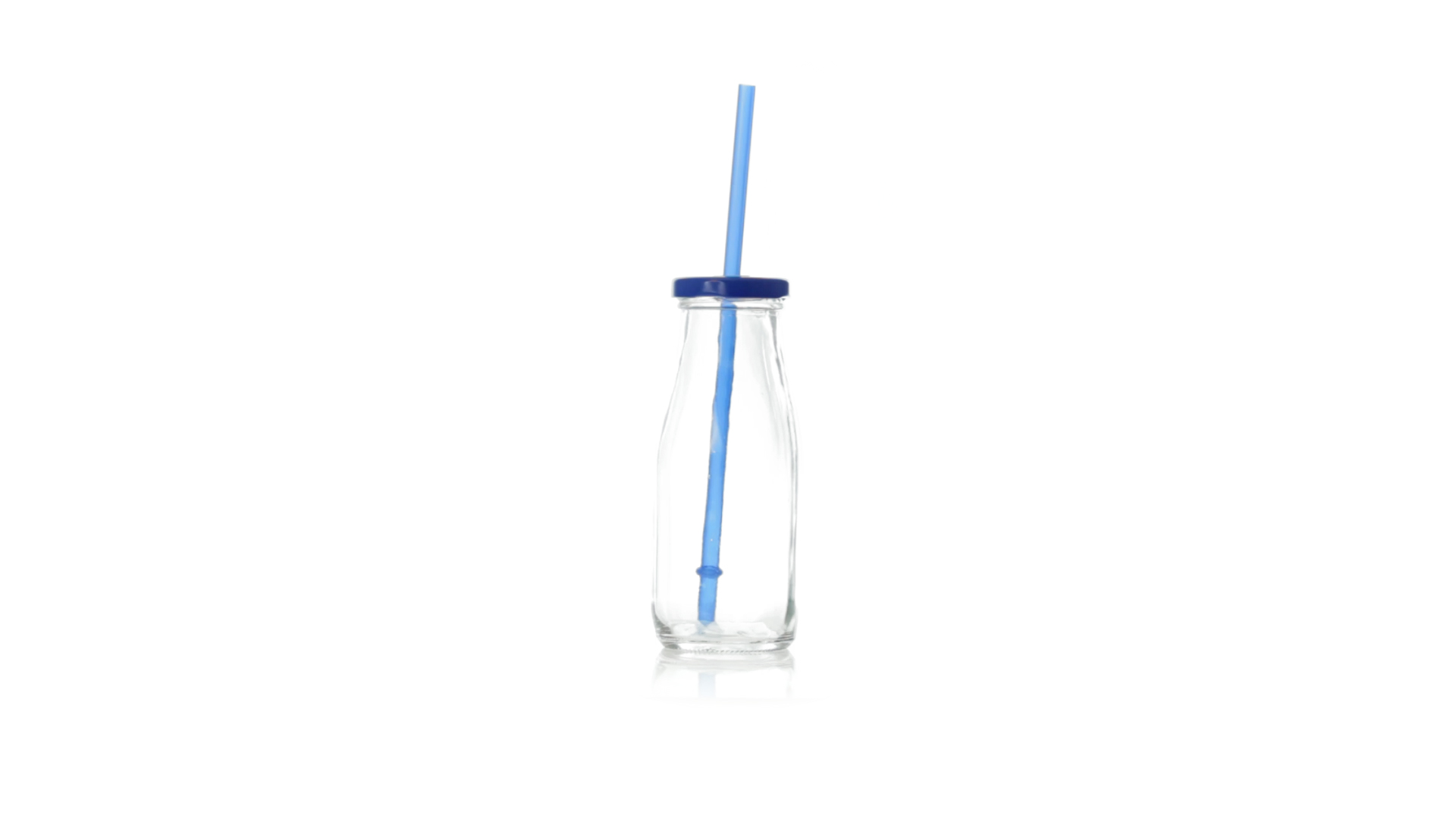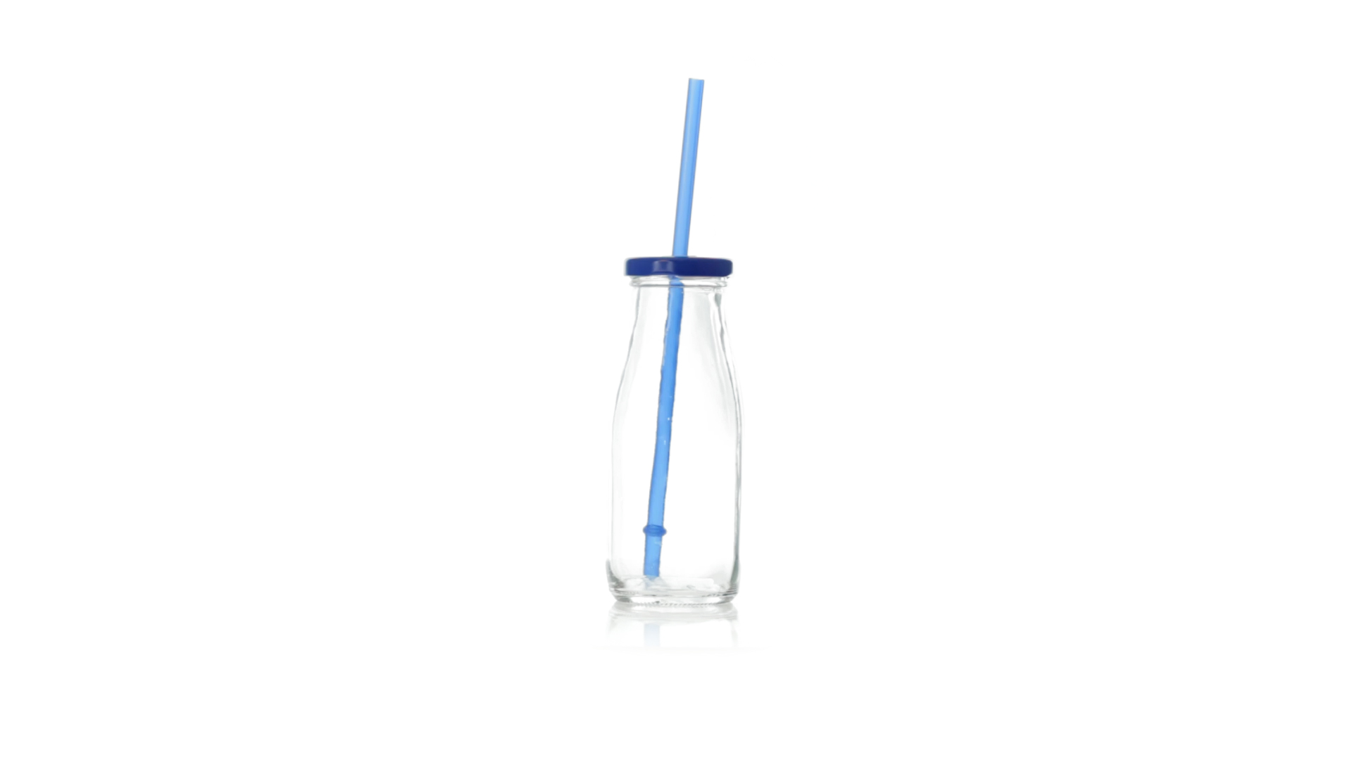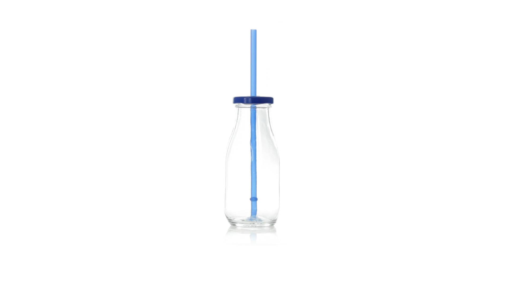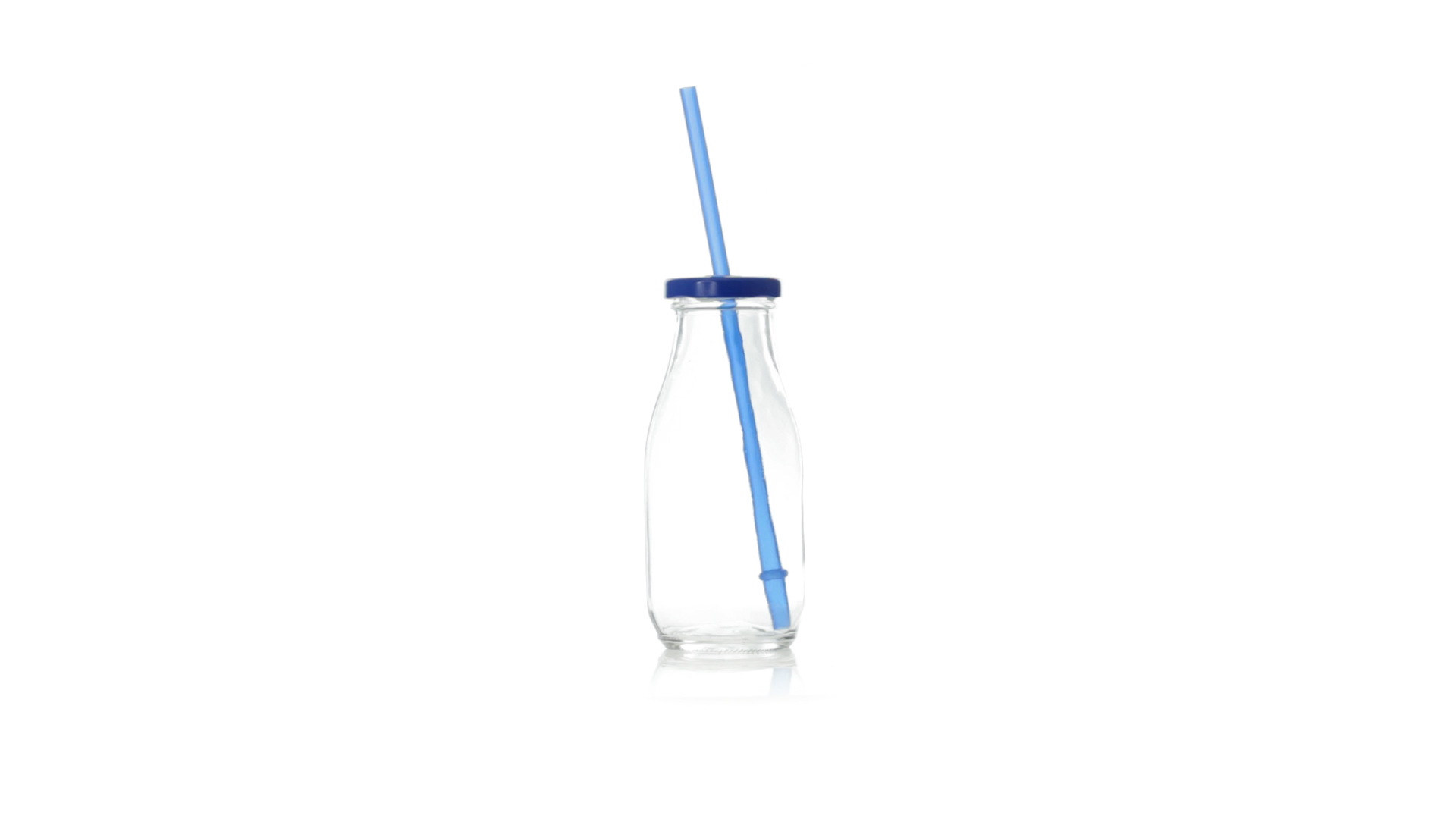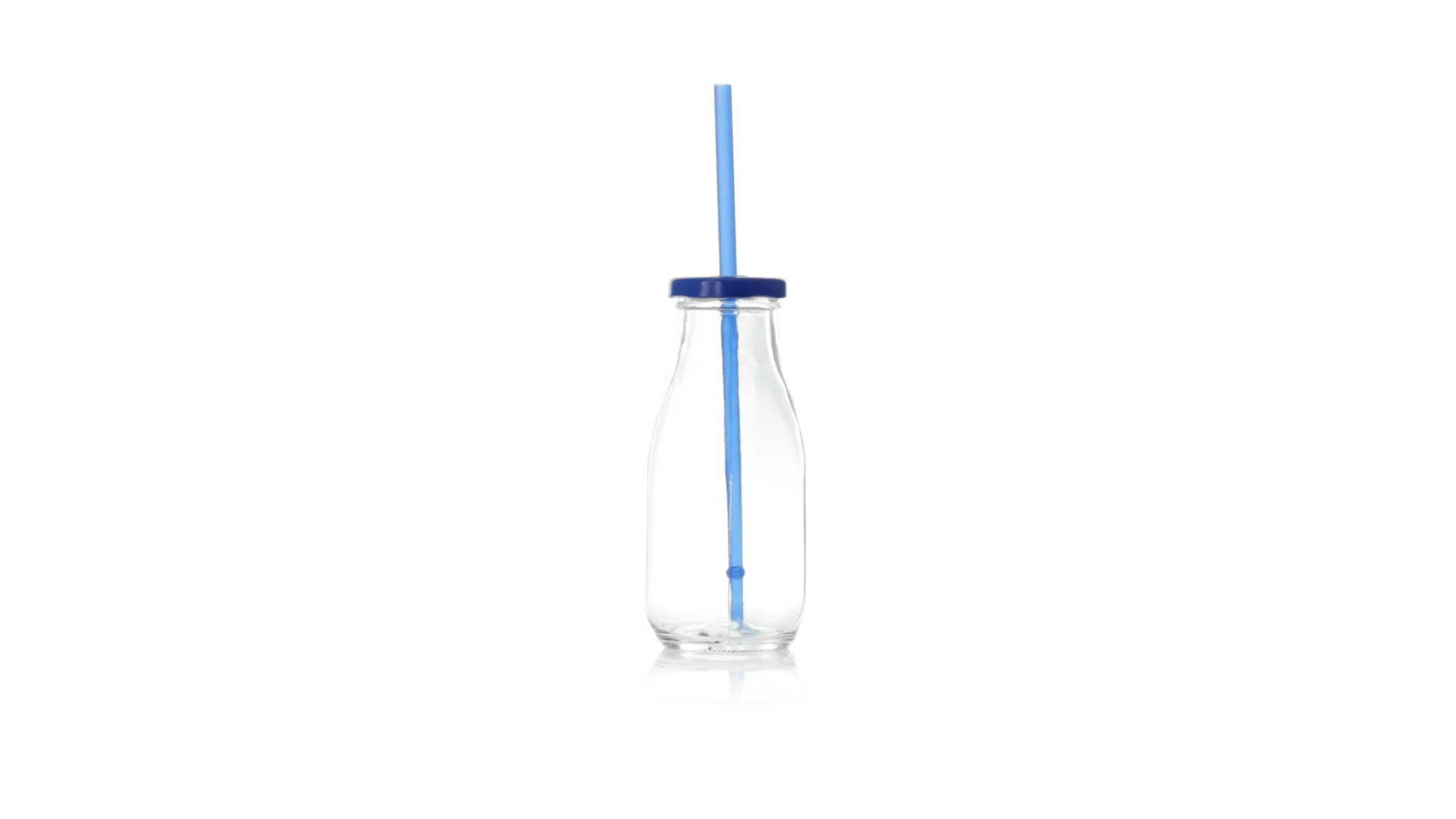 Vielseitig verwendbares Glas mit 320 ml Fassungsvermögen und Deckel mit Strohhalm in lebendigen Farben. Mit Schraubdeckel aus Metall. Präsentiert in einer attraktiven Designbox.