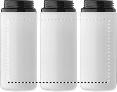Einwandige Flasche aus recyceltem Edelstahl (90% recycelter Edelstahl und 10% Edelstahl). Klappbares Mundstück, Trinkhalm und Deckel mit Griff. Füllmenge: 500 ml.