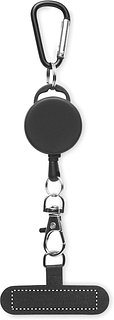 Einziehbarer Smartphone-Halter/Ausweishalter aus ABS mit Karabiner aus Aluminium. Mit Universalhalter. Der Karabiner ist NICHT als Sicherung beim Klettern geeignet.