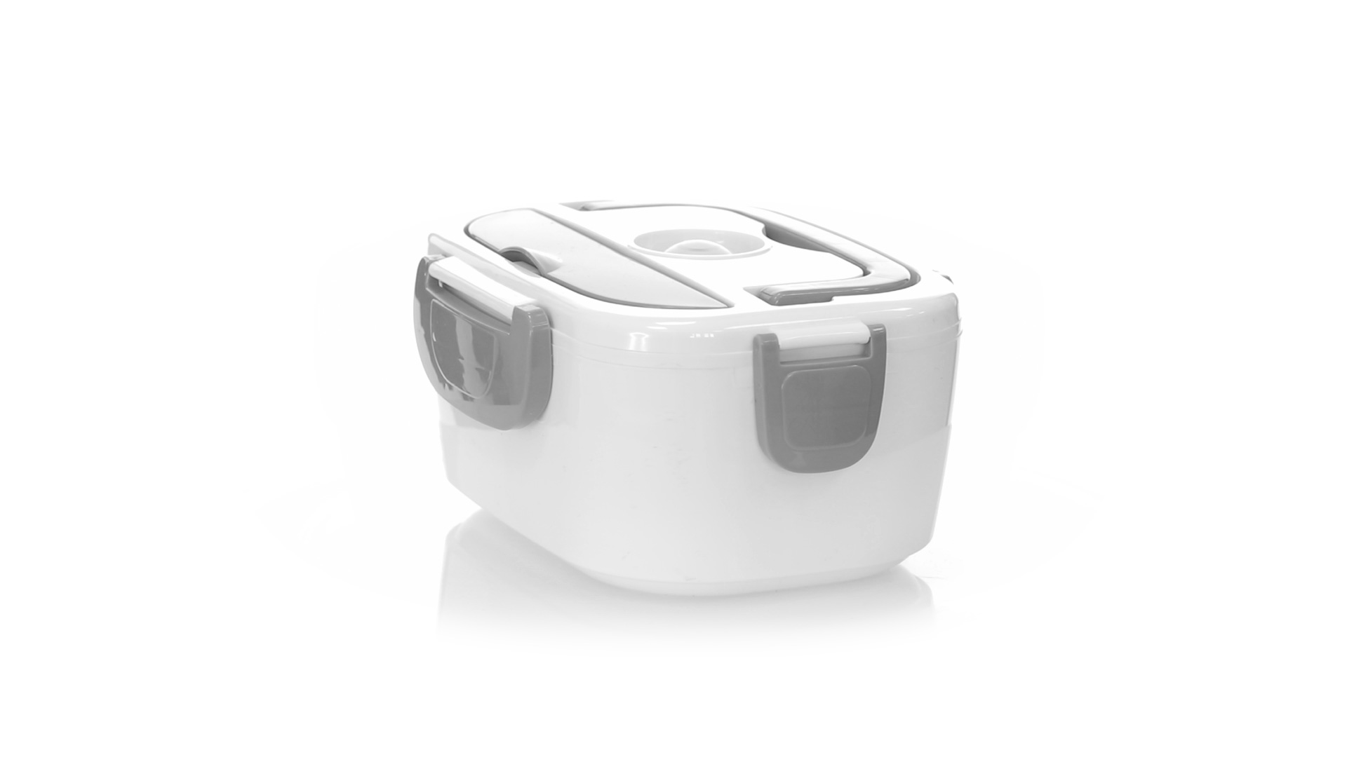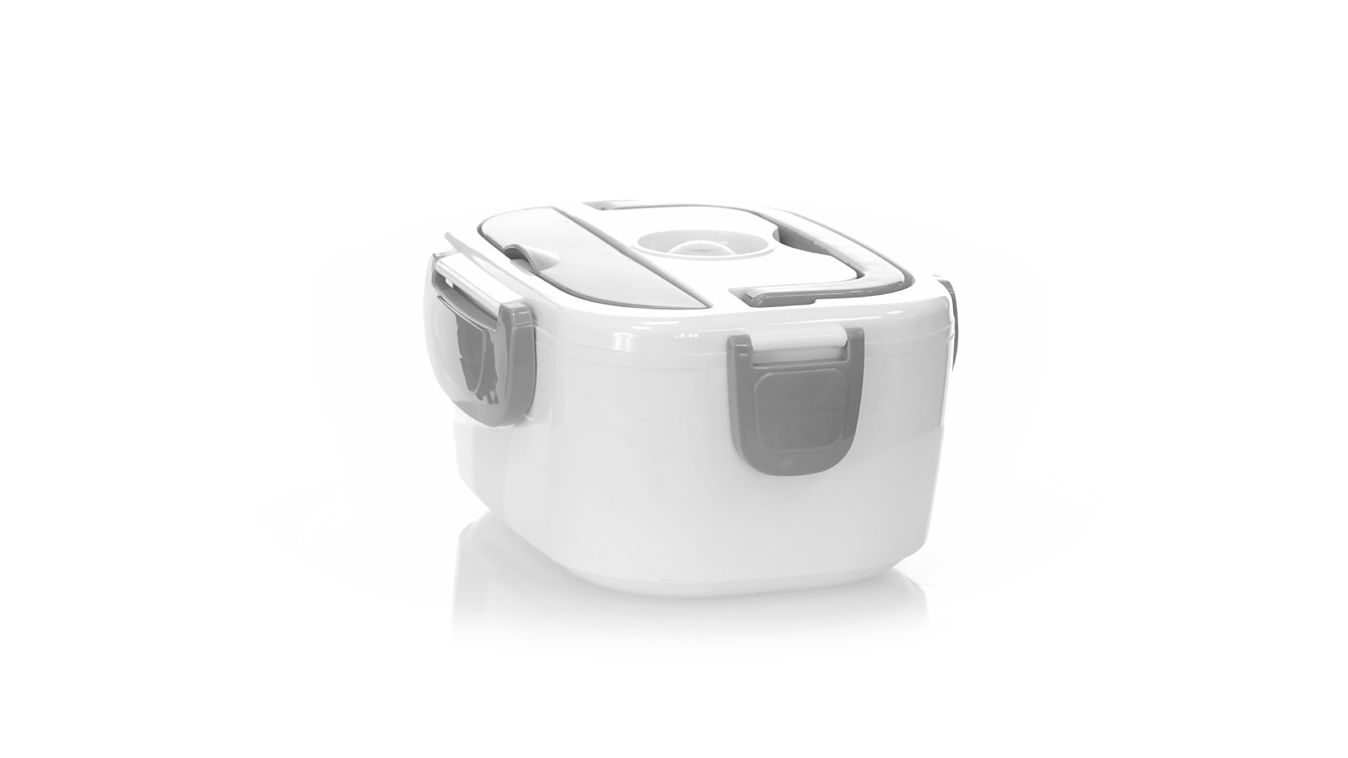 Elektrische Brotdose mit 1 l Fassungsvermögen. Hergestellt aus widerstandsfähigem BPA-freiem ABS und zweifarbigem Design. Inklusive praktischem Tragegriff und hermetischem Deckel mit seitlichen Sicherheitsverschlüssen. 2 Hauptfächer und Zusatzfach mit luftdichtem Verschluss. Inklusive Löffel, mit Netzkabel für europäischen Stecker. Ideal zum Erwärmen von Speisen im Büro. Präsentiert in attraktiver Designbox.