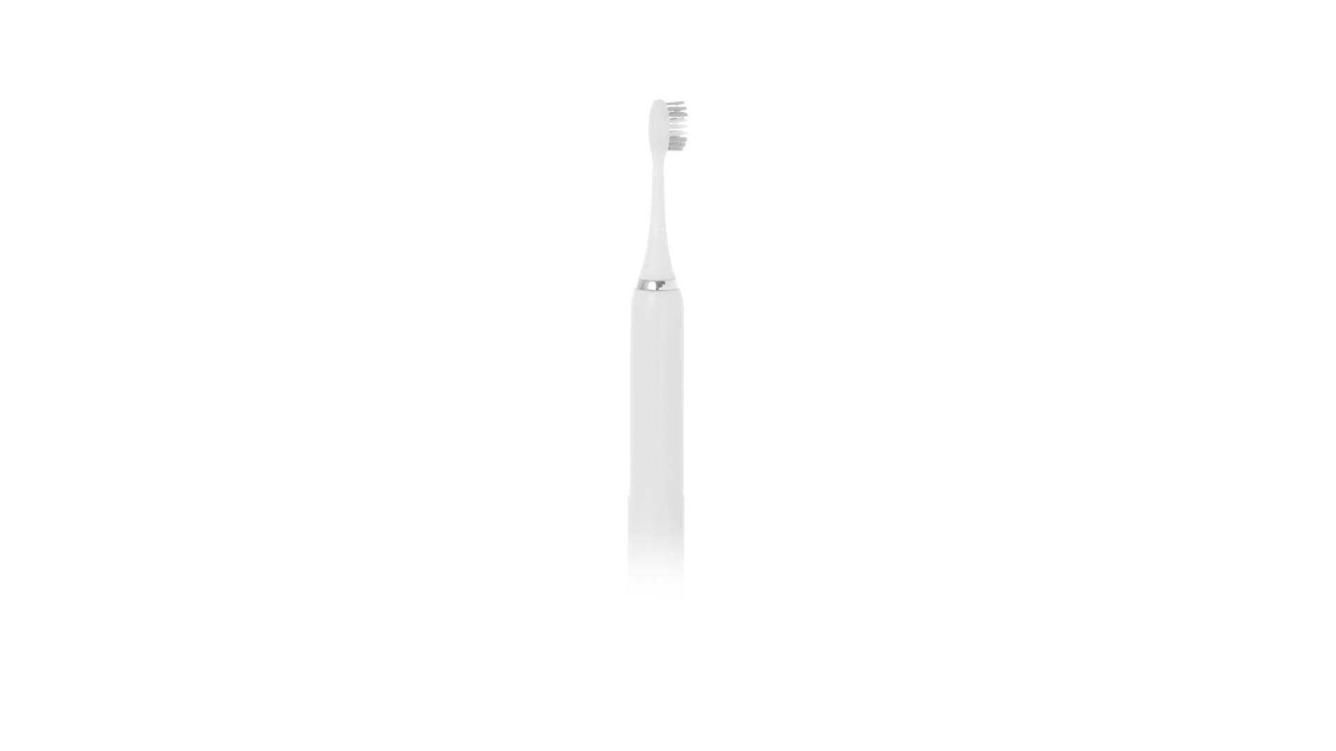 Praktische und tragbare elektrische Zahnbürste. Effiziente Reinigung dank Vibrationsfunktion und angenehmen Borsten. Betrieben durch 1 AA-Batterie (nicht im Lieferumfang enthalten), die durch die Basis eingesetzt wird. In den Farben Weiss und Silber, präsentiert in einer Kraftpapier-Designbox.