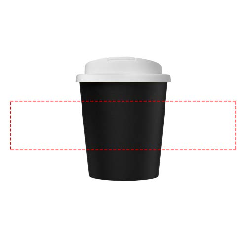 Doppelwandiger Isolierbecher mit einem drehbaren, auslaufsicheren Deckel. Geschlossene Befestigungsclips am Deckel verhindern das Verschütten, und der Becher wird ohne Silikon als vollständig recycelbar hergestellt. Der komplette Becher inkl. Deckel besteht zu 75% aus recyceltem Material: ein recycelter Becher mit schwarzer Innenwand und ein Standarddeckel. Die Schattierungen von Schwarz oder Weiss können variieren, und die weisse Variante hat aufgrund der Beschaffenheit des recycelten Materials einen strukturierten Farbeffekt. EN12875-1 konform; spülmaschinen- und mikrowellenfest. Das Fassungsvermögen beträgt 250 ml. Verpackt in einem recycelten PE-Kunststoffbeutel. Hergestellt in UK. BPA-frei.