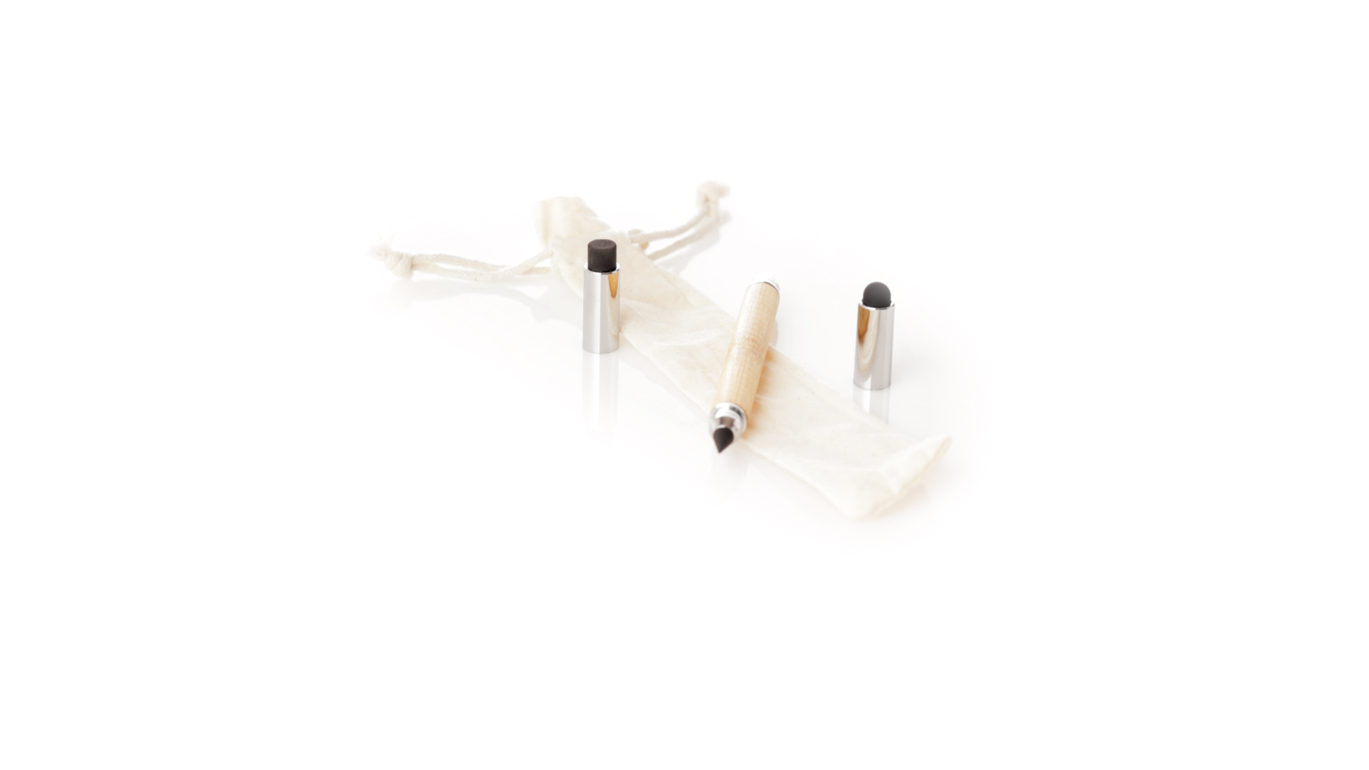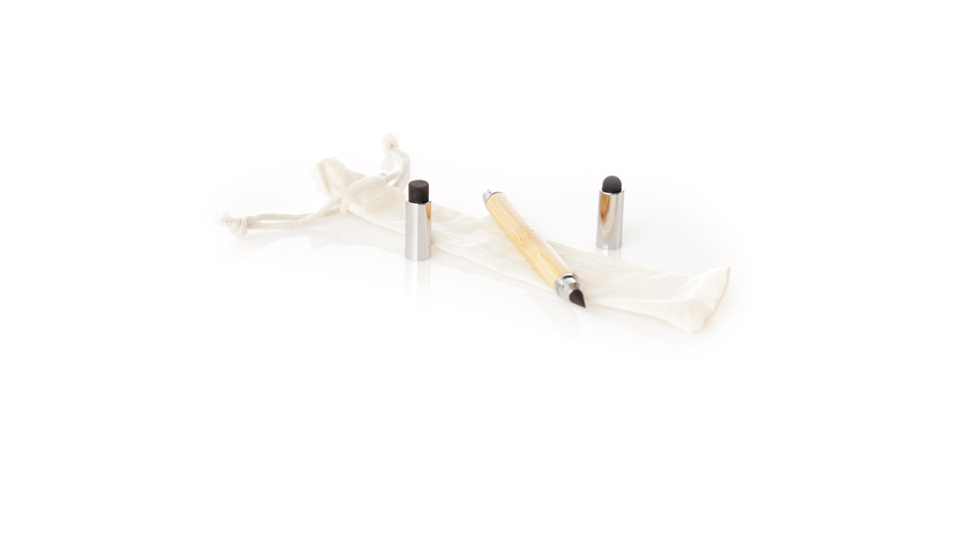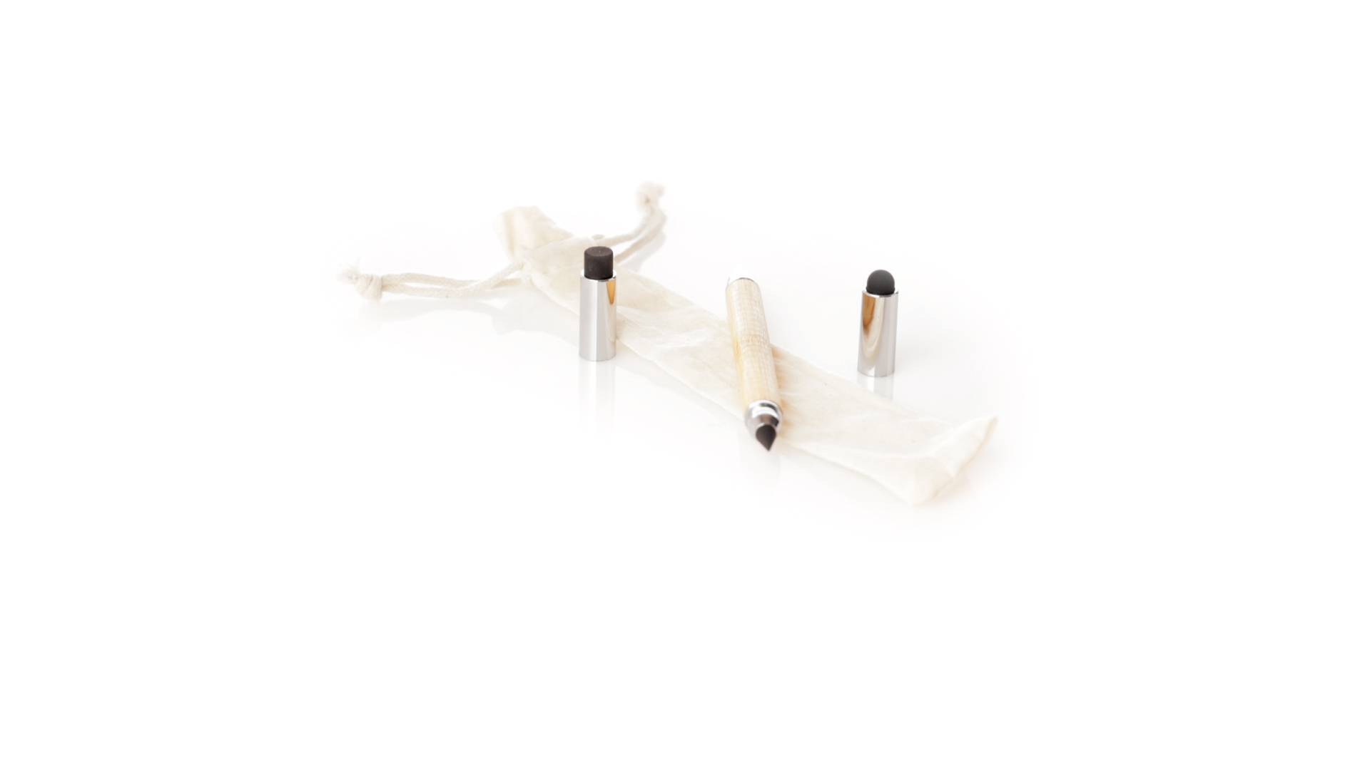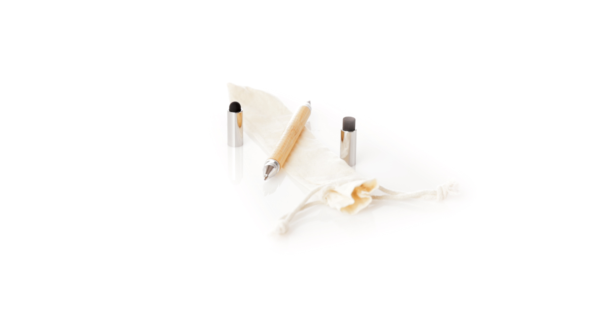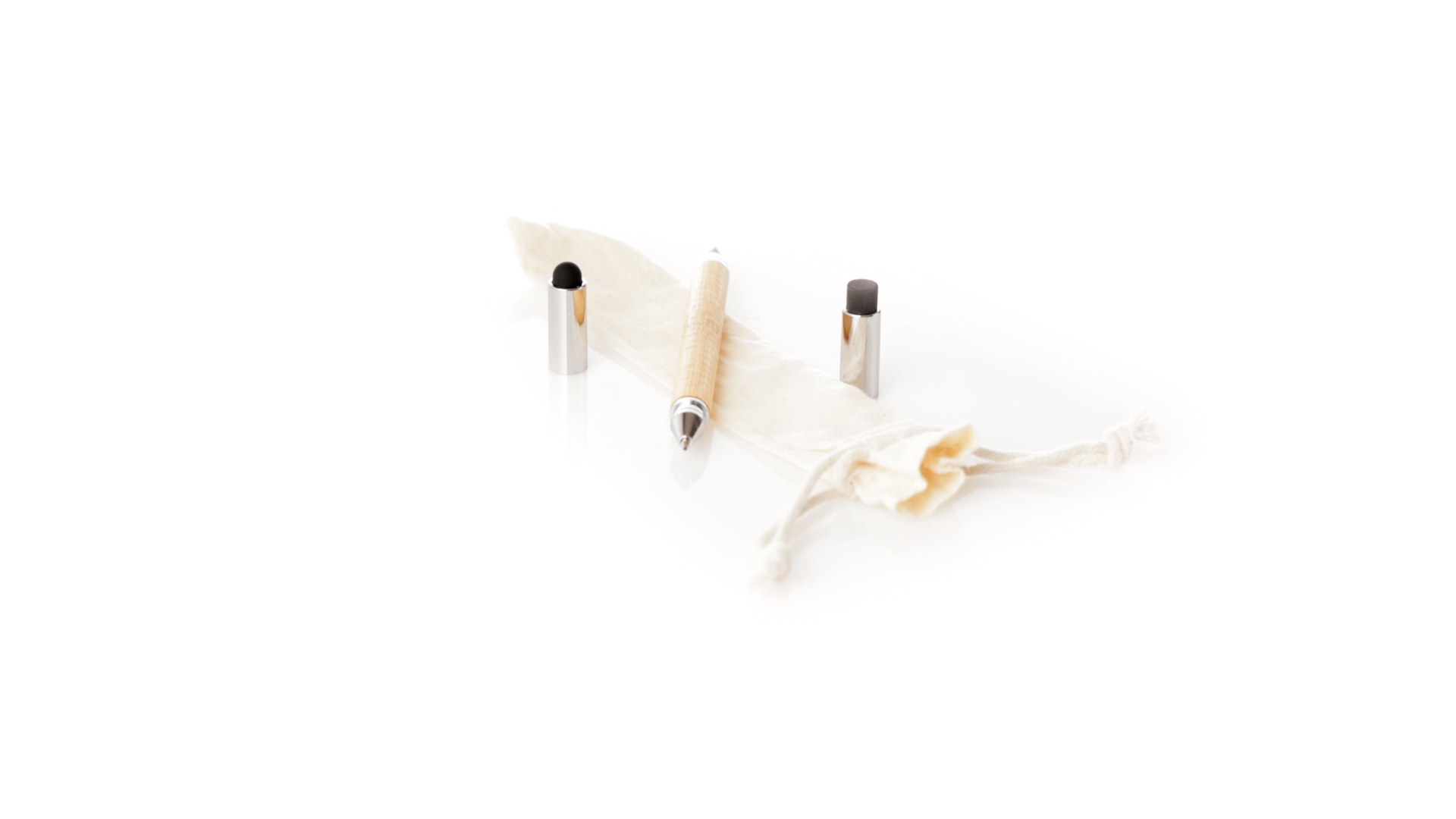2-in-1-Dauerbleistift aus Bambus, mit glattem Schaft und verchromten Beschlägen. Mit Kapuzenverschluss, Radiergummi und Stift an beiden Enden, mit Kugelschreibern an einem Ende (Jumbo-Füllung und blaue Tinte) und ewigem Bleistift am anderen Ende, so dass Sie immer denselben Bleistift verwenden und keinen Abfall produzieren. Präsentiert in einem Etui aus Baumwolle mit Kordelzugverschluss.
