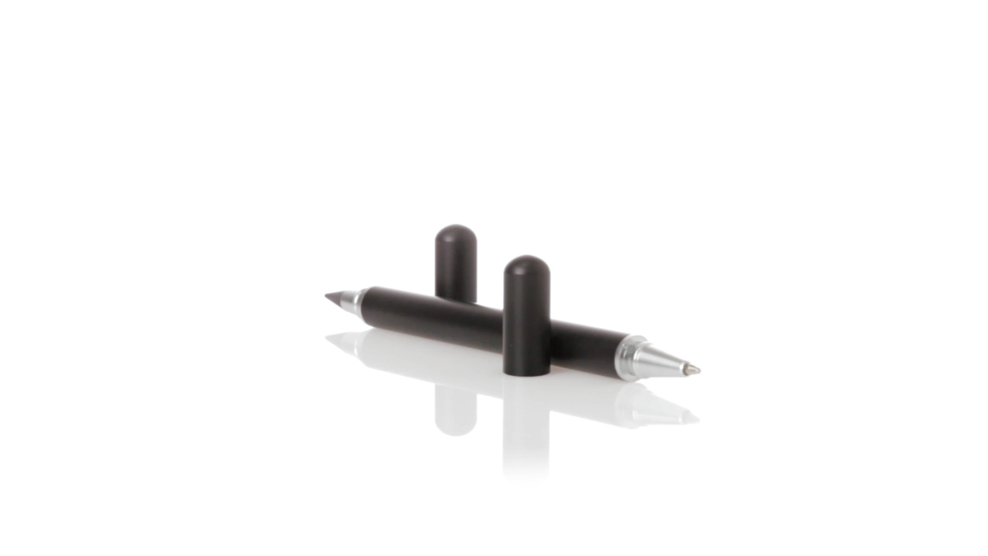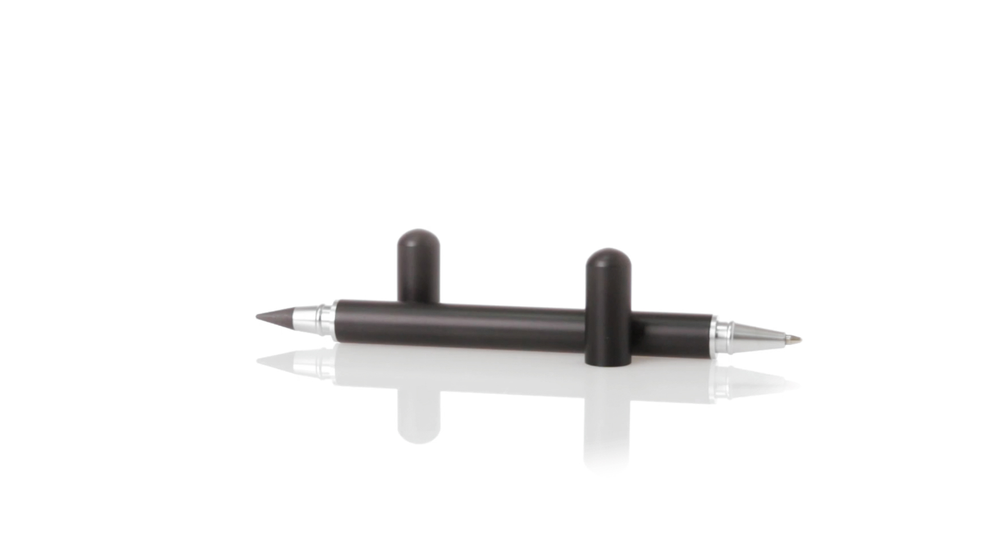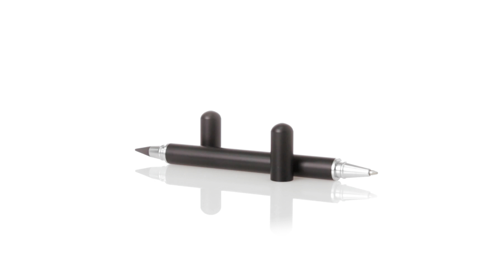 Kugelschreiber und ewiger Bleistift 2 in 1, hergestellt aus langlebigem Metall mit glänzender Oberfläche. Mit Kappenverschluss, einschliesslich Kugelschreiber an einem Ende (Jumbo-Patrone und blaue Tinte) und ewiger Bleistift am anderen Ende, um immer den gleichen Bleistift zu verwenden und keinen Abfall zu produzieren. Präsentiert in einem individuellen schwarzen Etui.