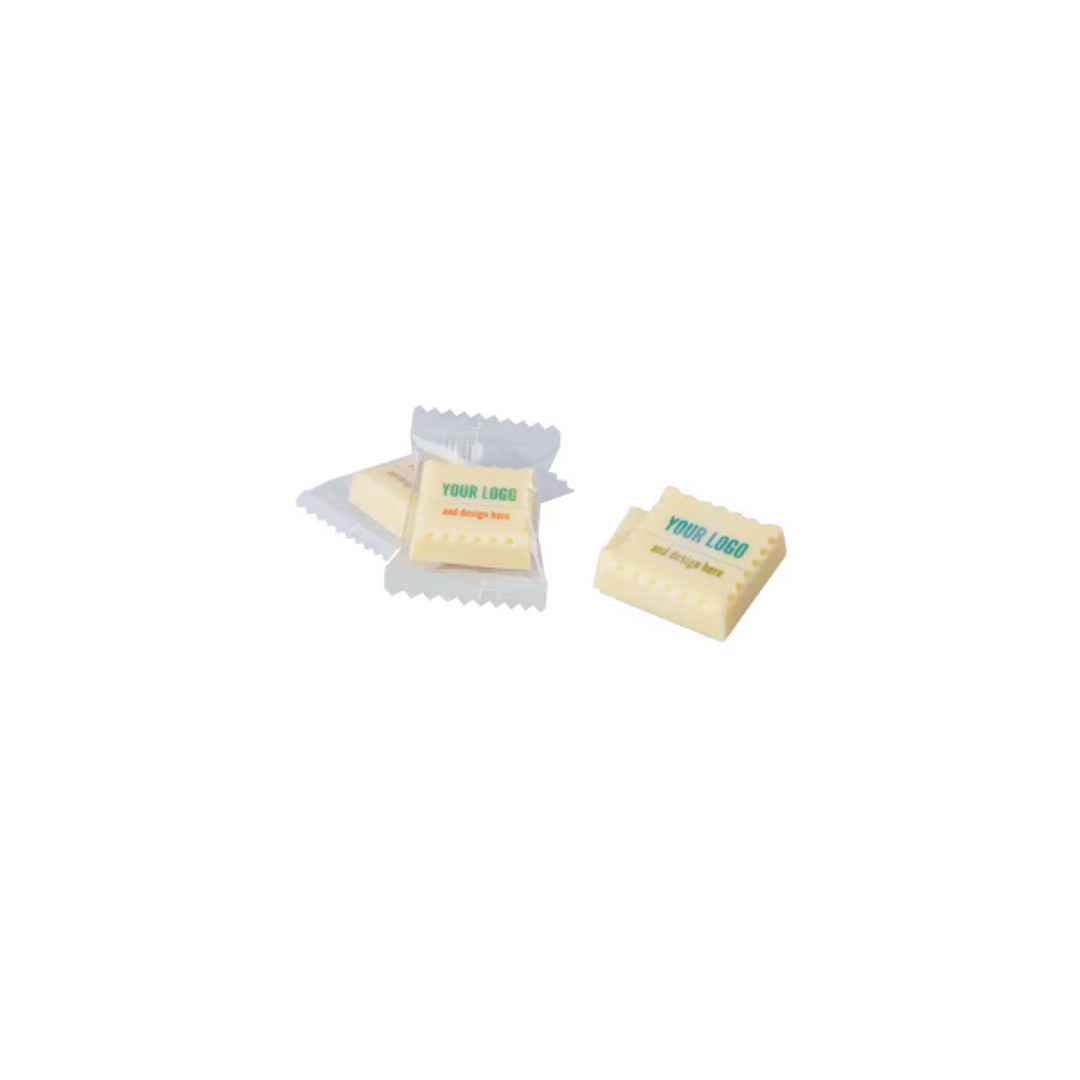 Die Praline kommt in einer eleganten, umweltfreundlichen Verpackung, die du nach Wunsch mit deinem Logo oder einer speziellen Grafik personalisieren kannst.