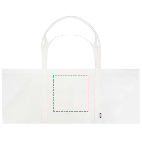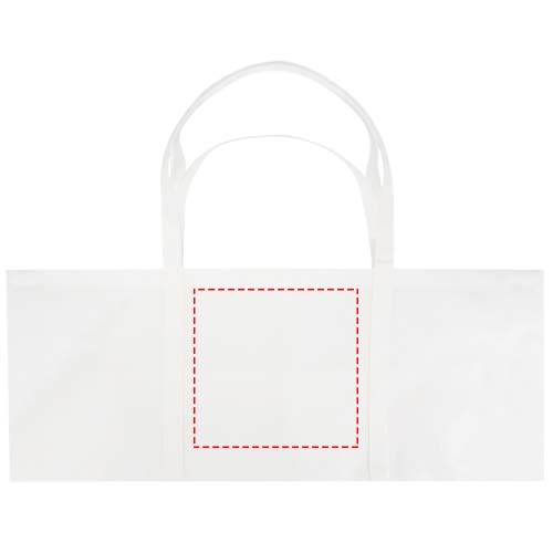 Die Jumbo Tragetasche aus GRS-zertifiziertem Recyclingmaterial besteht aus strapazierfähigem und reissfestem RPET-Non Woven und bietet mit bis zu 65 Litern ein extra grosses Fassungsvermögen für vielfältige Aktivitäten wie den Grosseinkauf oder einen Tag am Strand oder im Park. Mit verstärkten kurzen (24 cm) und langen (37 cm) Griffen für maximalen Tragekomfort. Bei Nichtgebrauch lässt sie sich leicht zusammenfalten und verstauen. Beständigkeit bis zu 15 kg.