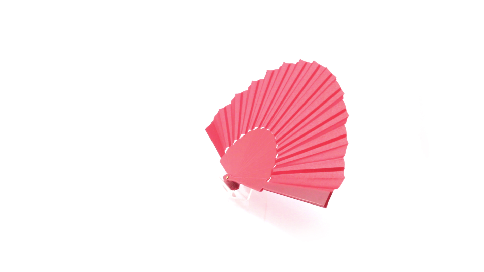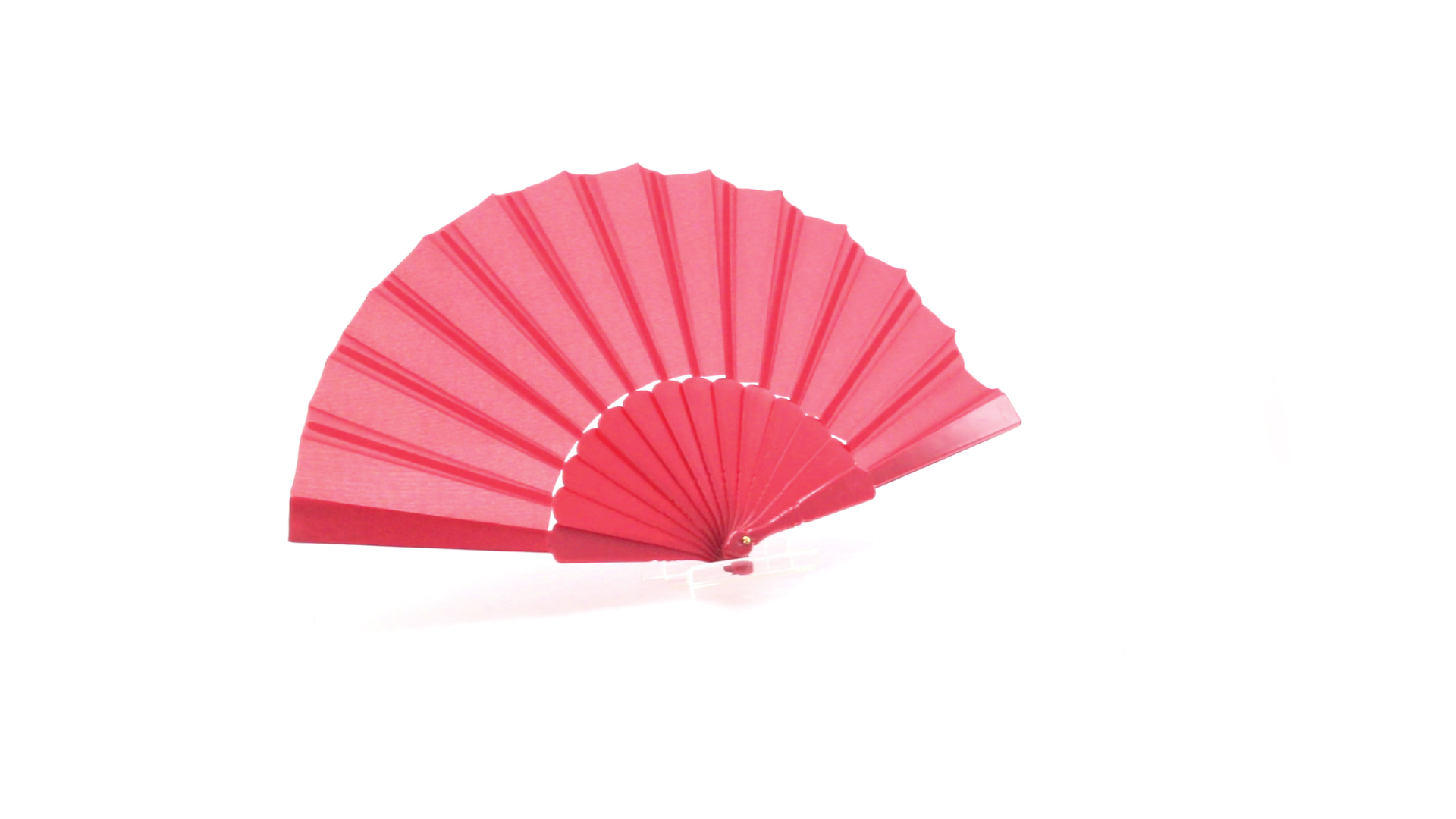 Fächer aus widerstandsfähigem Kunststoff und Polyestergewebe. Stäbe und Stoff sind in einer breiten Palette leuchtender Farben erhältlich. Präsentiert in einer individuellen Schachtel mit Sichtfenster.