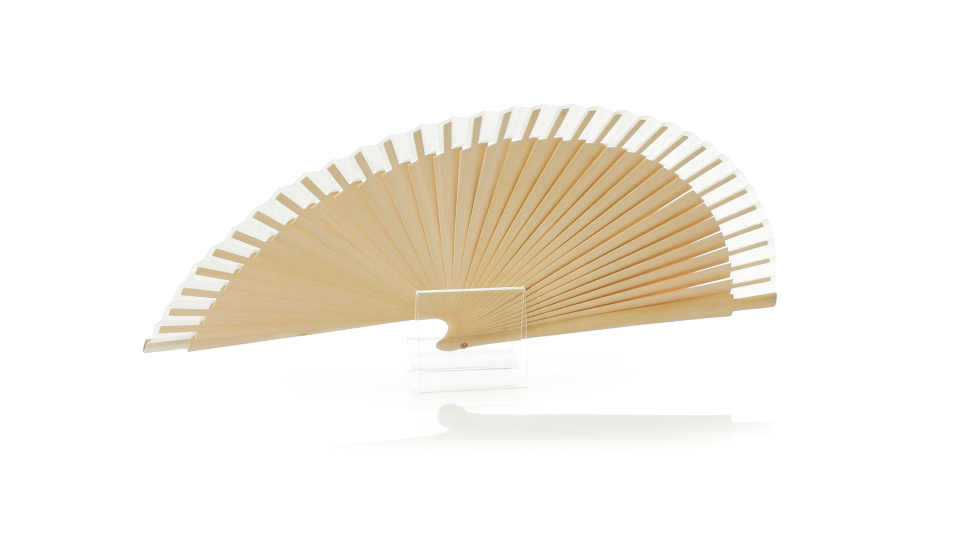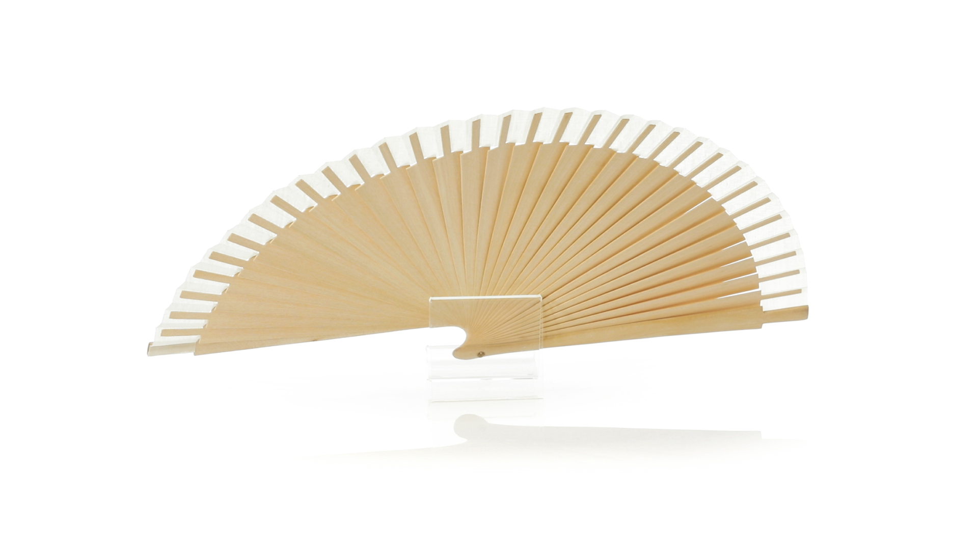Fächer aus unserer Naturlinie mit Holzrippen und Baumwollstoff. Präsentiert in einer individuellen, ökologischen Design-Box.