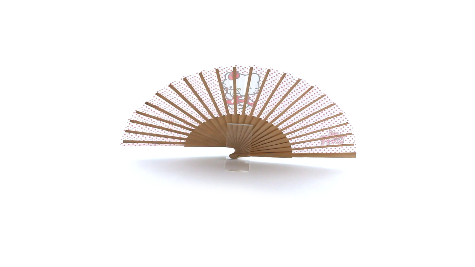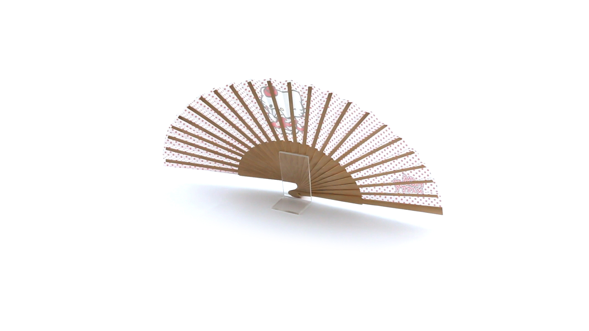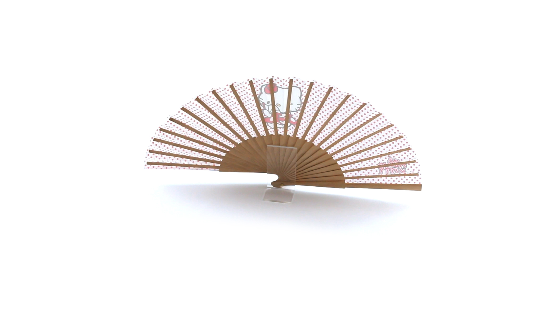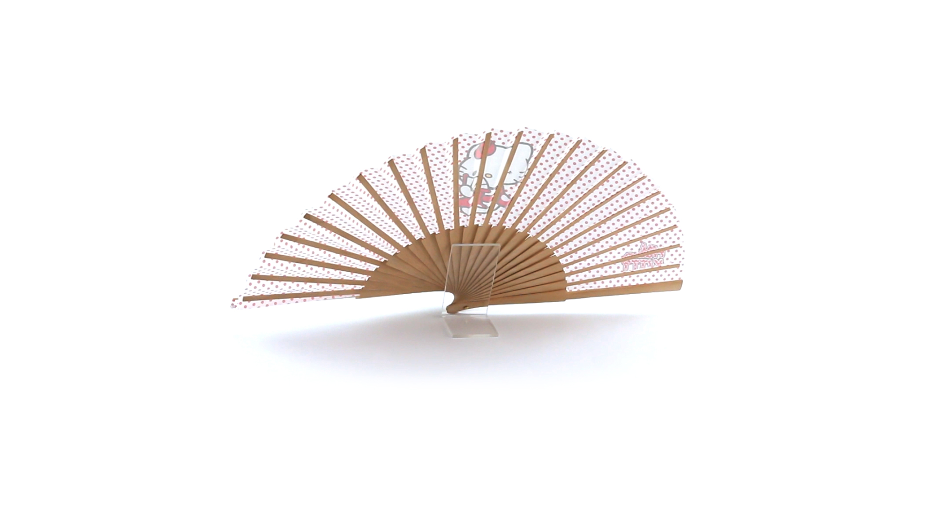 Fächer von Hello Kitty mit Stäbchen aus Naturholz und Gewebe mit originellem Design der Katze der Marke. Präsentiert in einer individuellen Box.