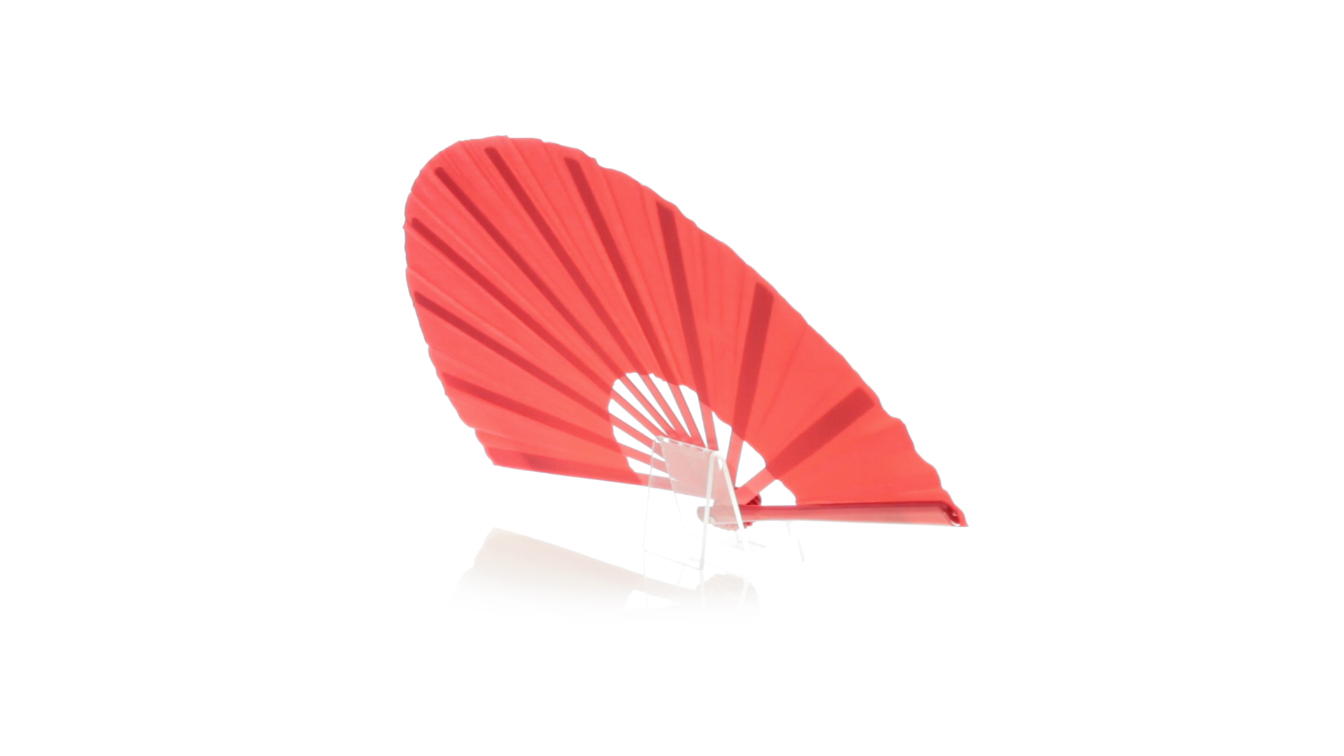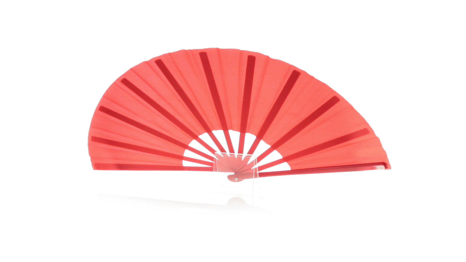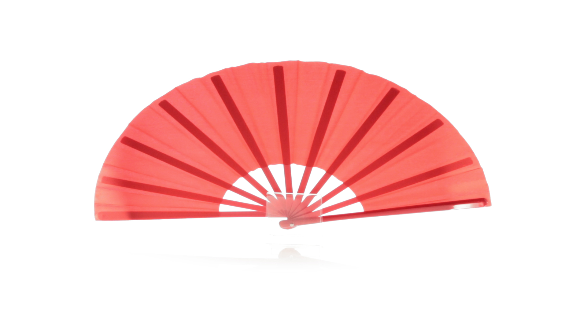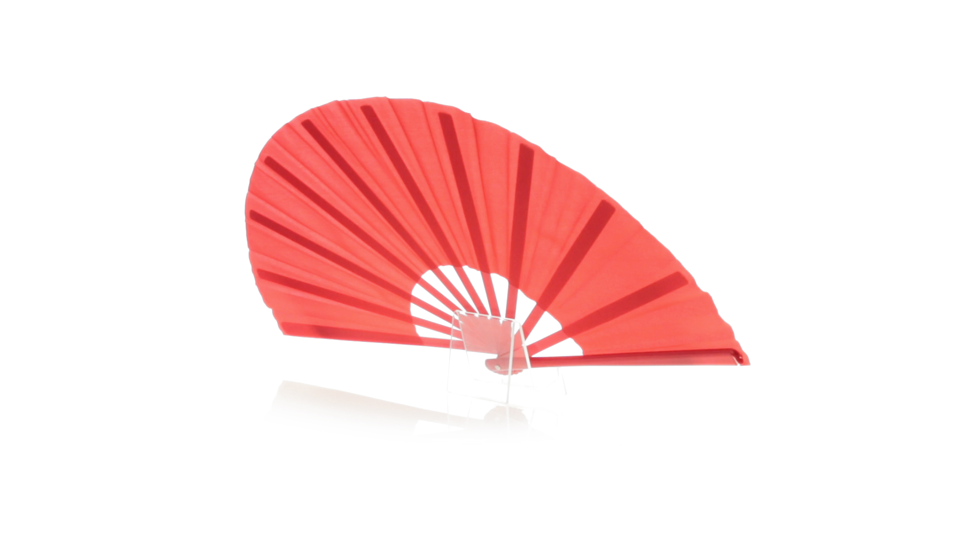 Fächer in Maxi-Grösse mit Kunststoffstäbchen und Polyestergewebe in verschiedenen Farben. Präsentiert in einer individuellen Box.
