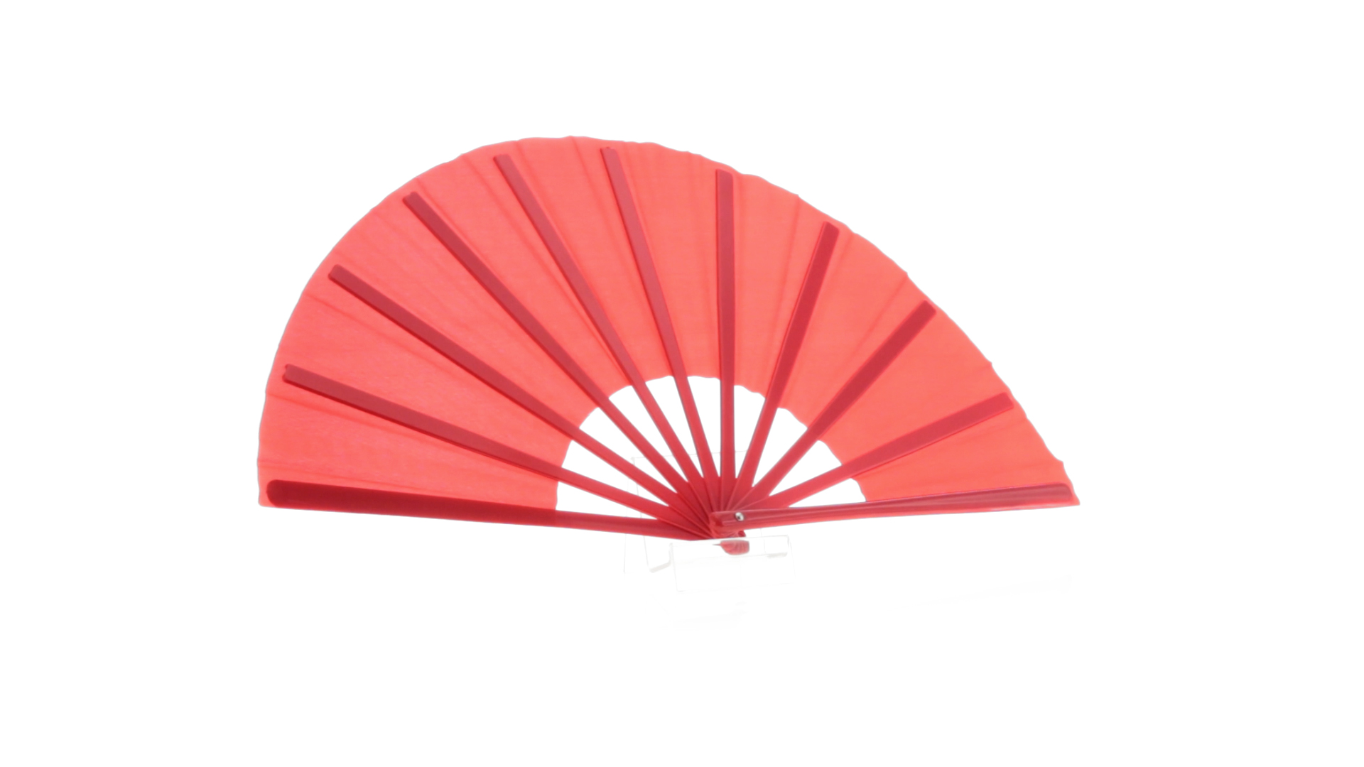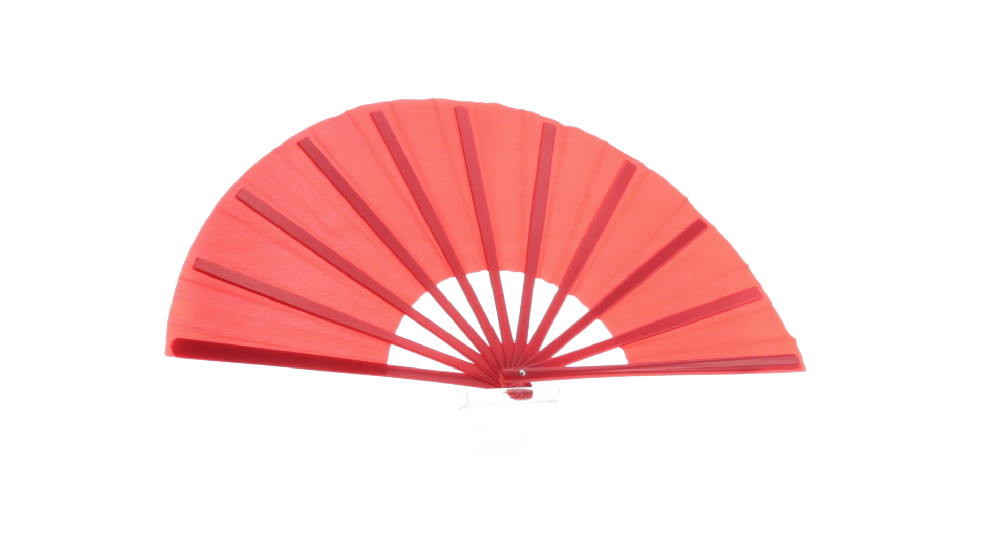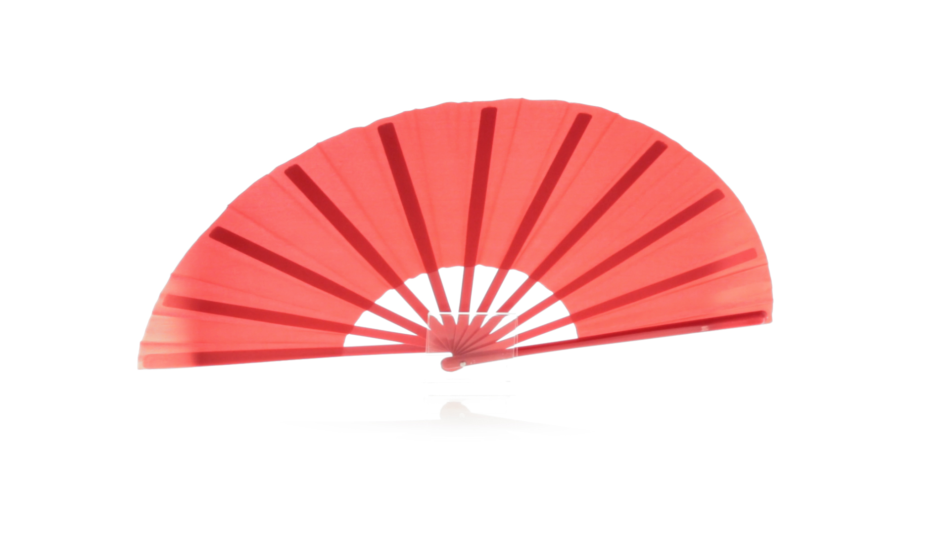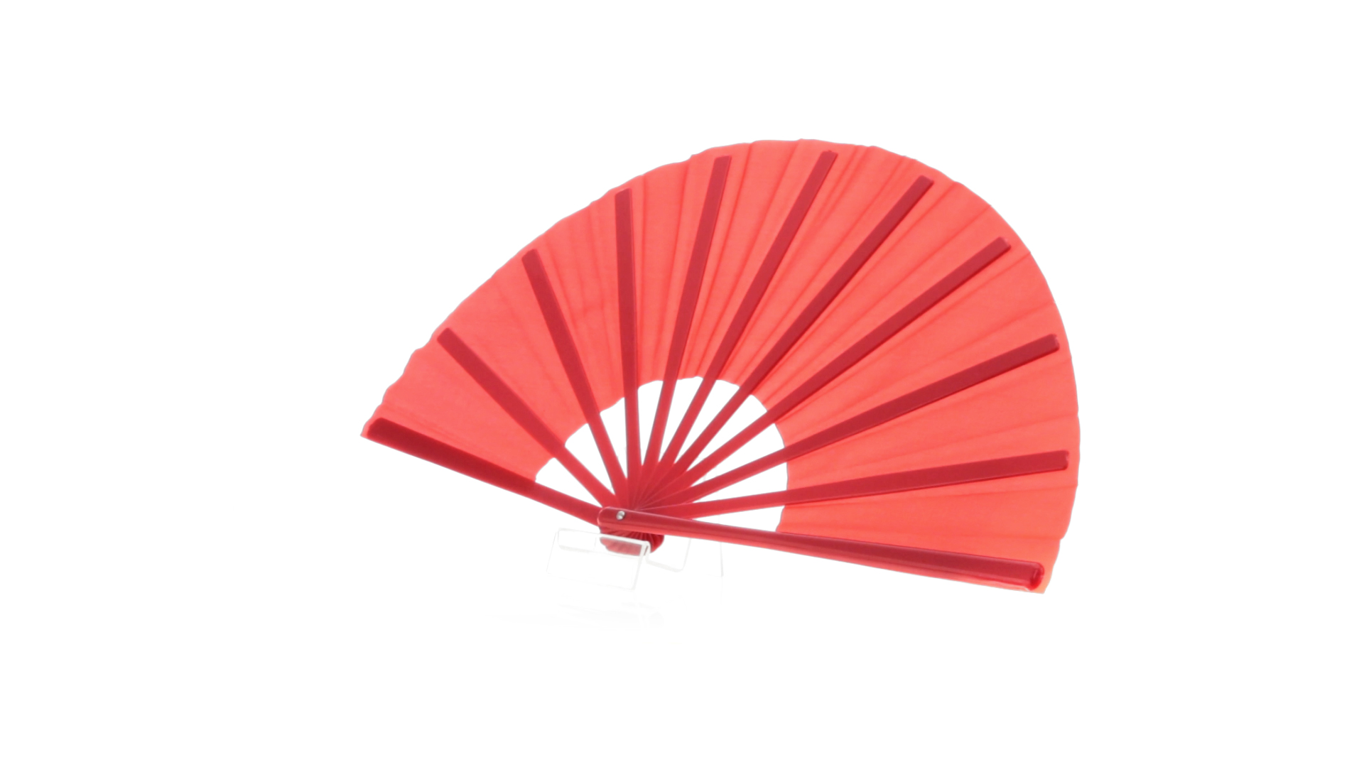 Fächer in Maxi-Grösse mit Kunststoffstäbchen und Polyestergewebe in verschiedenen Farben. Präsentiert in einer individuellen Box.