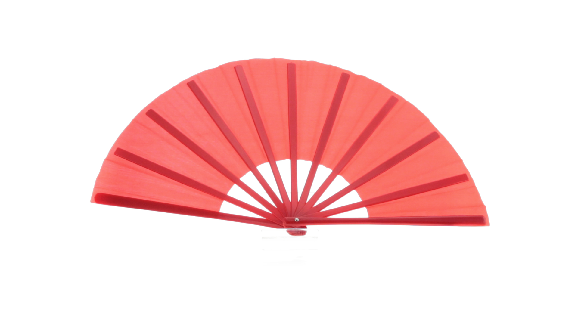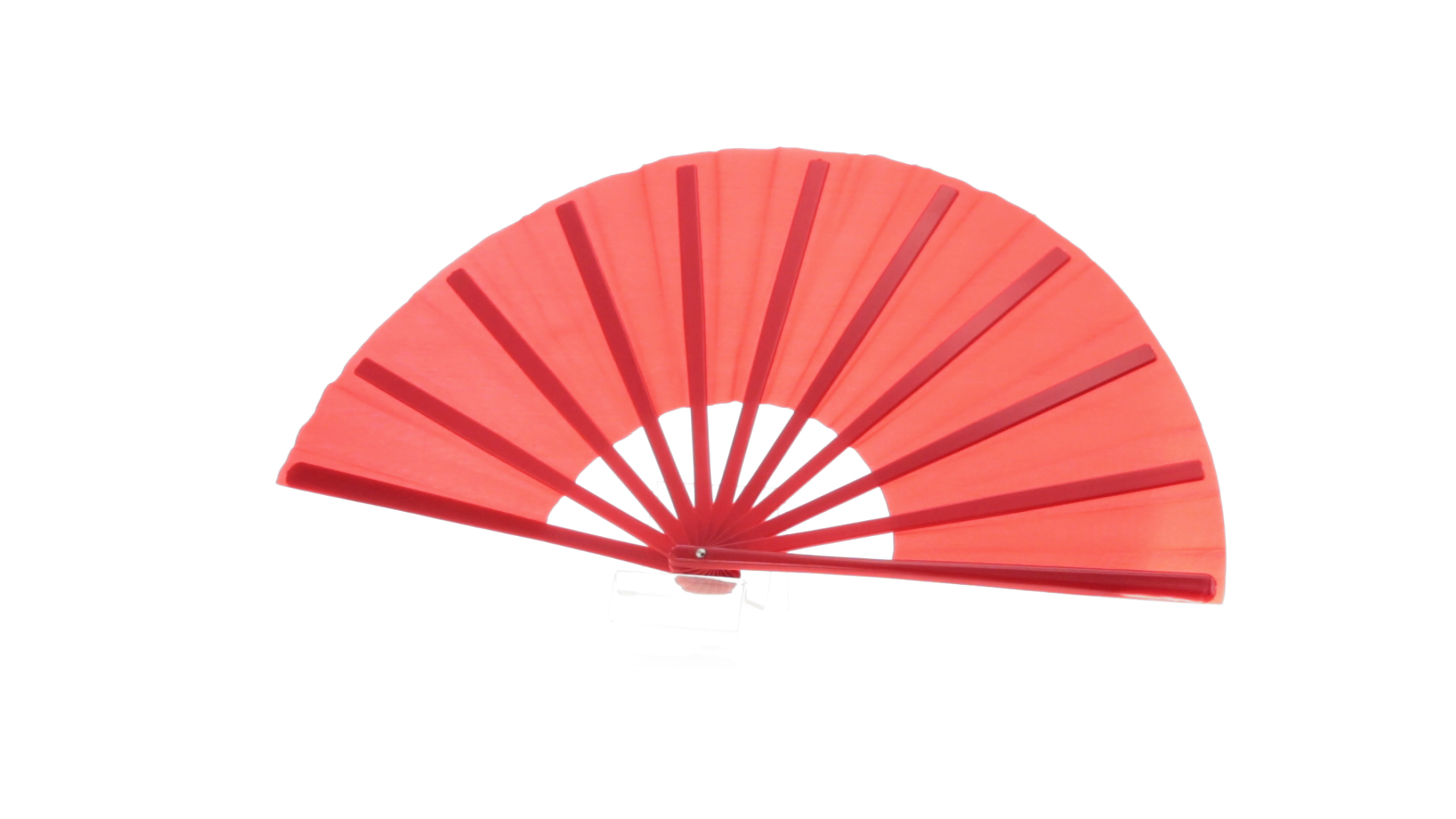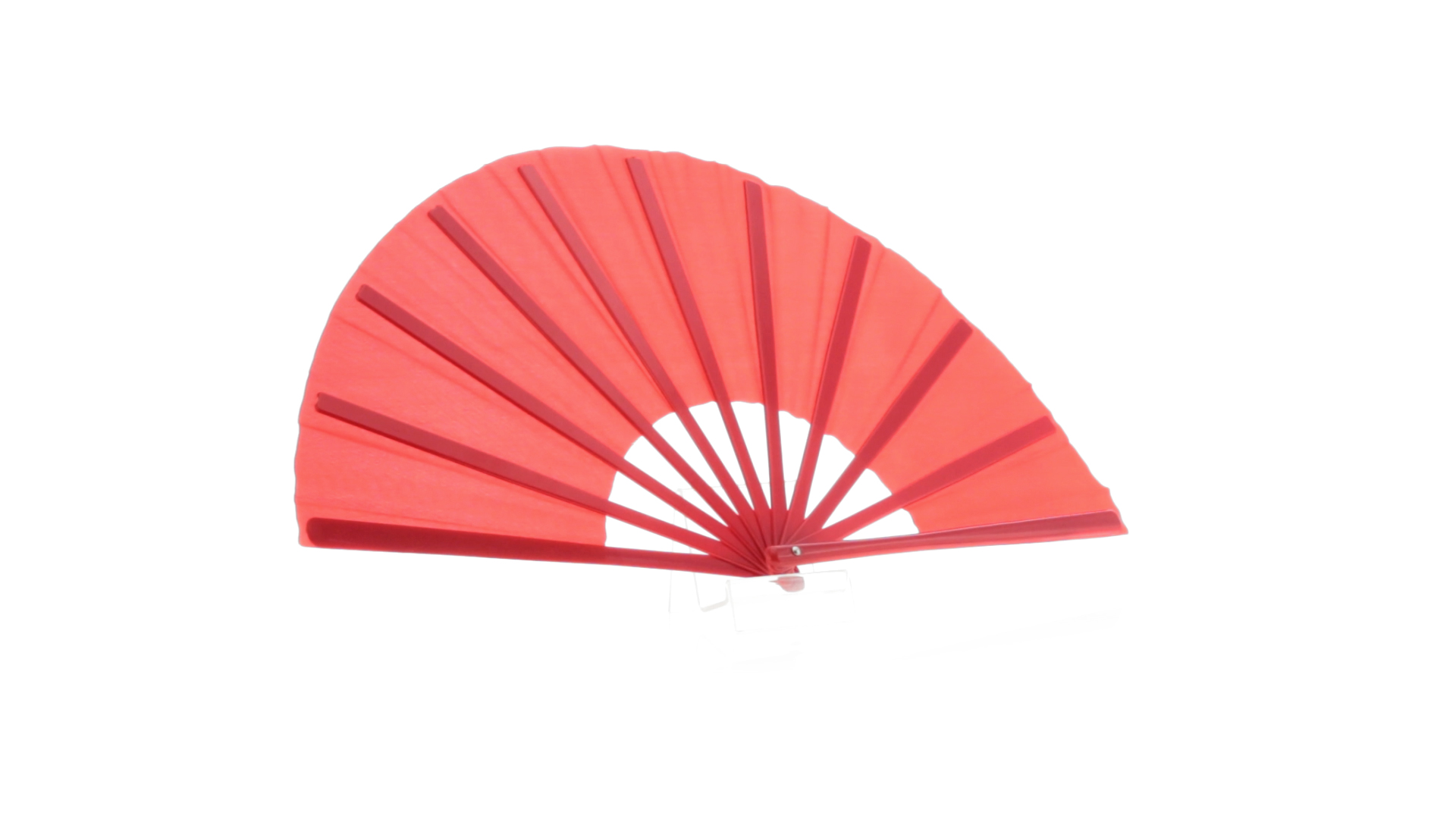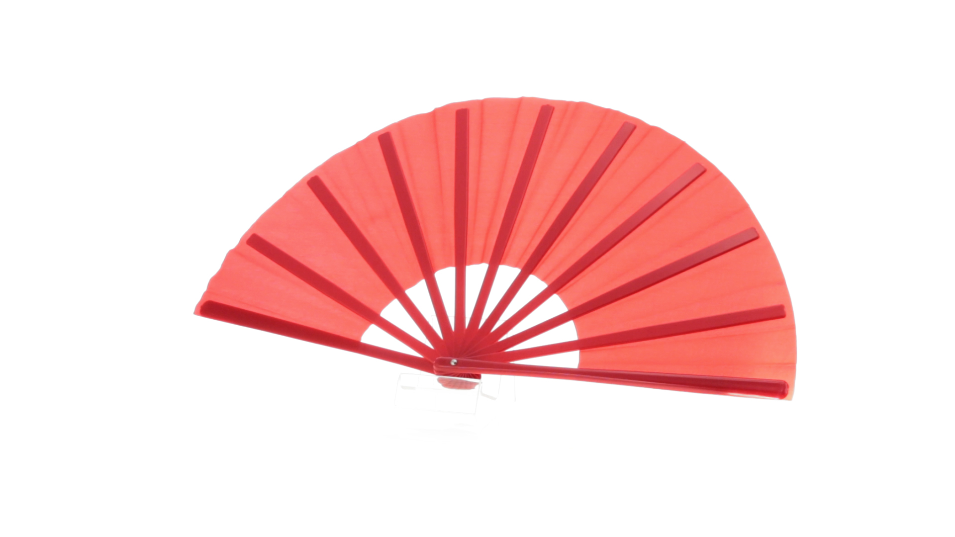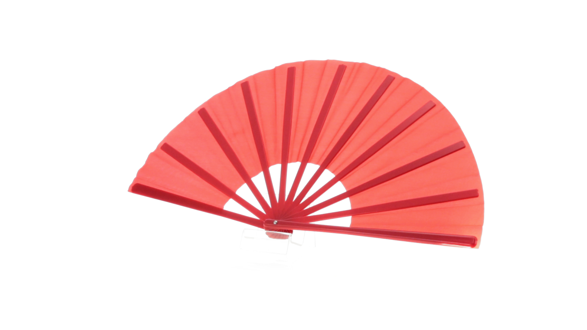 Fächer in Maxi-Grösse mit Kunststoffstäbchen und Polyestergewebe in verschiedenen Farben. Präsentiert in einer individuellen Box.