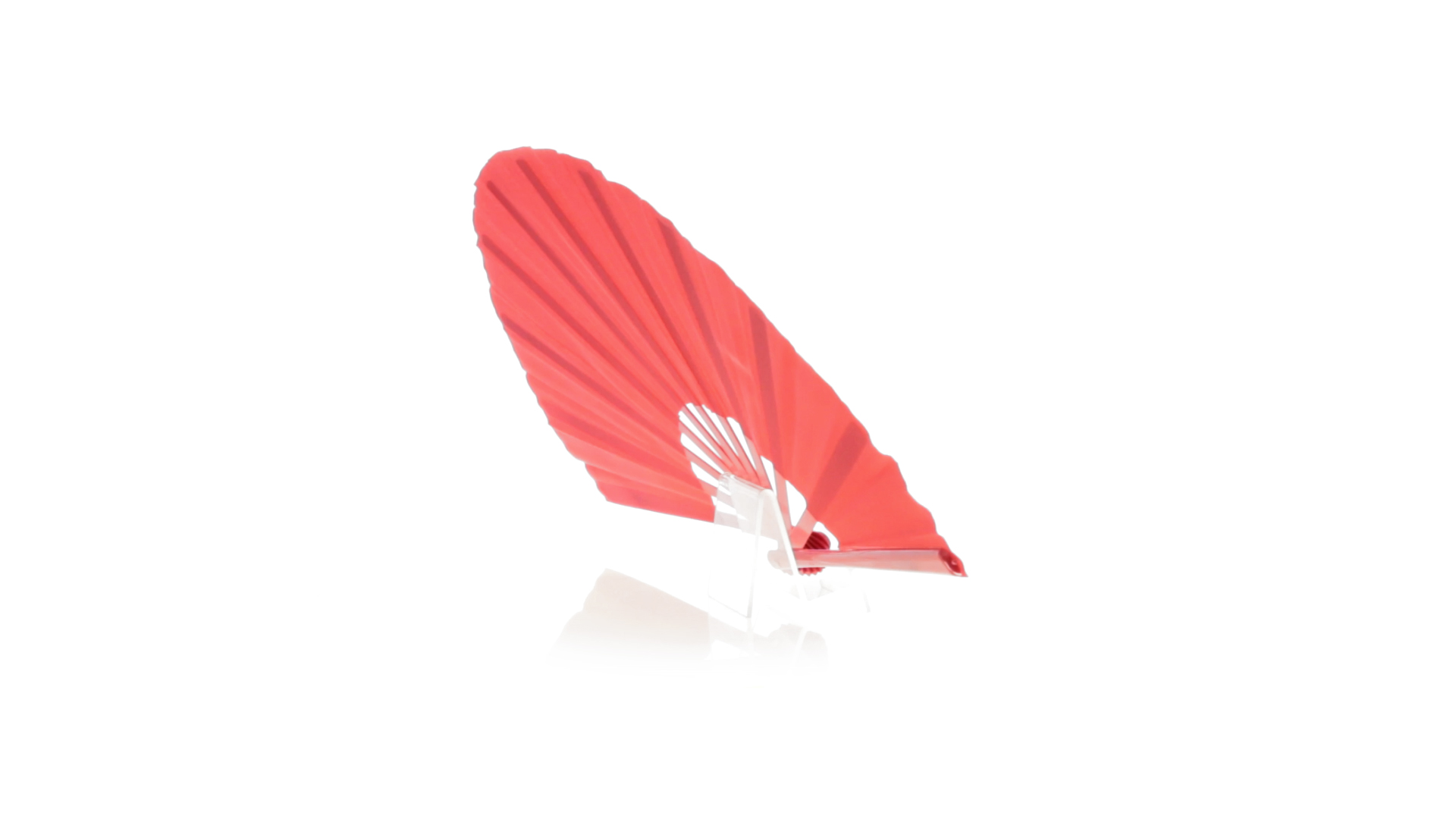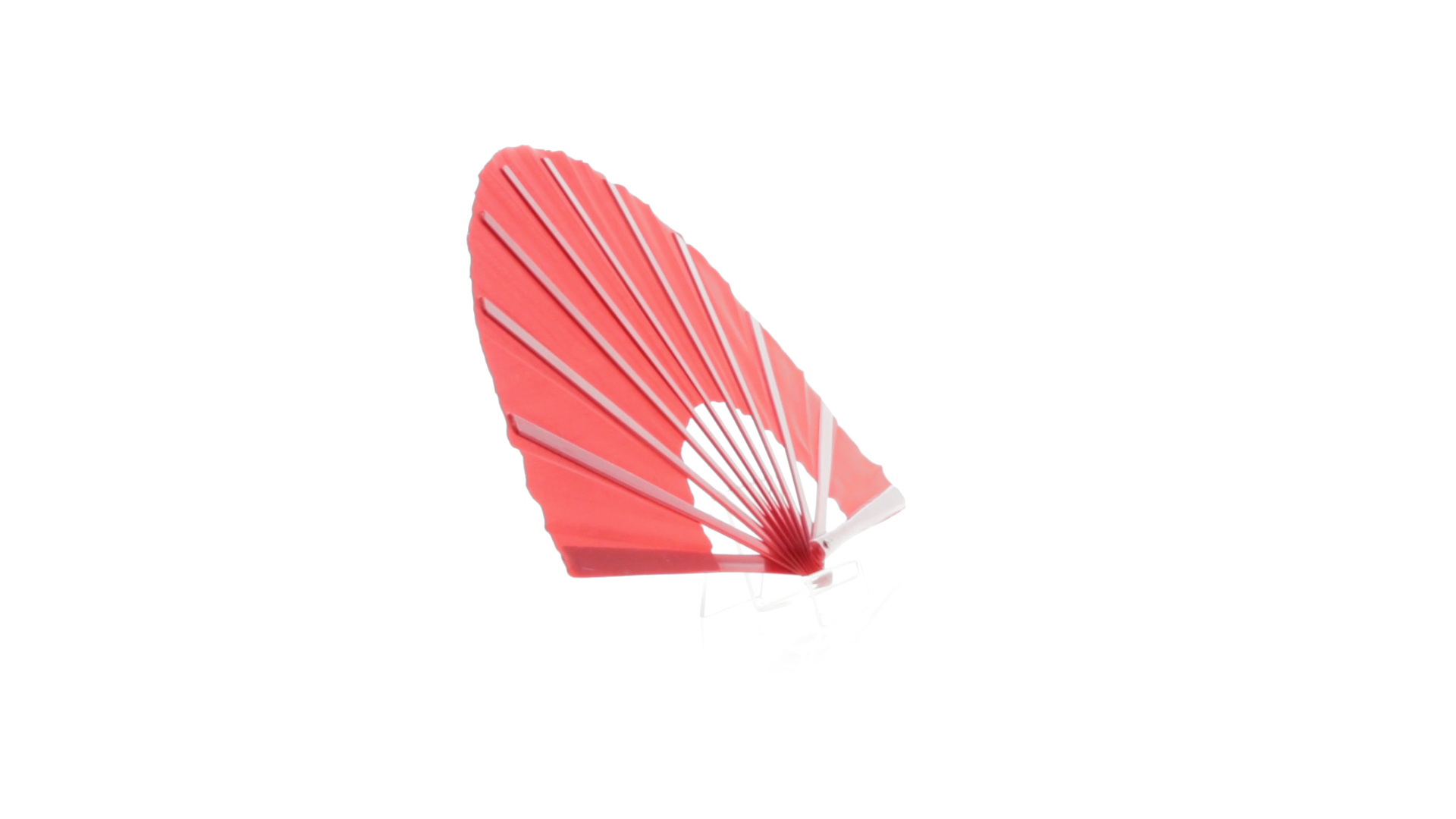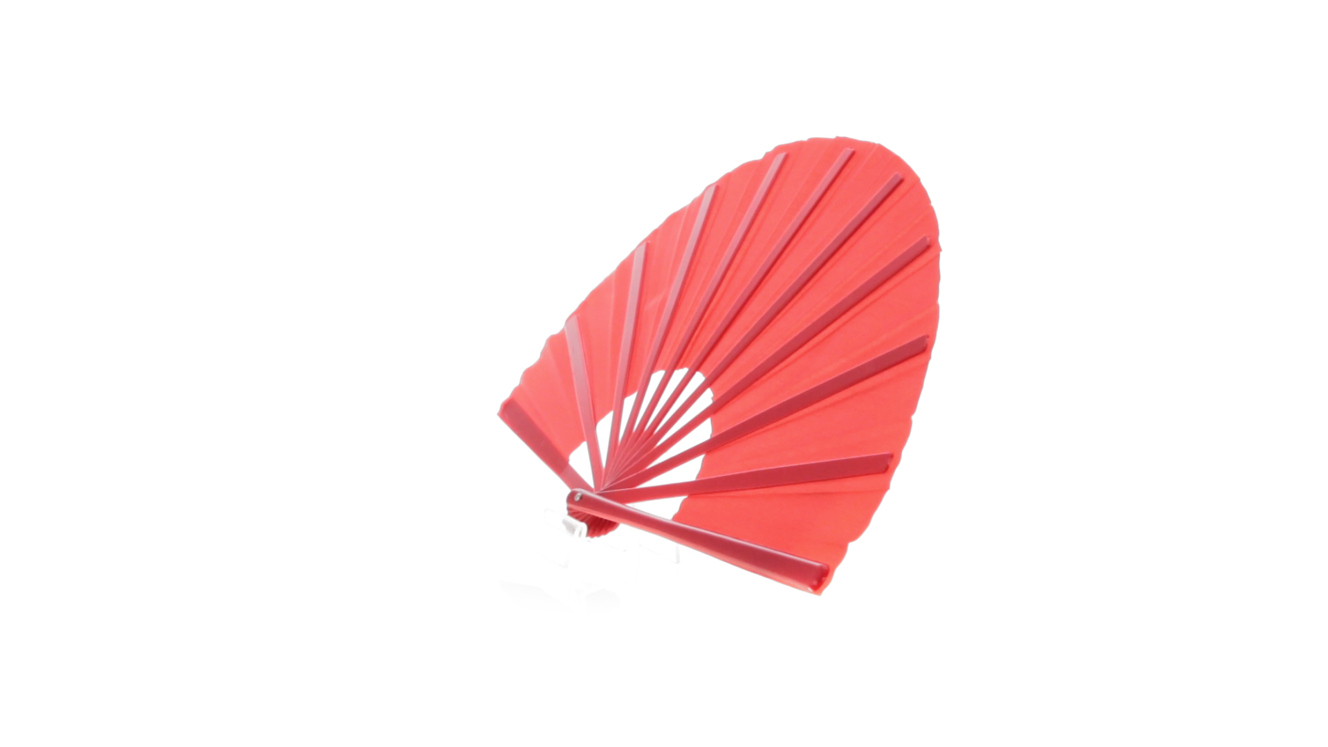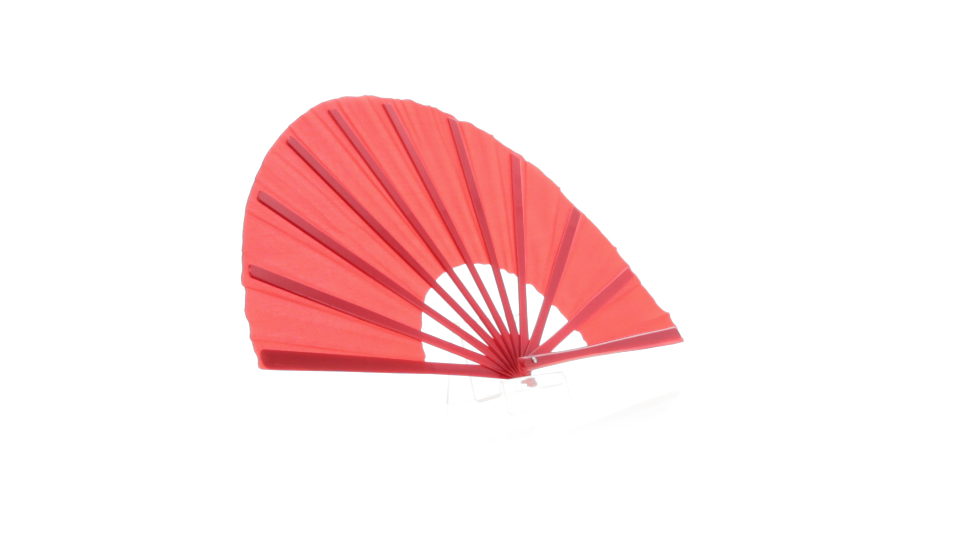Fächer in Maxi-Grösse mit Kunststoffstäbchen und Polyestergewebe in verschiedenen Farben. Präsentiert in einer individuellen Box.
