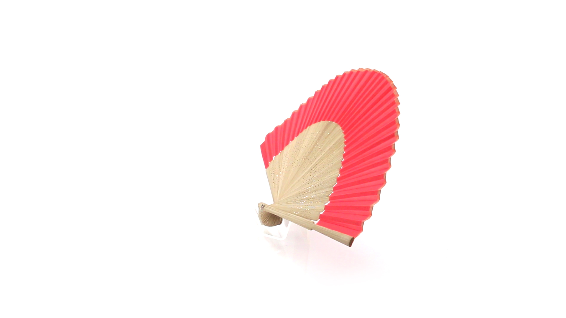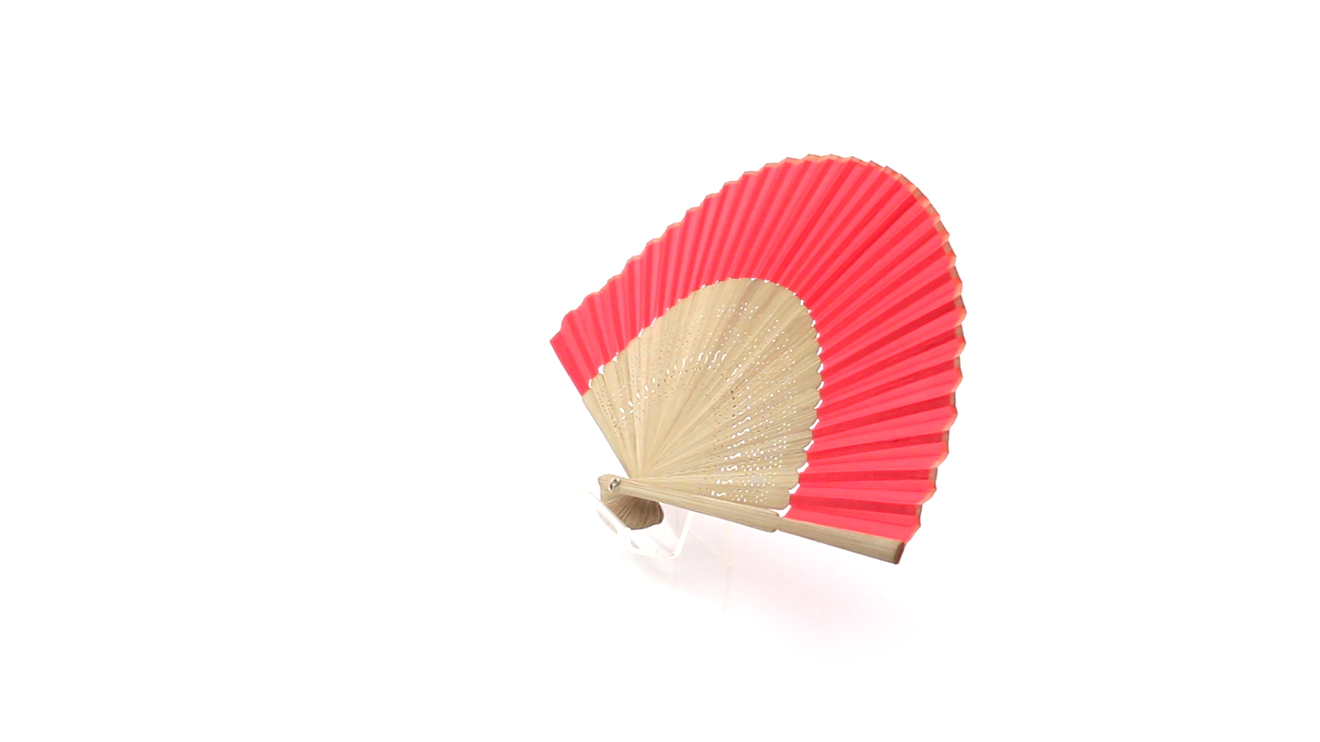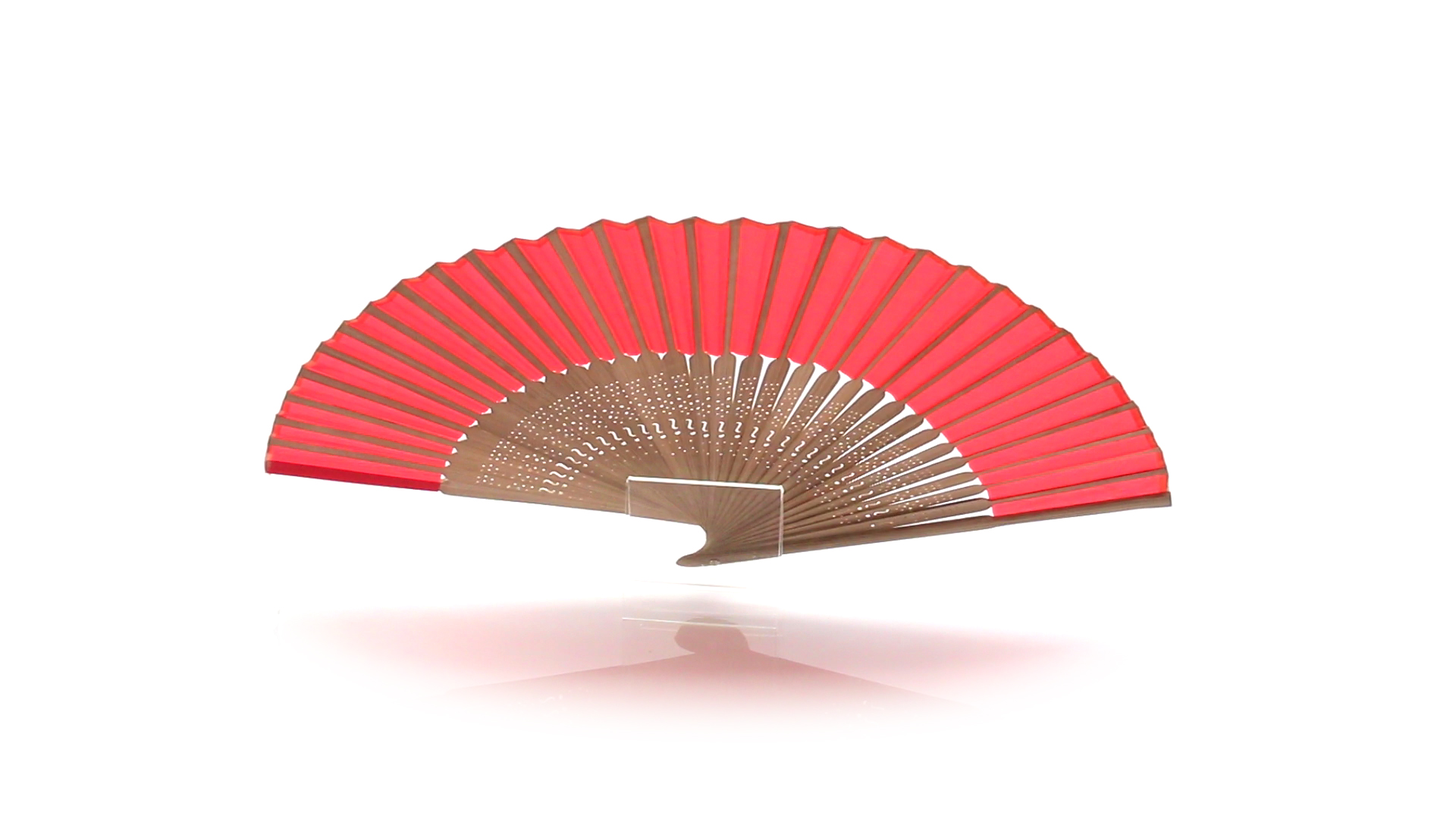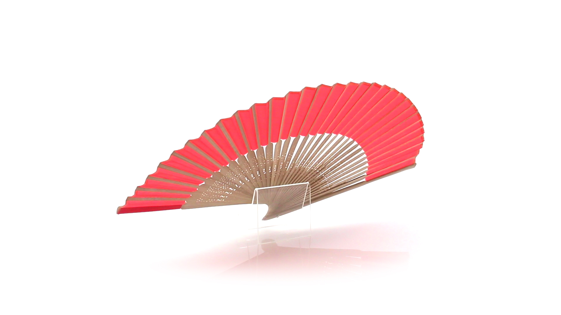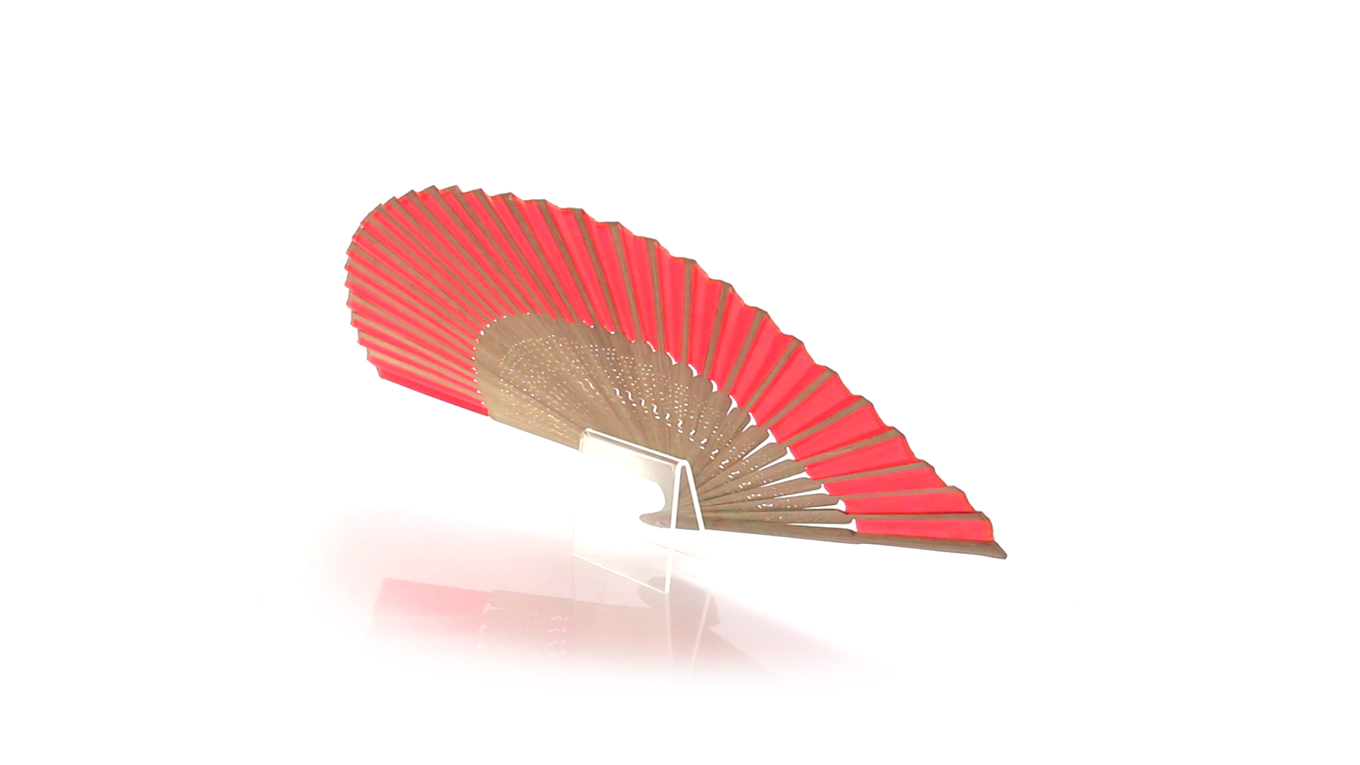 Handfächer aus gestanzten Holzstäbchen und Polyestergewebe in verschiedenen Farben. Präsentiert in einer individuellen Stofftasche mit Schleifenband.