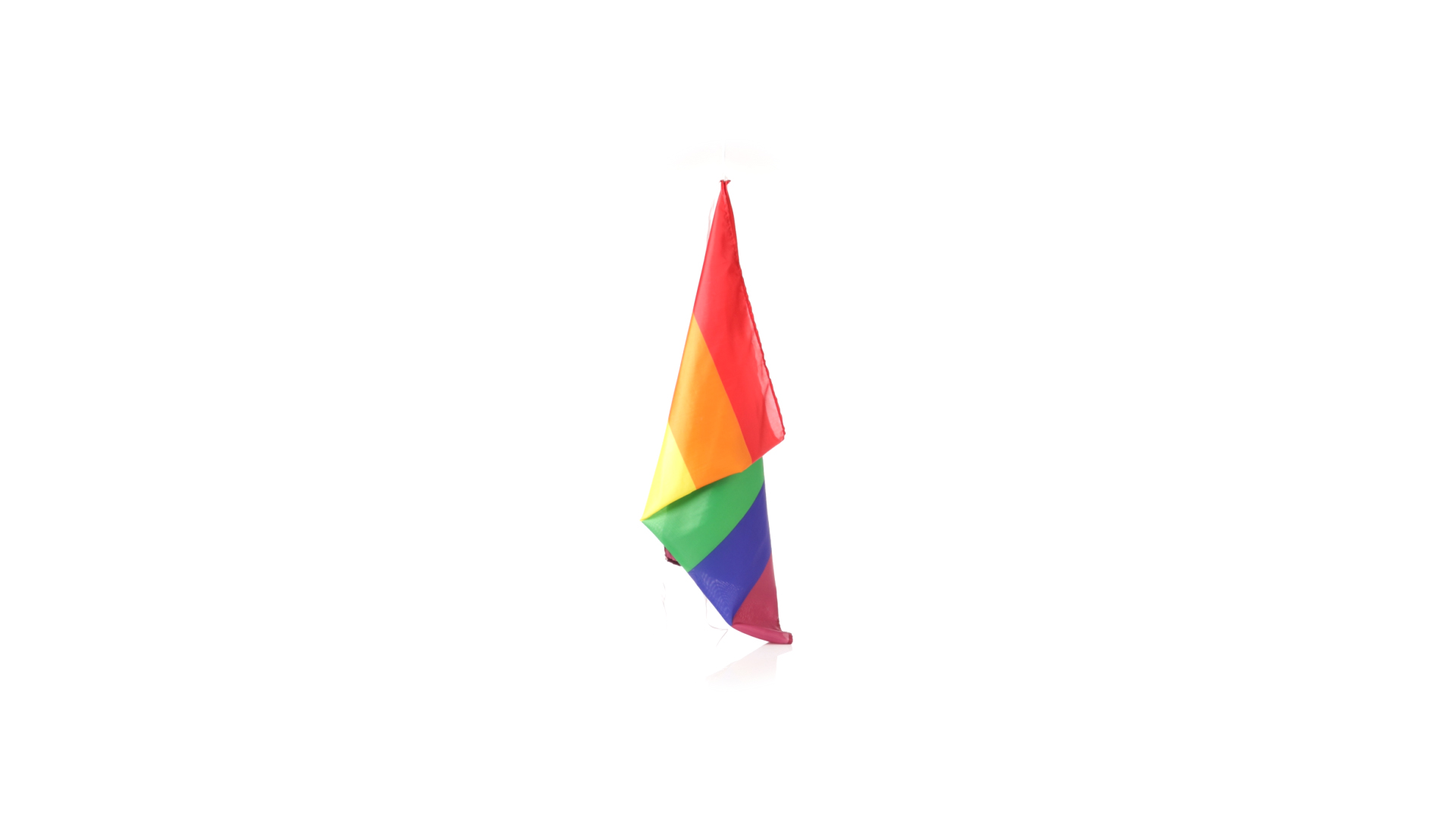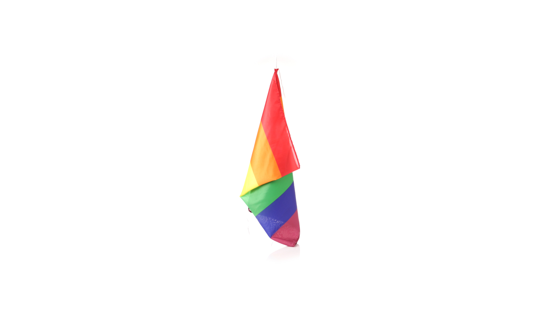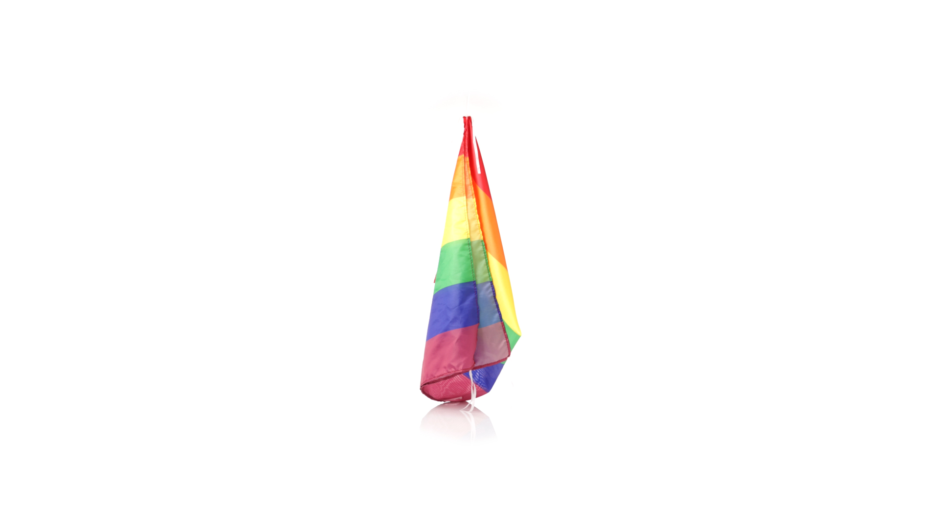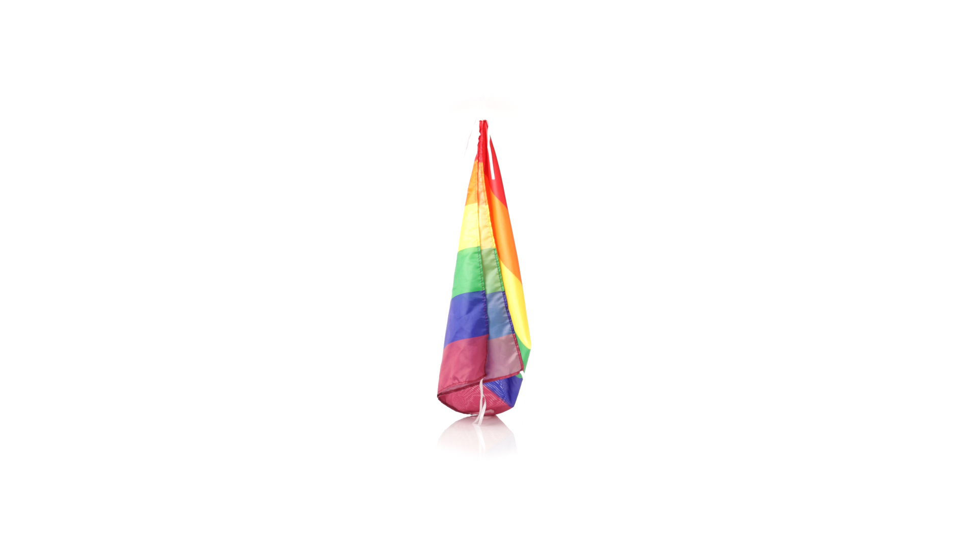 Regenbogenflagge mit mehrfarbigem Stoff aus widerstandsfähigem Polyester und Befestigungsbändern. Eine Flagge, auf die man stolz sein kann.