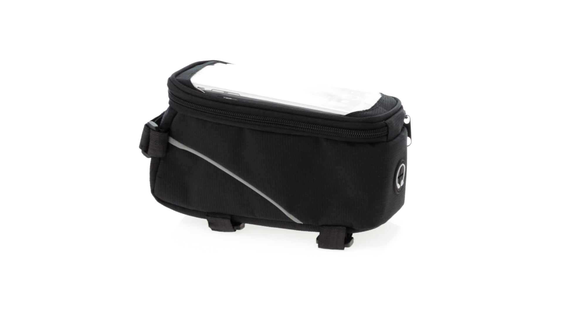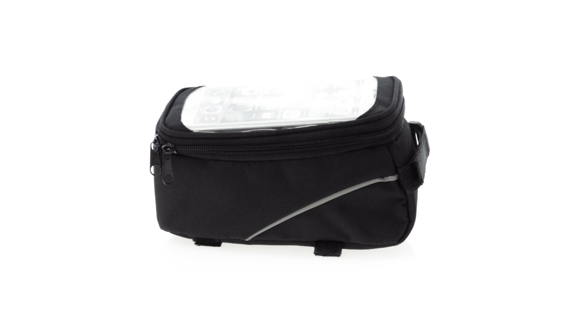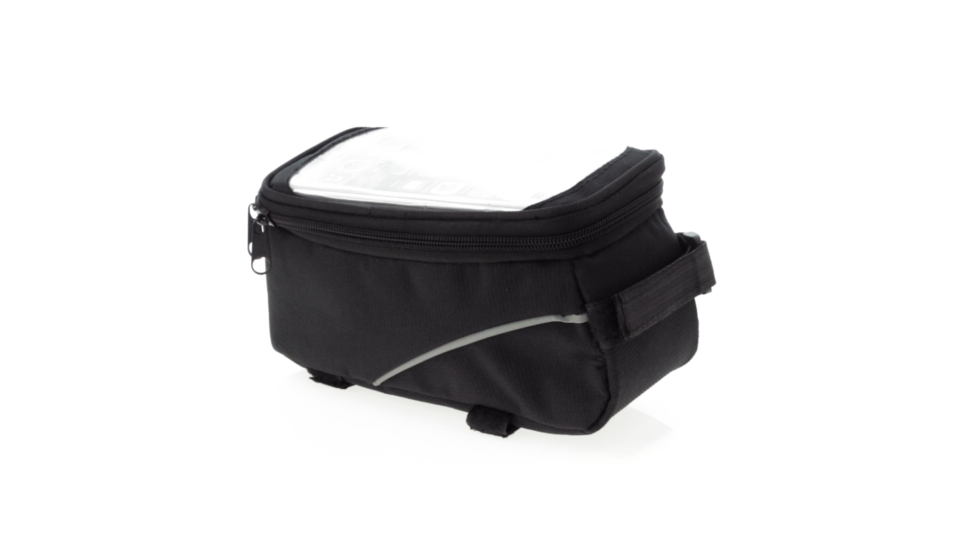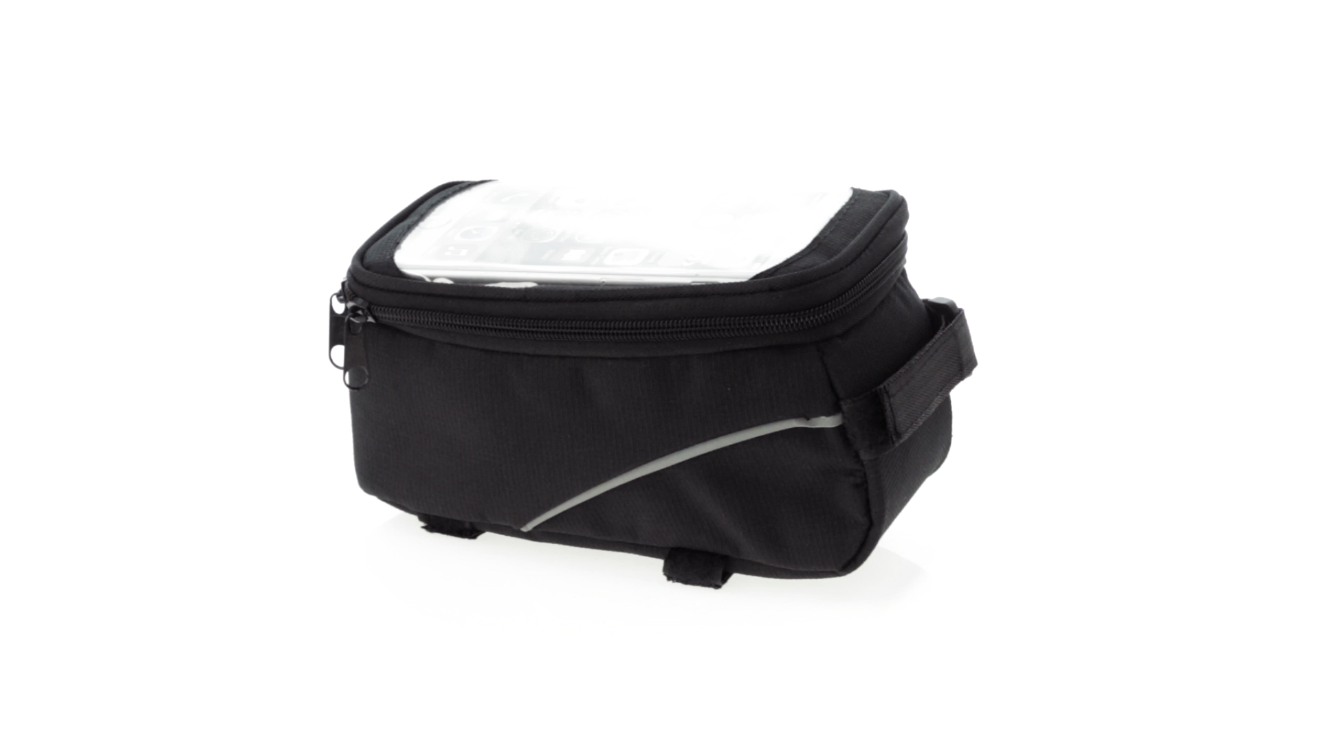 Vielseitig verwendbare Fahrradtasche aus robustem 600D Polyester mit Polsterung und PVC-Fenster mit Touch-Funktion. Mit Kopfhörerausgang und Reissverschluss sowie gefüttertem Interieur mit Smartphone-Fach. Dreifacher Klettverschluss für die Anbringung an Lenker und Stange.