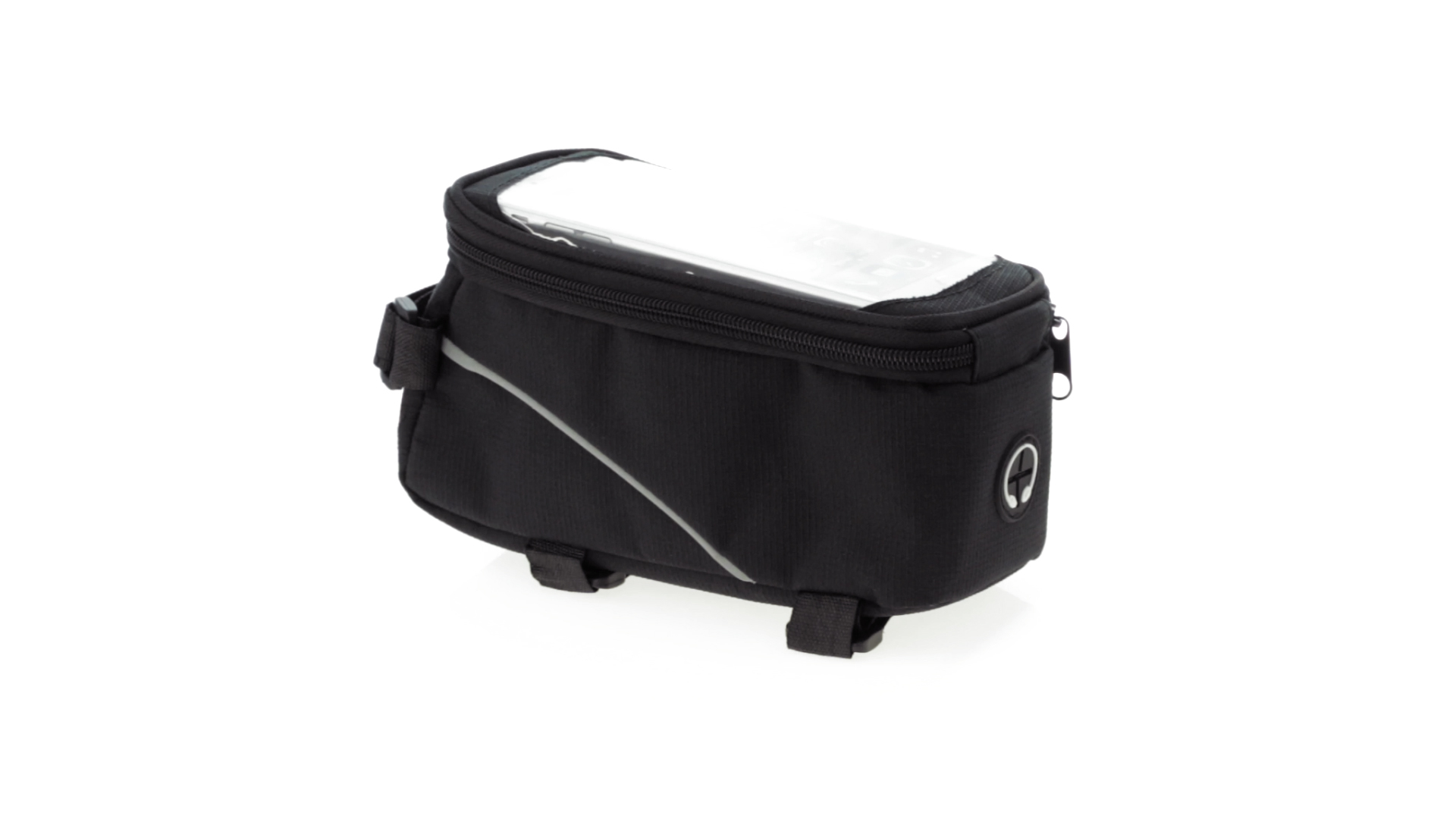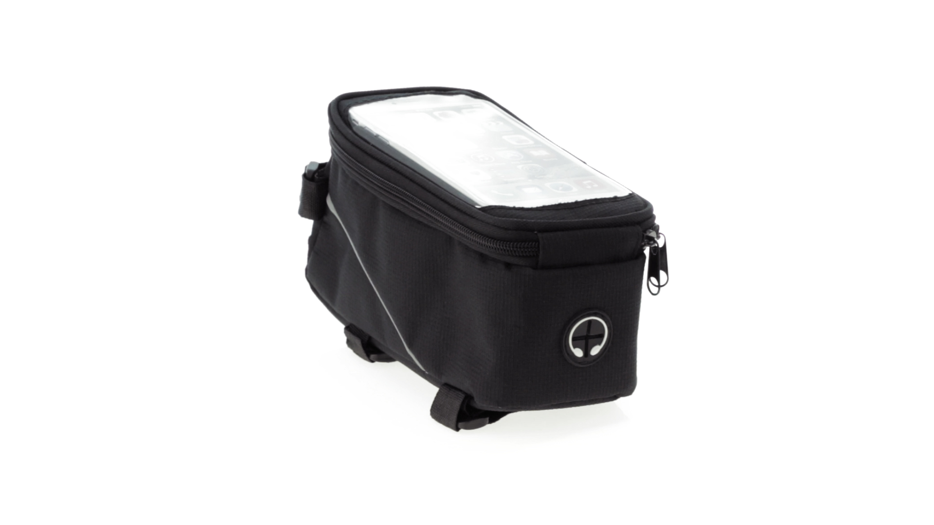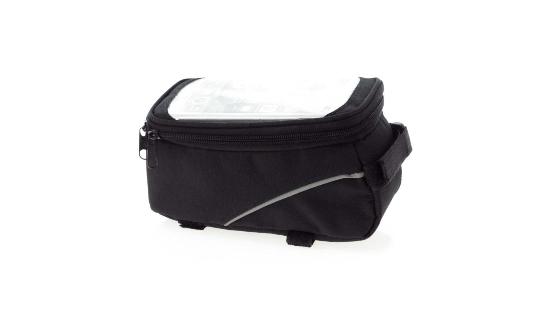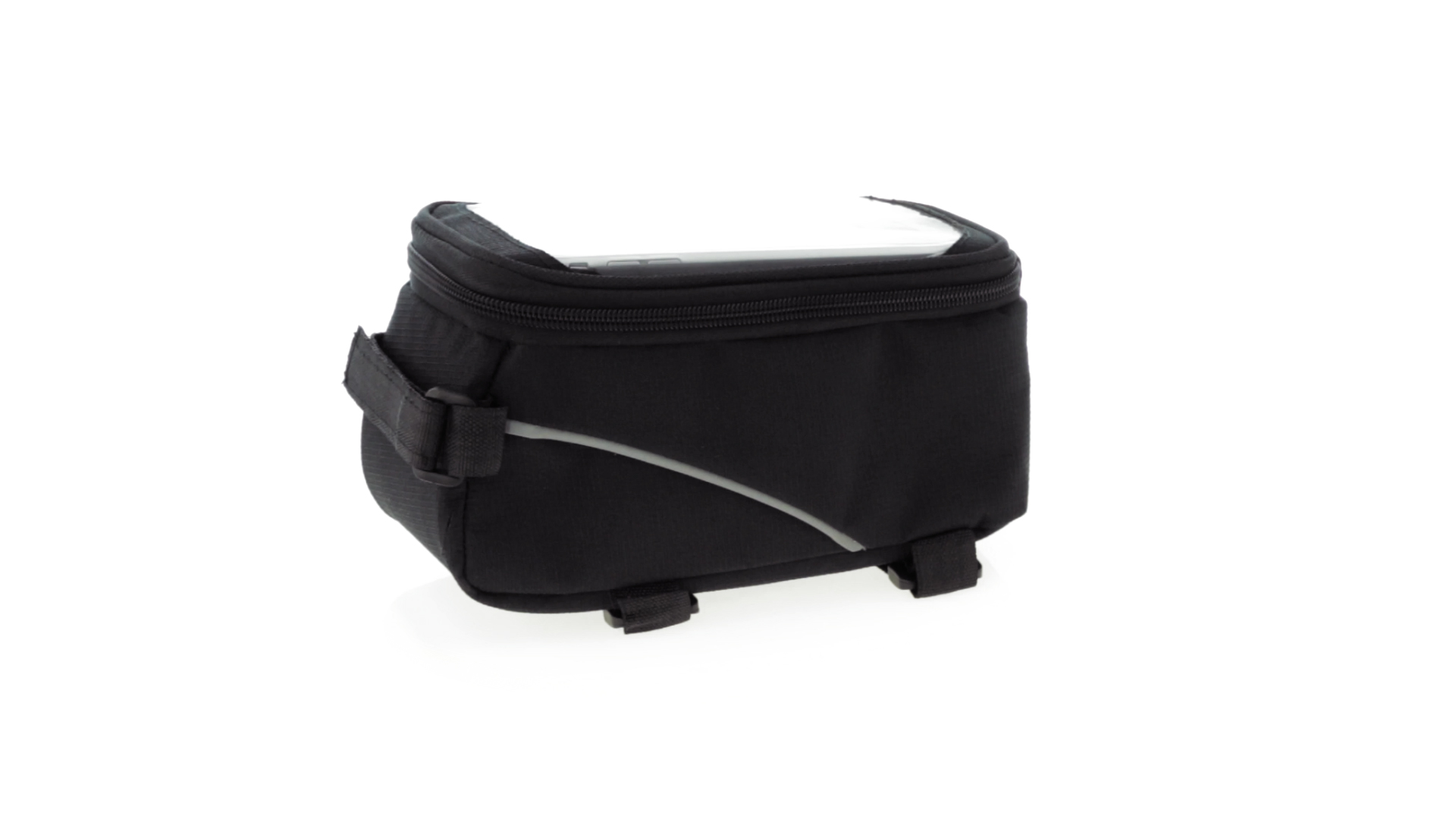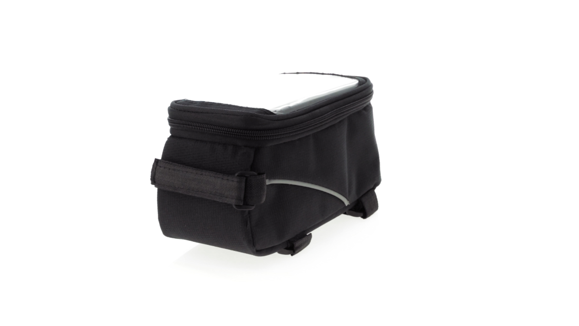 Vielseitig verwendbare Fahrradtasche aus robustem 600D Polyester mit Polsterung und PVC-Fenster mit Touch-Funktion. Mit Kopfhörerausgang und Reissverschluss sowie gefüttertem Interieur mit Smartphone-Fach. Dreifacher Klettverschluss für die Anbringung an Lenker und Stange.