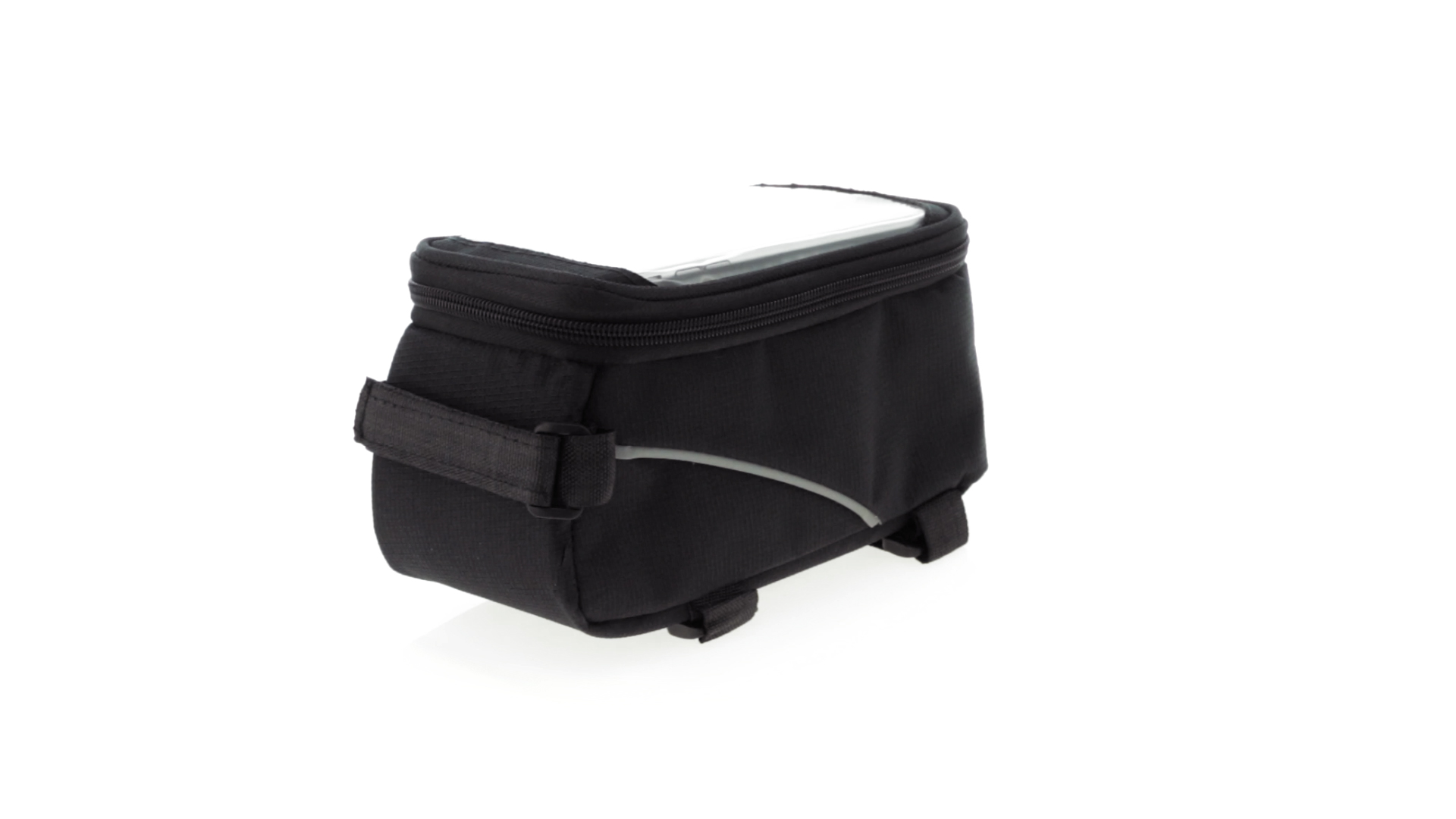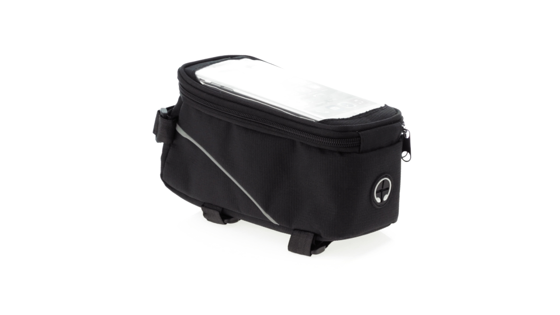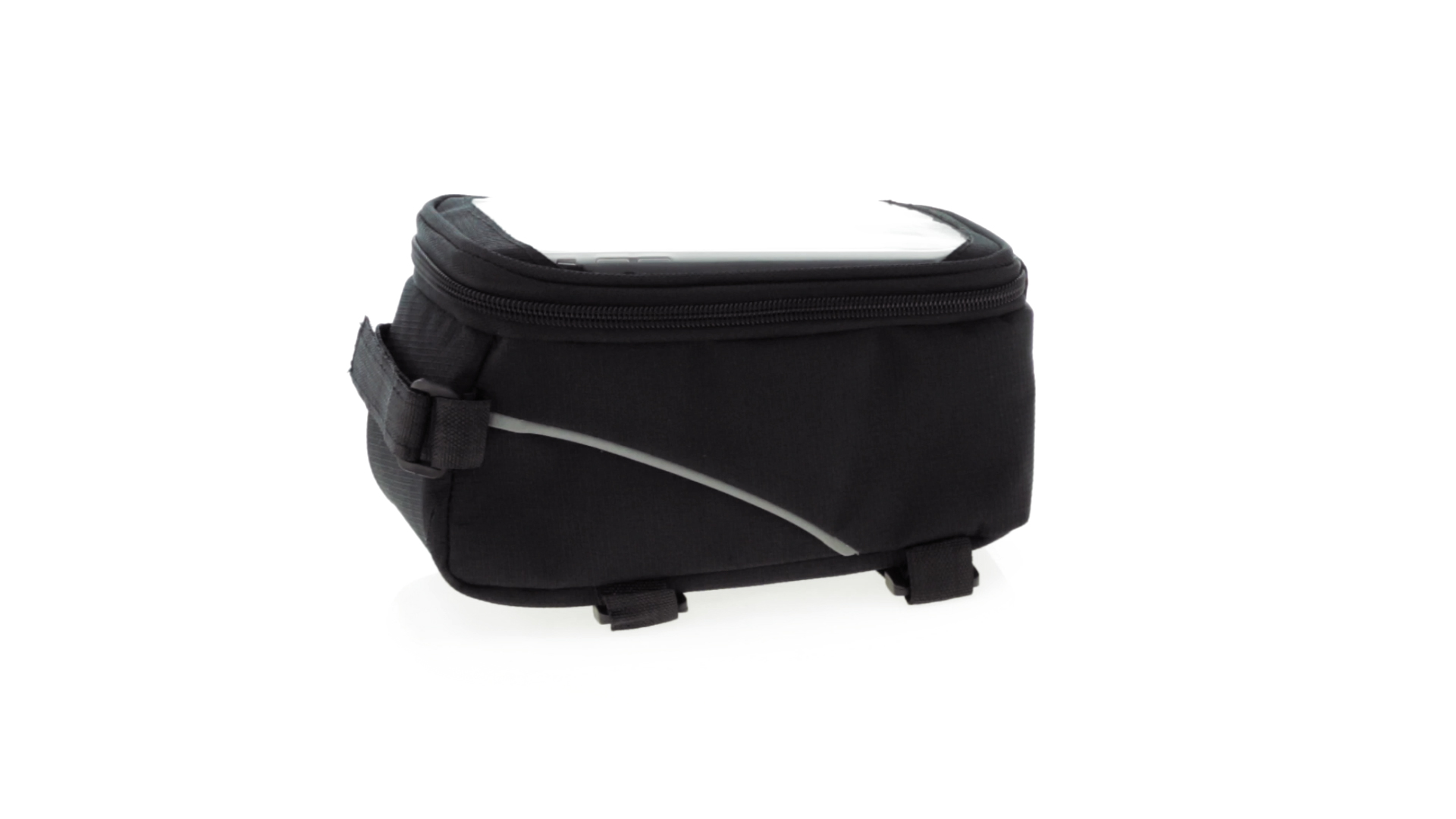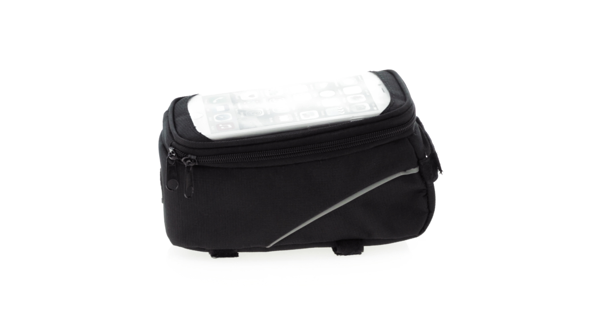 Vielseitig verwendbare Fahrradtasche aus robustem 600D Polyester mit Polsterung und PVC-Fenster mit Touch-Funktion. Mit Kopfhörerausgang und Reissverschluss sowie gefüttertem Interieur mit Smartphone-Fach. Dreifacher Klettverschluss für die Anbringung an Lenker und Stange.