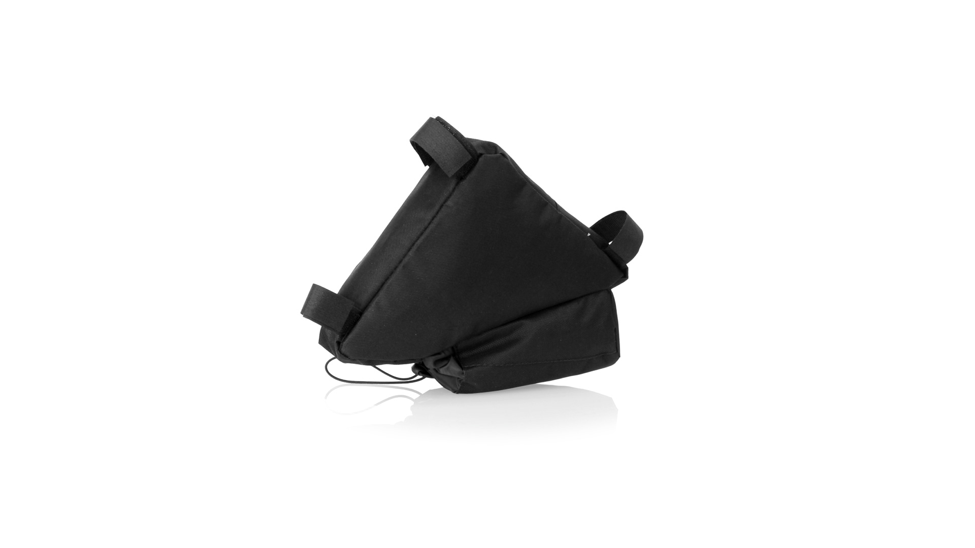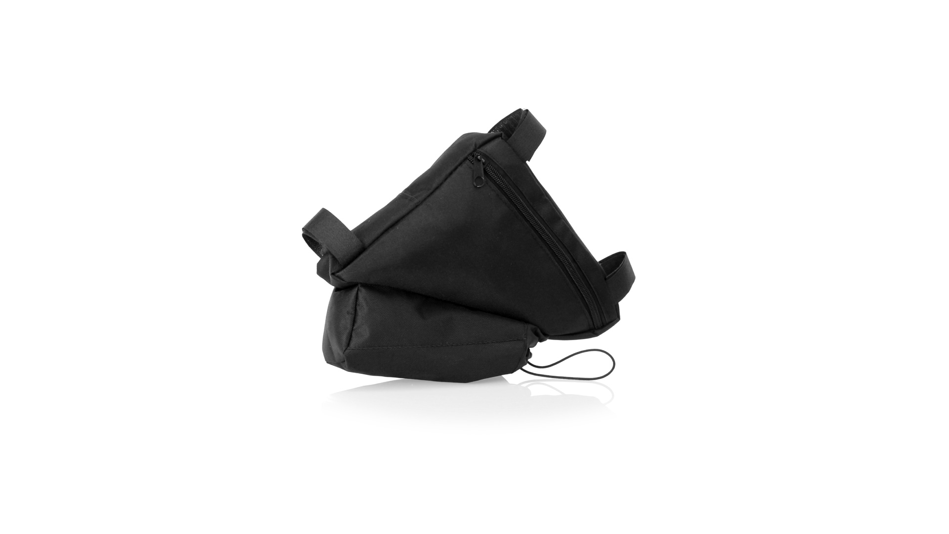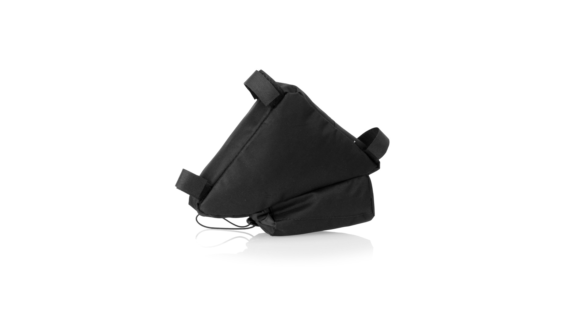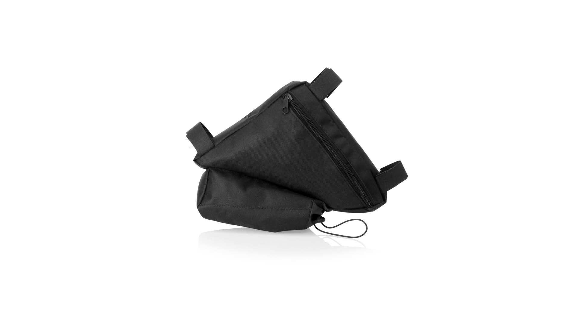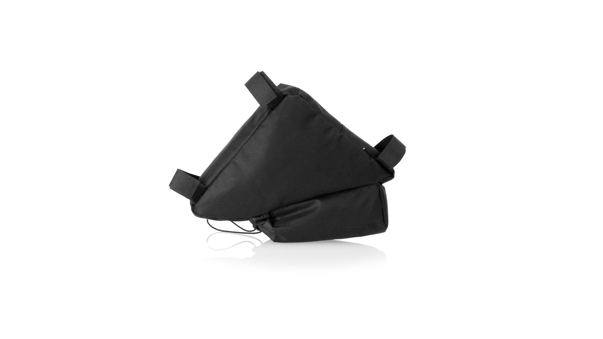 Fahrradtasche aus strapazierfähigem 600D-Polyester mit PVC-verstärkter Innenseite. Erhältlich in schwarz. Hauptfach mit Reissverschluss und universeller Anpassung an den Fahrradrahmen durch 3 Klettbänder. Wasserflaschenfach mit verstellbarem Kordelzug.