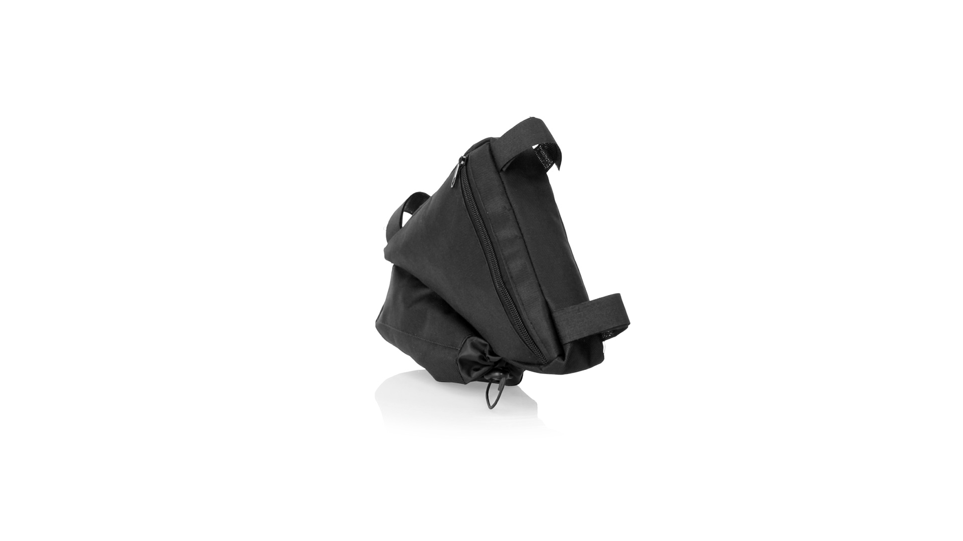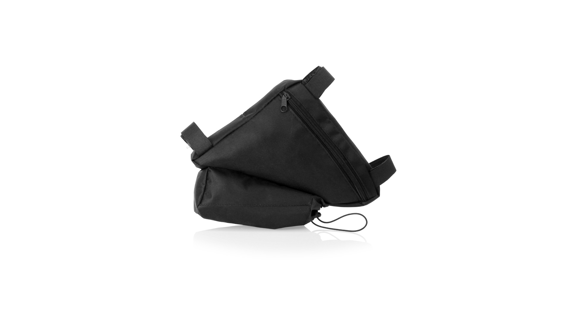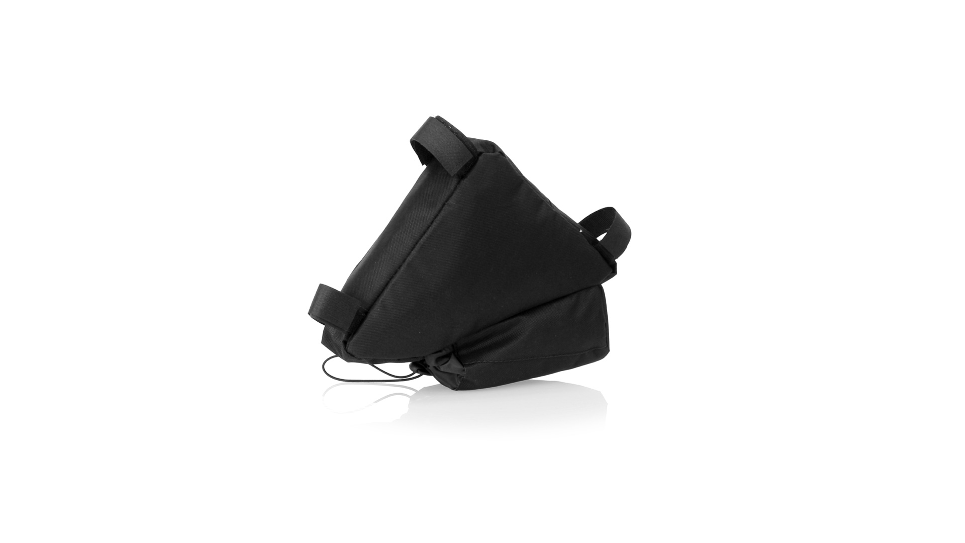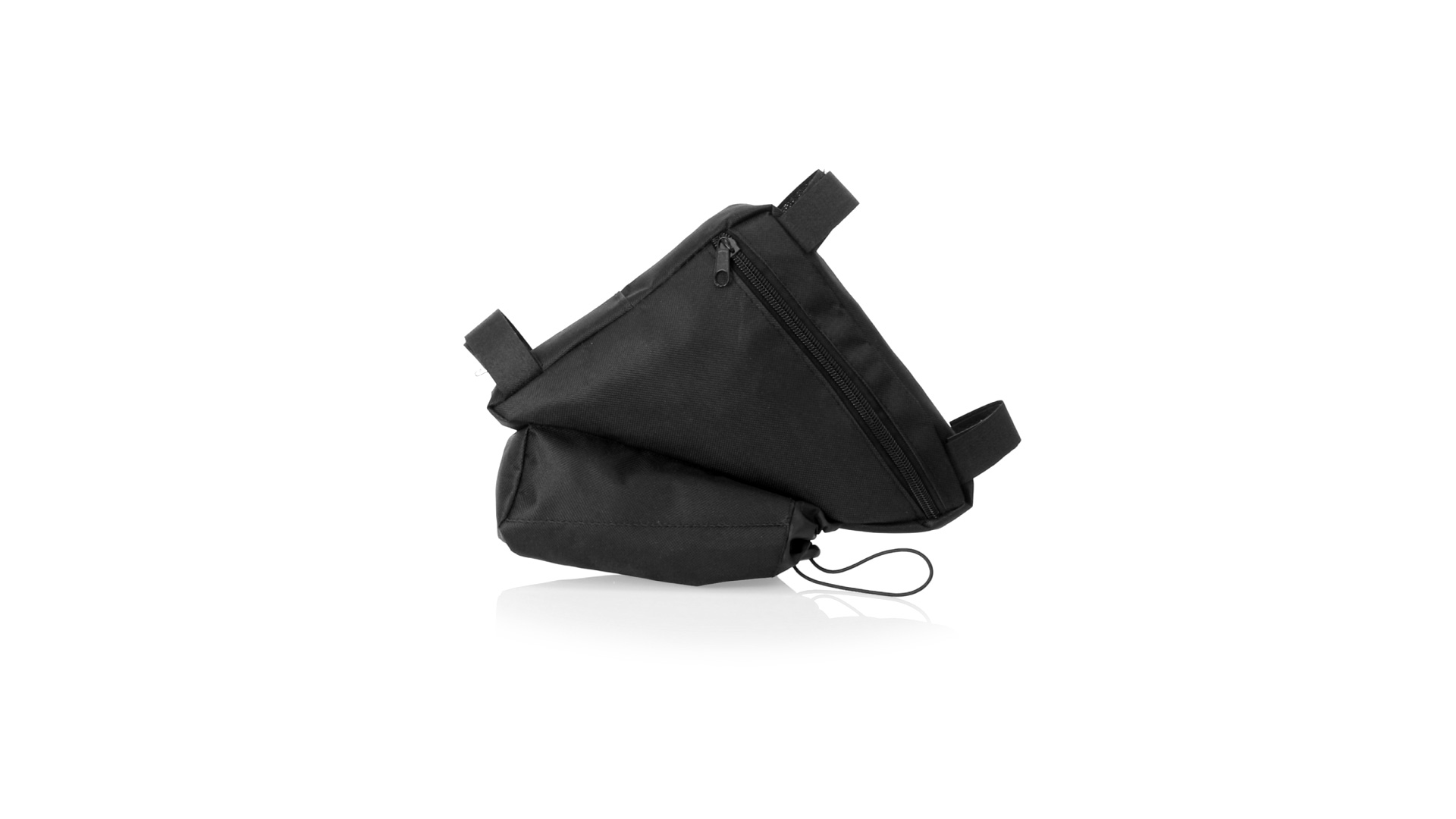 Fahrradtasche aus strapazierfähigem 600D-Polyester mit PVC-verstärkter Innenseite. Erhältlich in schwarz. Hauptfach mit Reissverschluss und universeller Anpassung an den Fahrradrahmen durch 3 Klettbänder. Wasserflaschenfach mit verstellbarem Kordelzug.