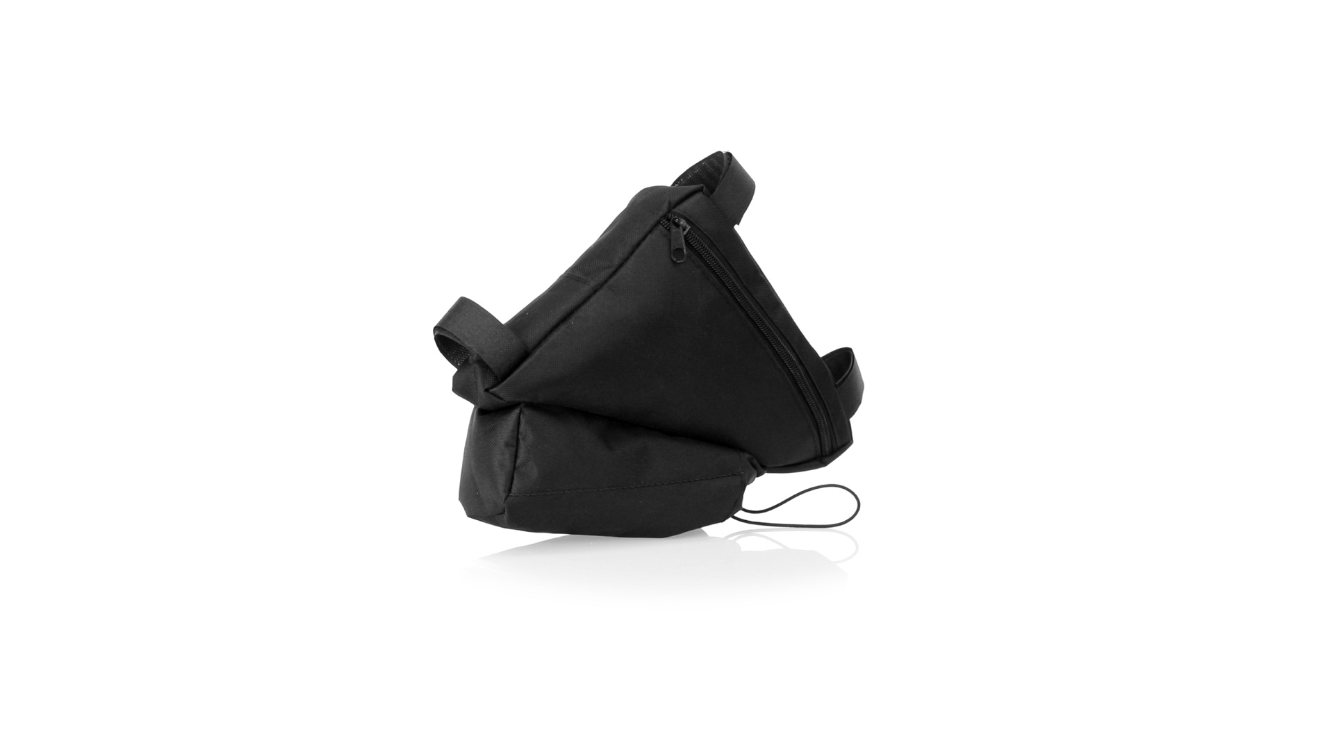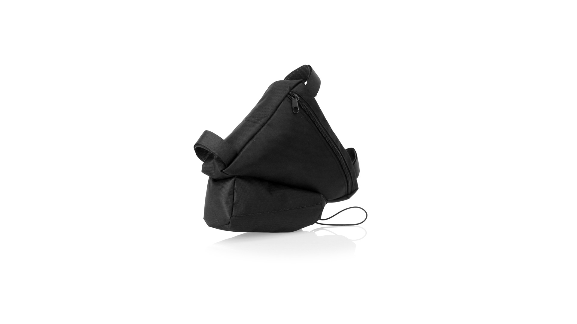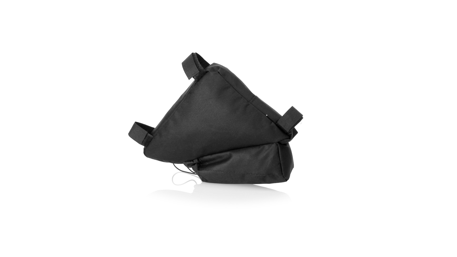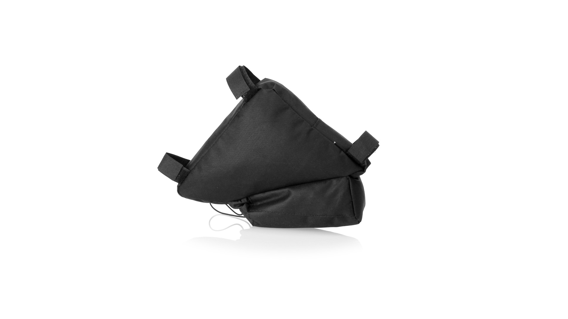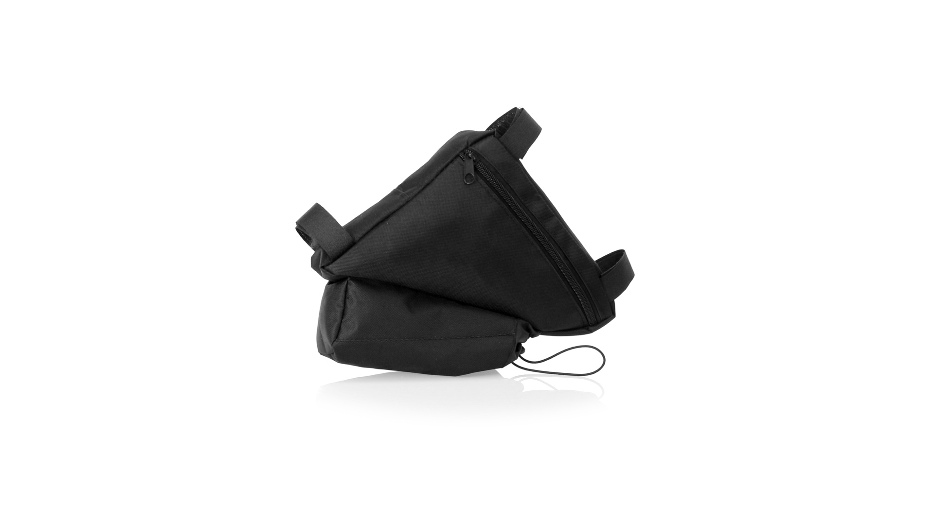 Fahrradtasche aus strapazierfähigem 600D-Polyester mit PVC-verstärkter Innenseite. Erhältlich in schwarz. Hauptfach mit Reissverschluss und universeller Anpassung an den Fahrradrahmen durch 3 Klettbänder. Wasserflaschenfach mit verstellbarem Kordelzug.